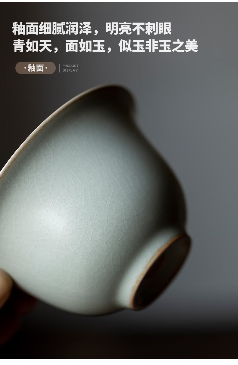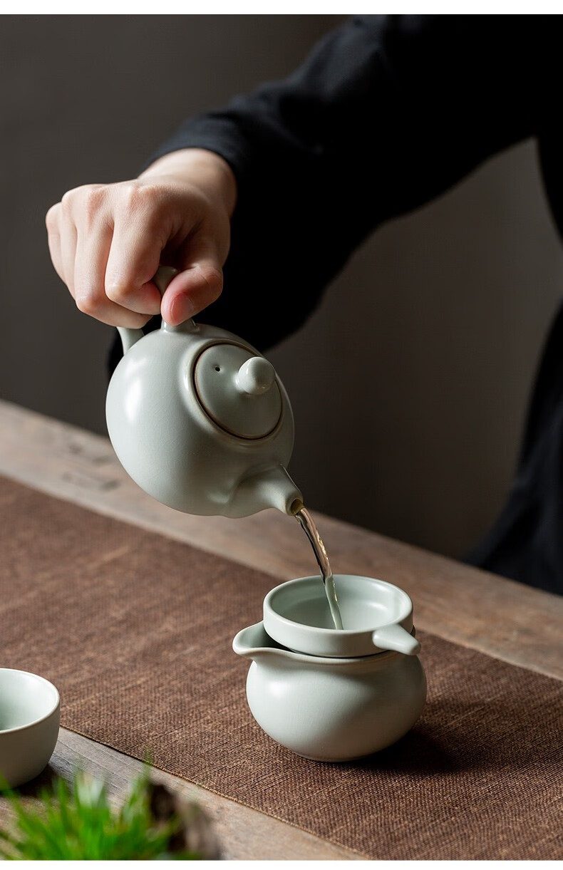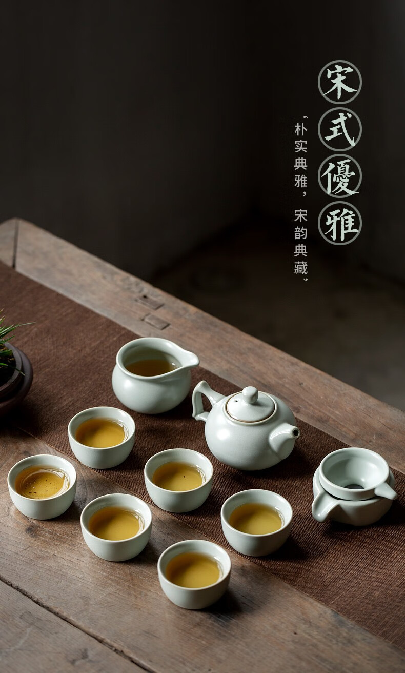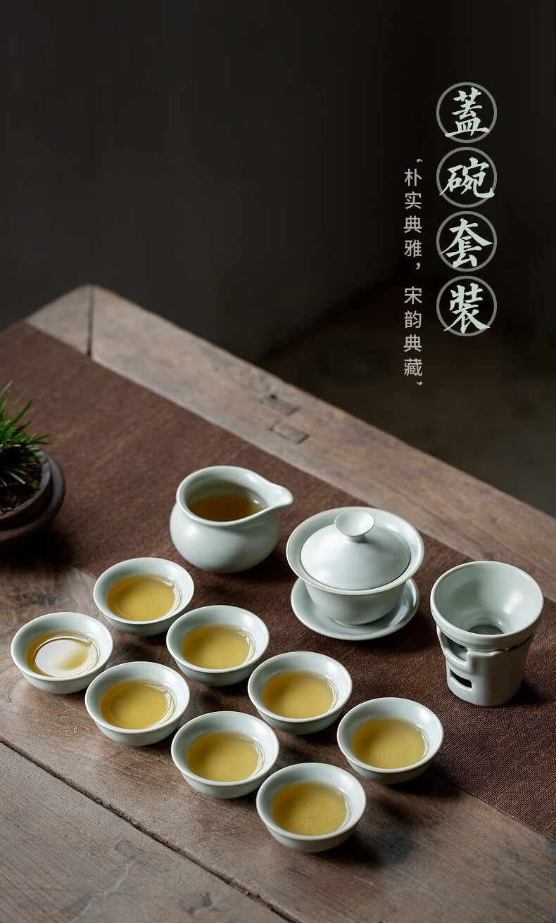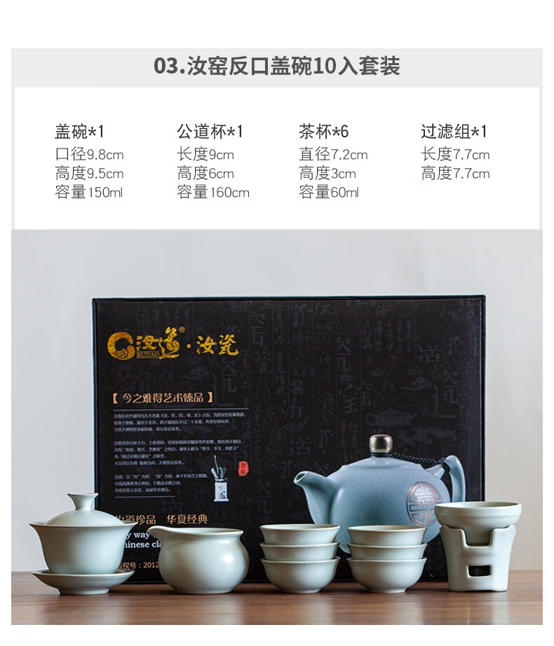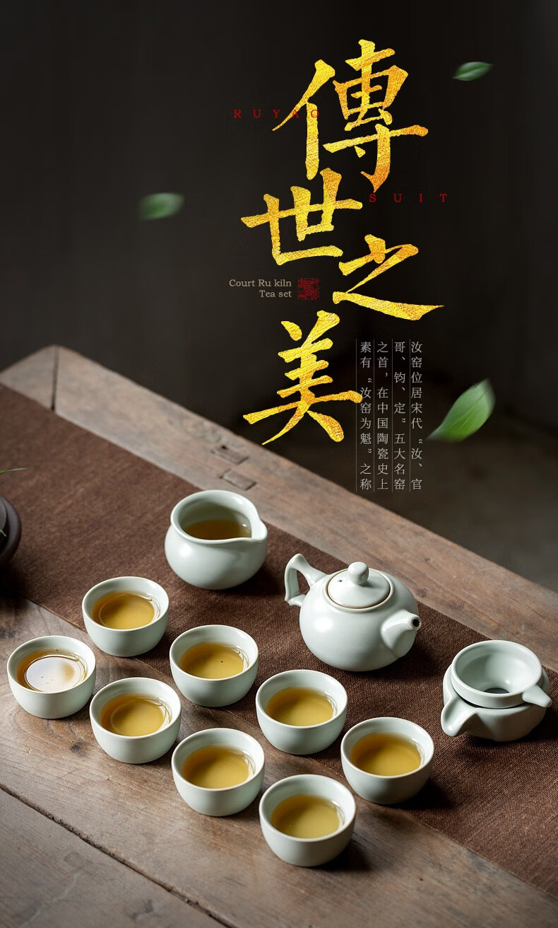 Rudao Ru Kiln Kung Fu Tea Set Covered Bowl Teapot Teacup Complete Set Ru Kiln Rare Open Slices Azure Retro Ceramic Household Tea Maker Gift Box Packaging Ru Kiln Square Ear Pot 11-pack Gift Box