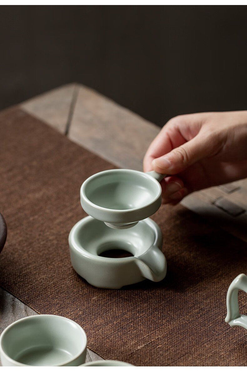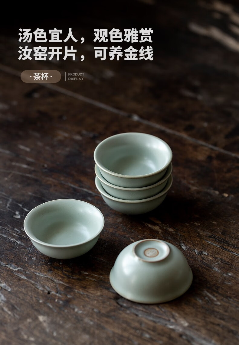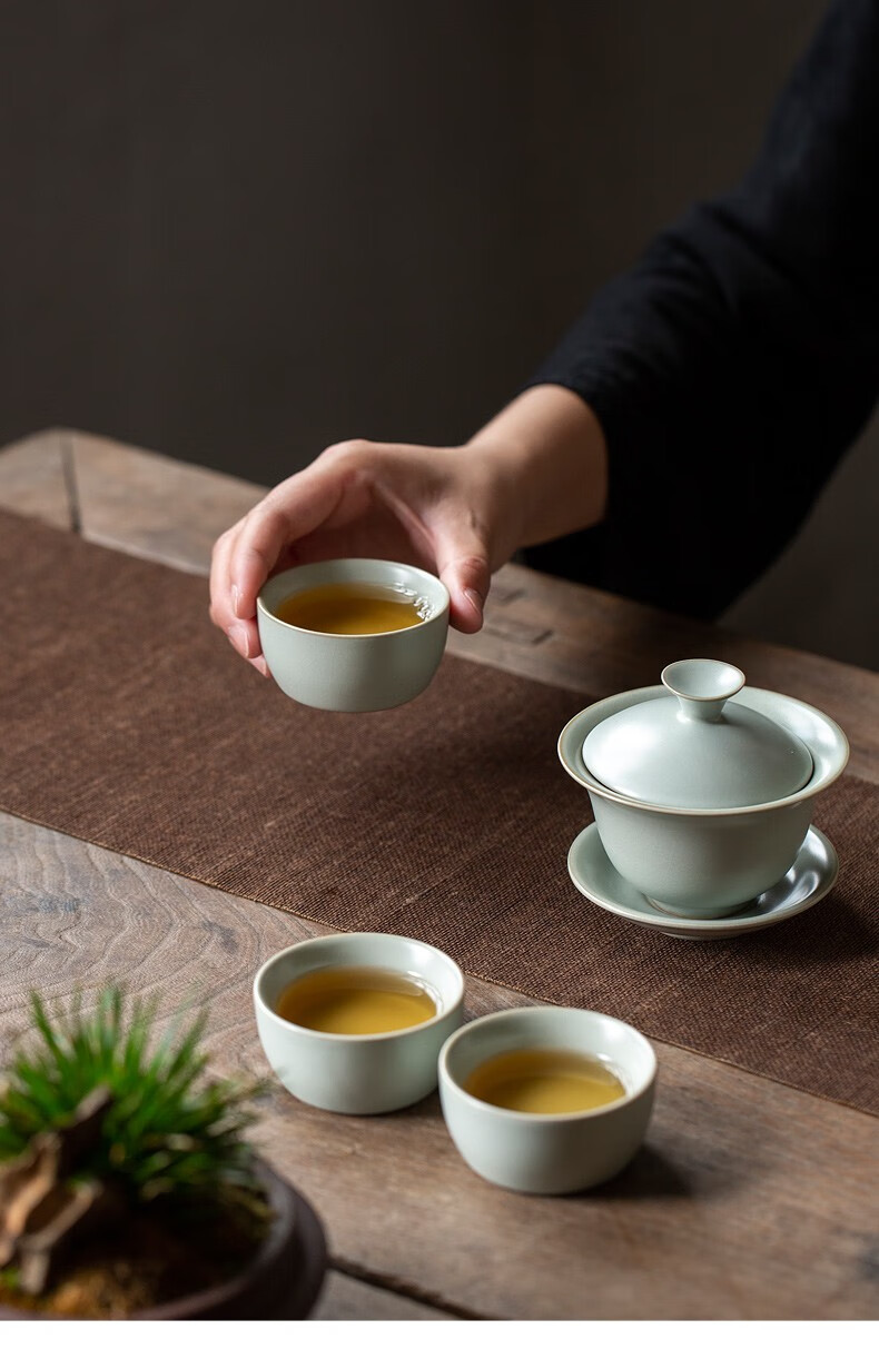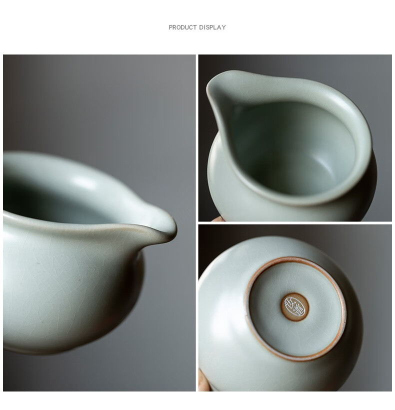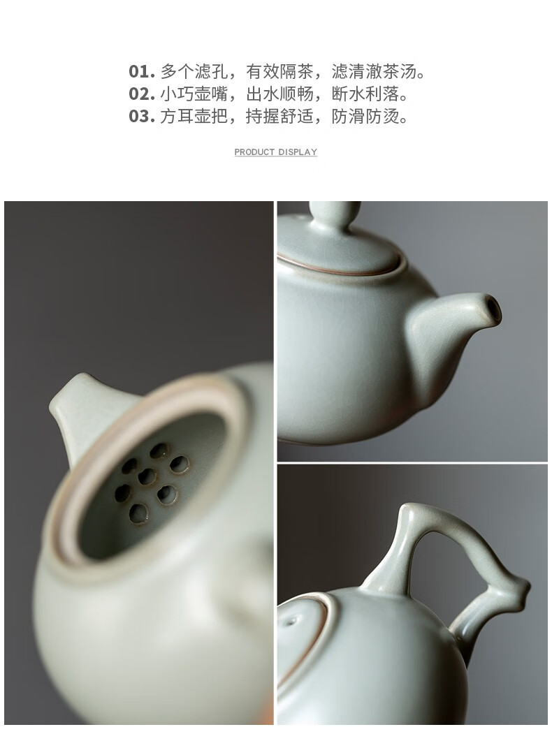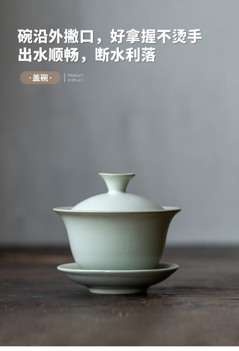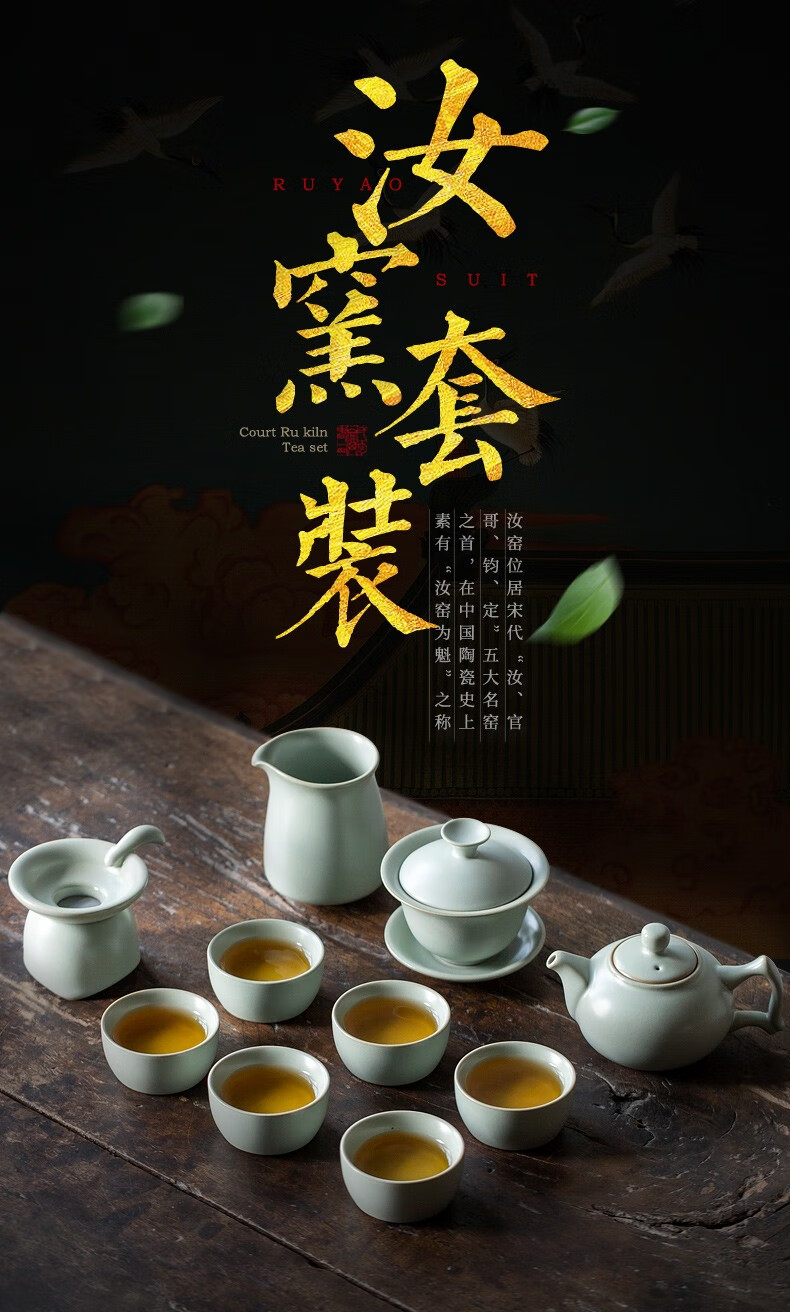 Rudao Ru Kiln Kung Fu Tea Set Covered Bowl Teapot Teacup Complete Set Ru Kiln Rare Open Slices Azure Retro Ceramic Household Tea Maker Gift Box Packaging Ru Kiln Square Ear Pot 11-pack Gift Box