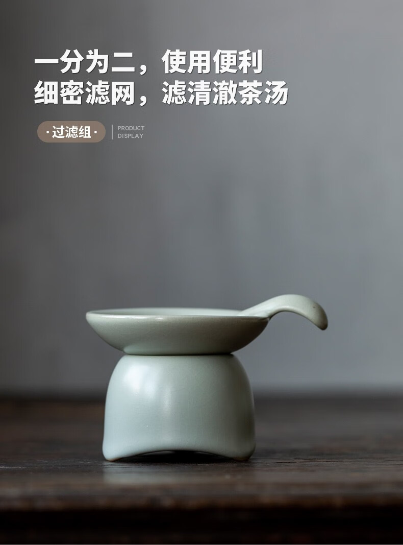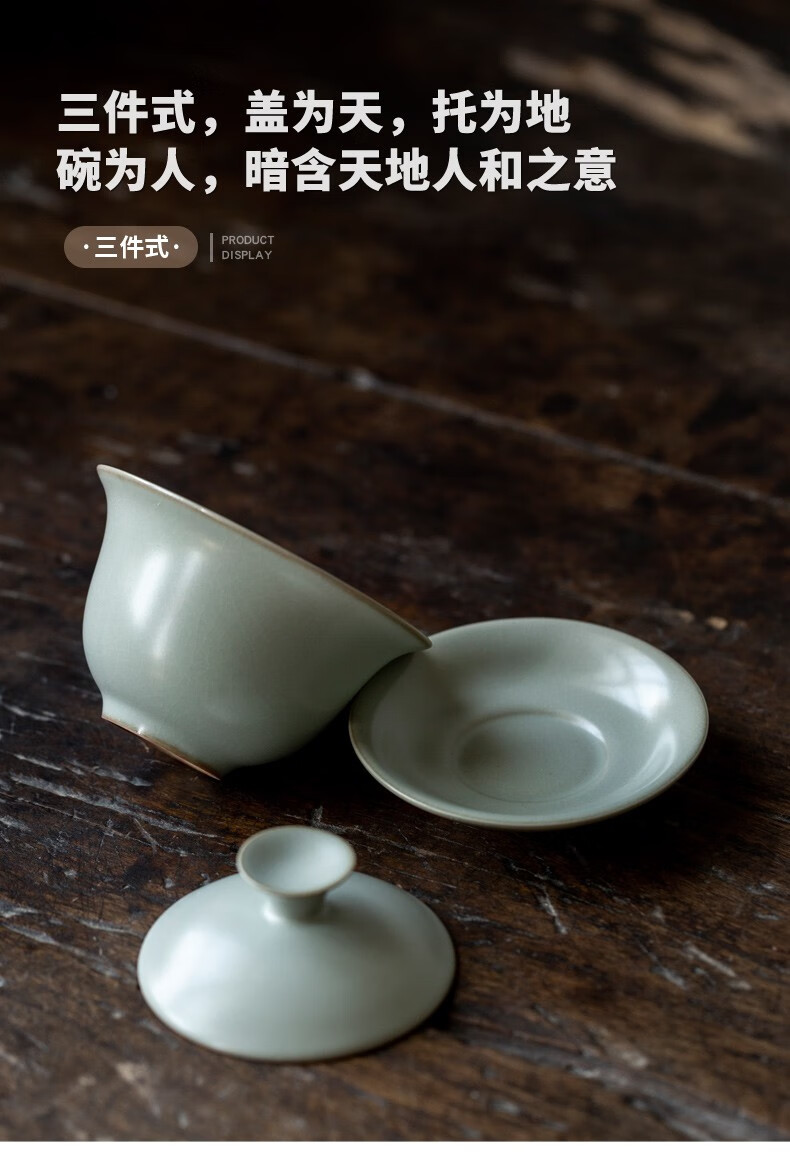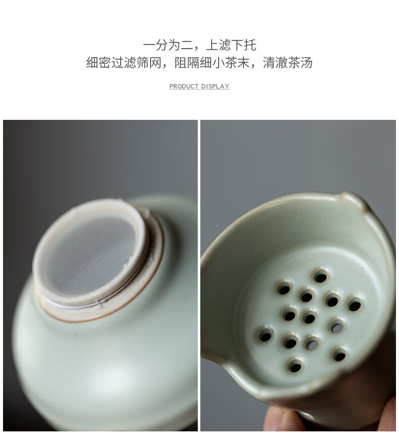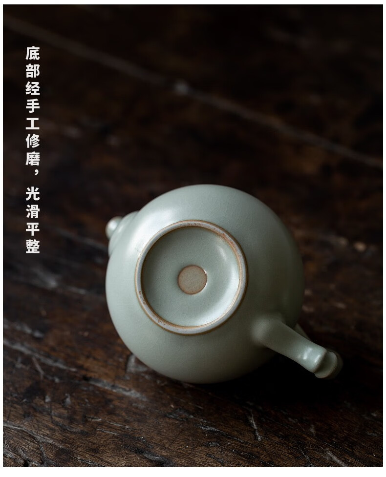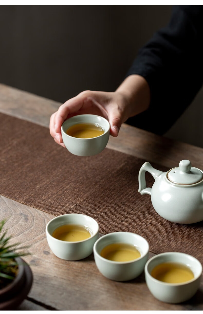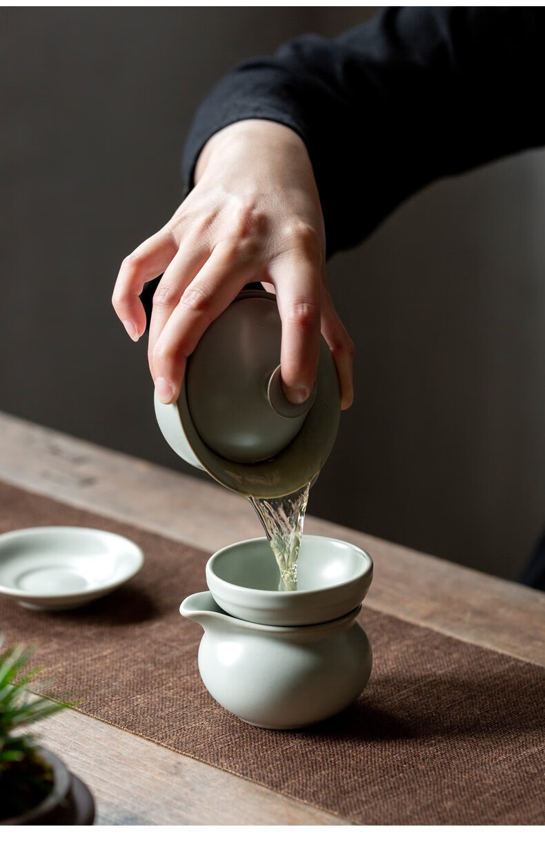Rudao Ru Kiln Kung Fu Tea Set Covered Bowl Teapot Teacup Complete Set Ru Kiln Rare Open Slices Azure Retro Ceramic Household Tea Maker Gift Box Packaging Ru Kiln Square Ear Pot 11-pack Gift Box