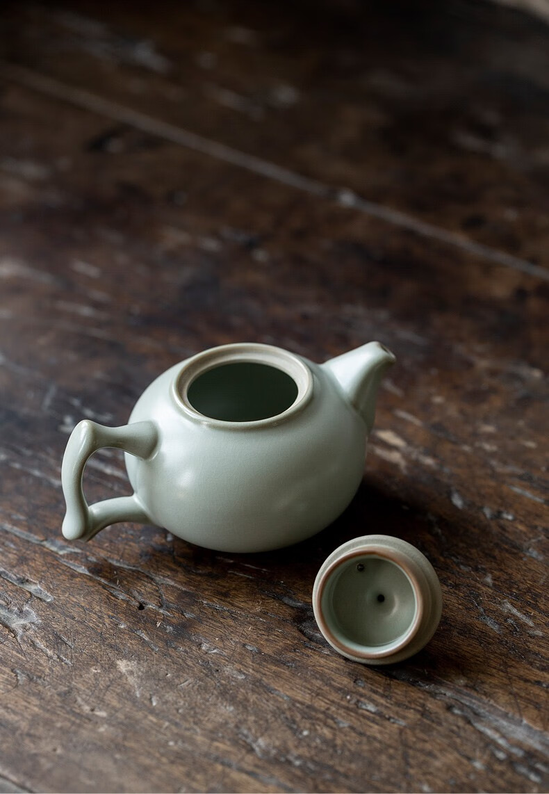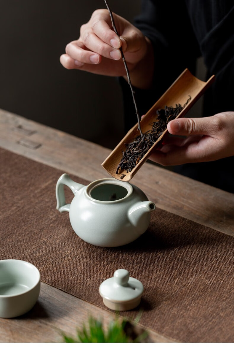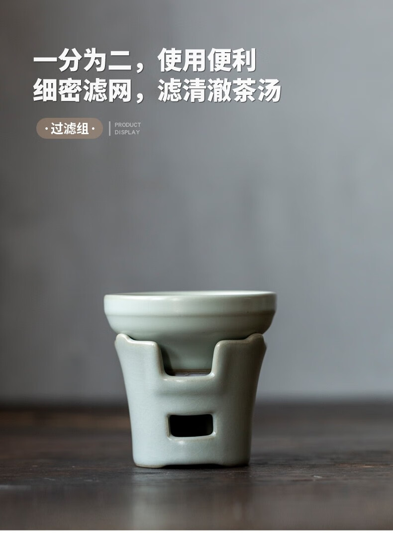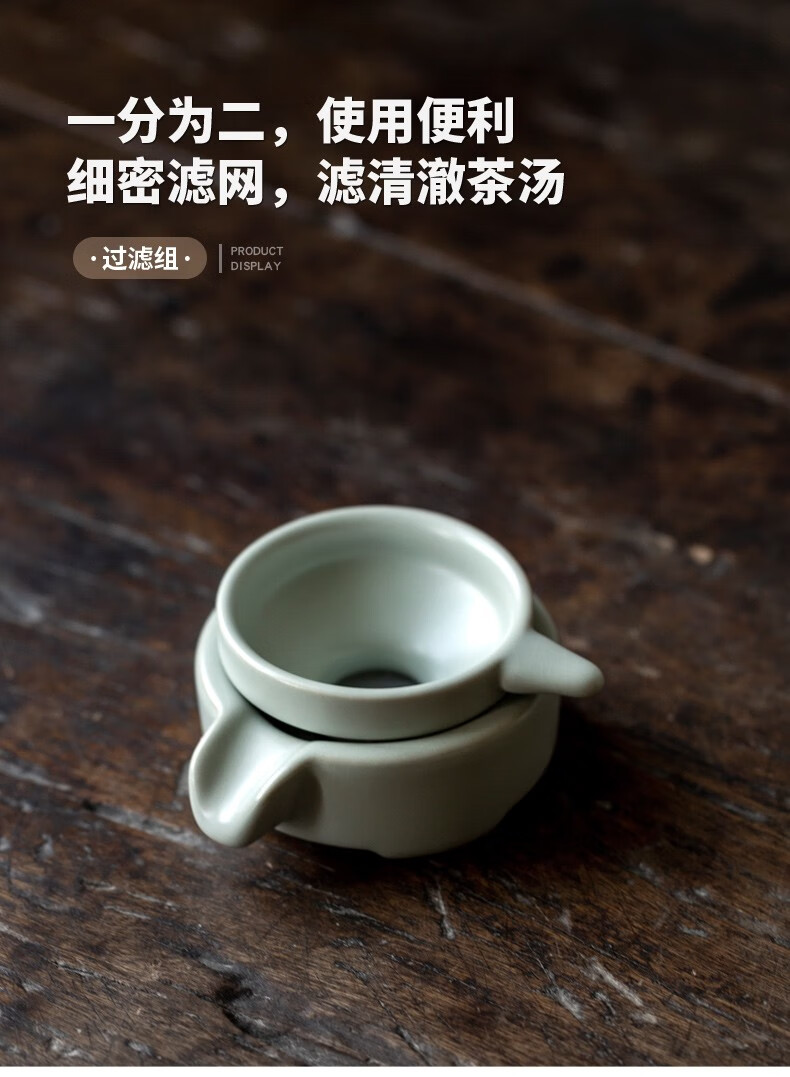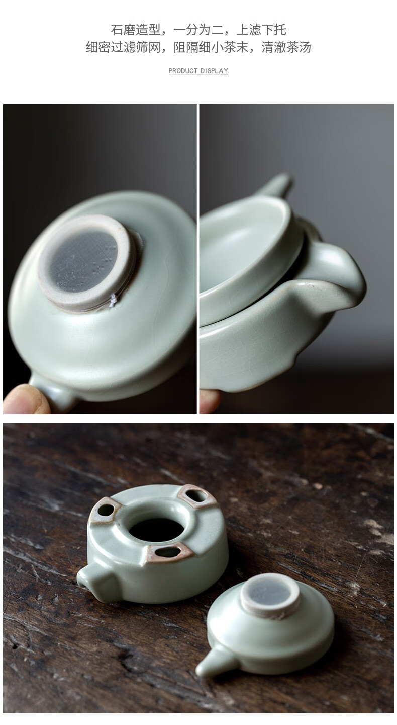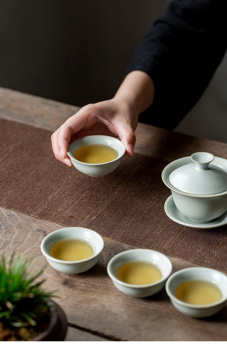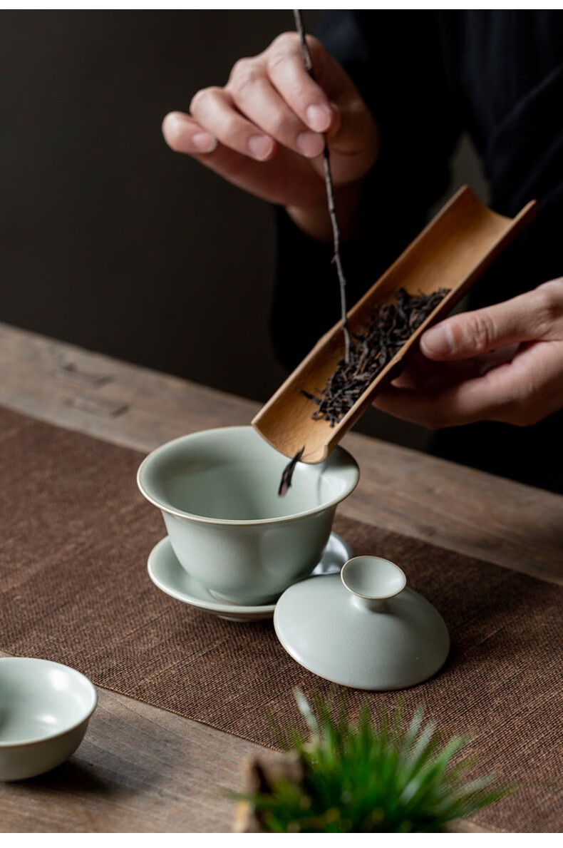 Rudao Ru Kiln Kung Fu Tea Set Covered Bowl Teapot Teacup Complete Set Ru Kiln Rare Open Slices Azure Retro Ceramic Household Tea Maker Gift Box Packaging Ru Kiln Square Ear Pot 11-pack Gift Box