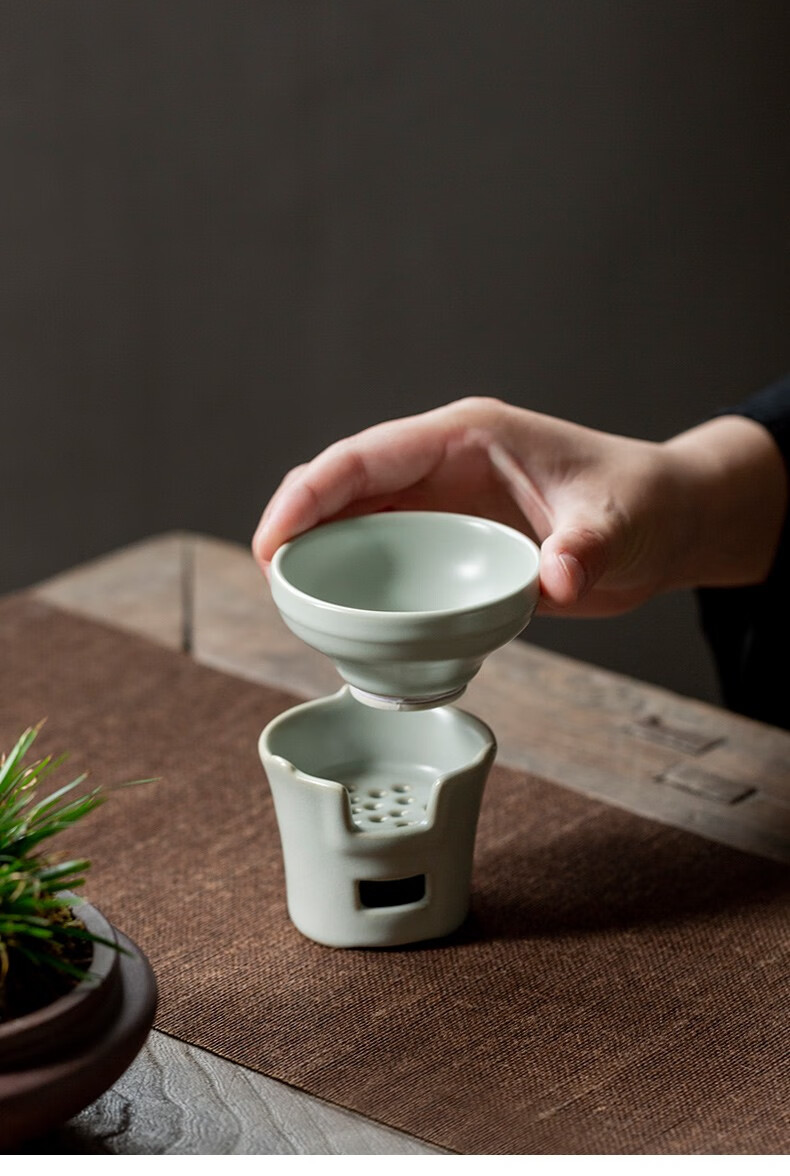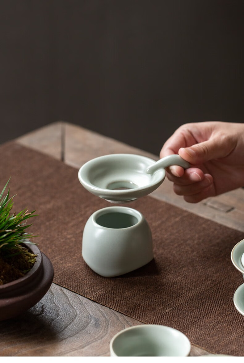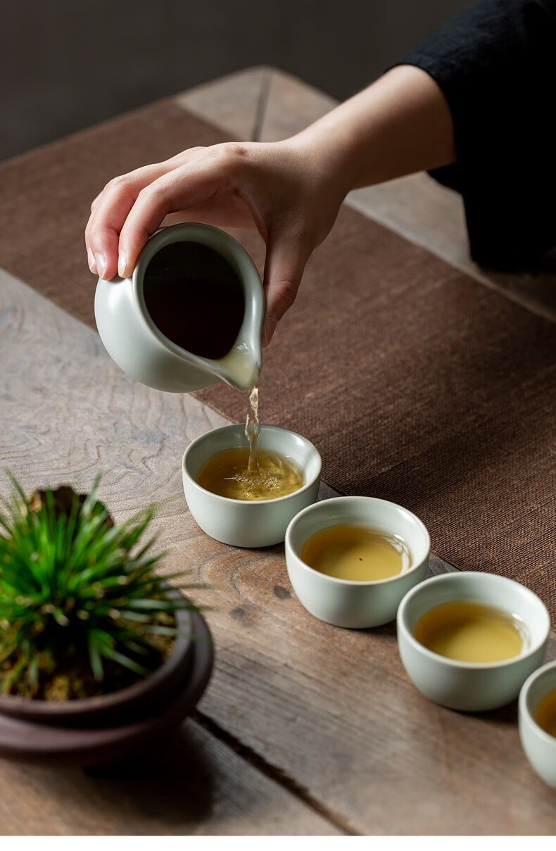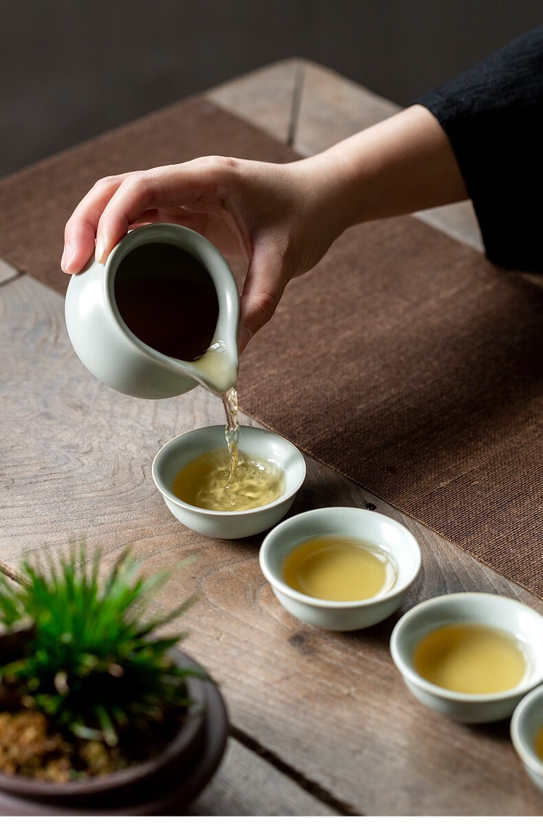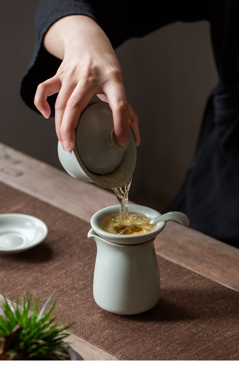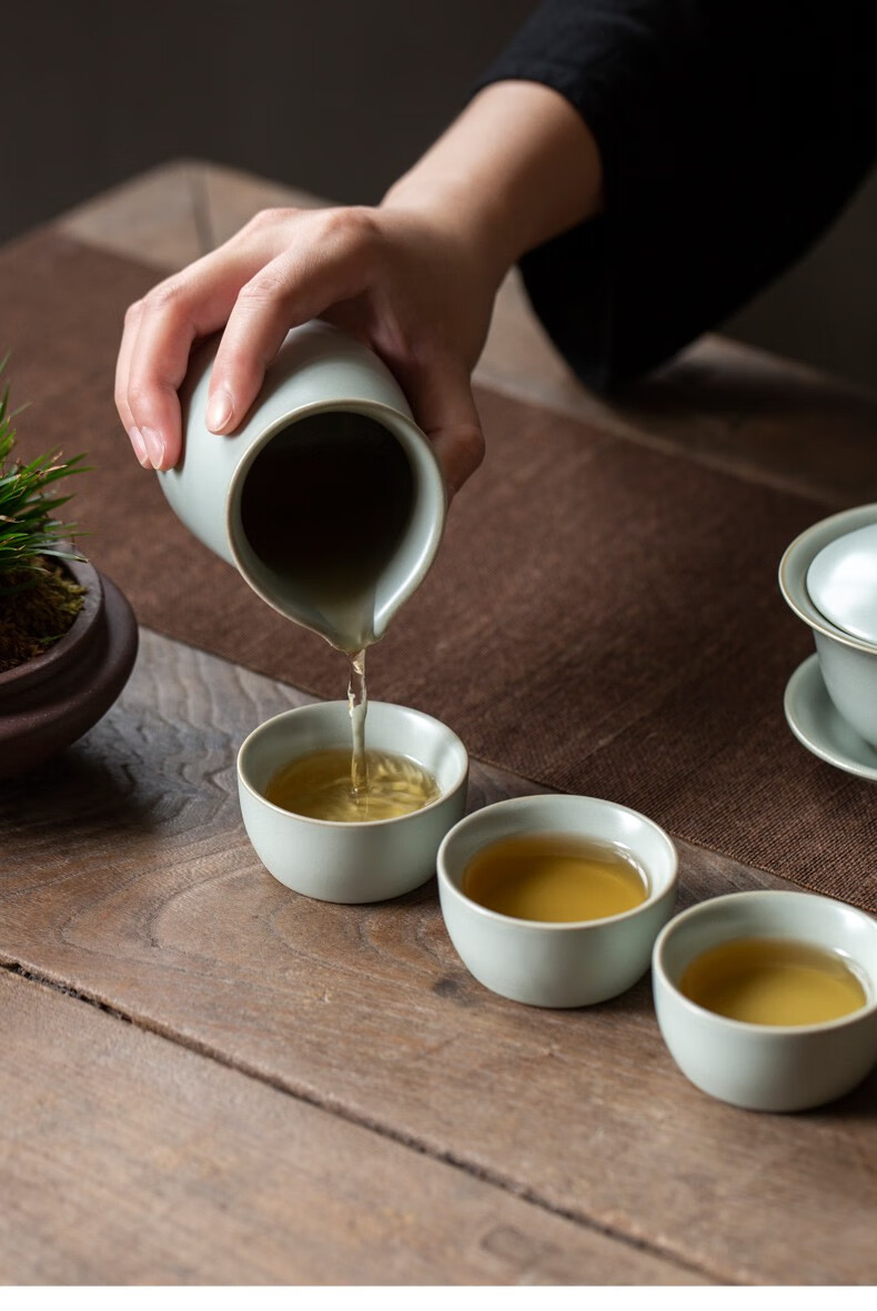 Rudao Ru Kiln Kung Fu Tea Set Covered Bowl Teapot Teacup Complete Set Ru Kiln Rare Open Slices Azure Retro Ceramic Household Tea Maker Gift Box Packaging Ru Kiln Square Ear Pot 11-pack Gift Box