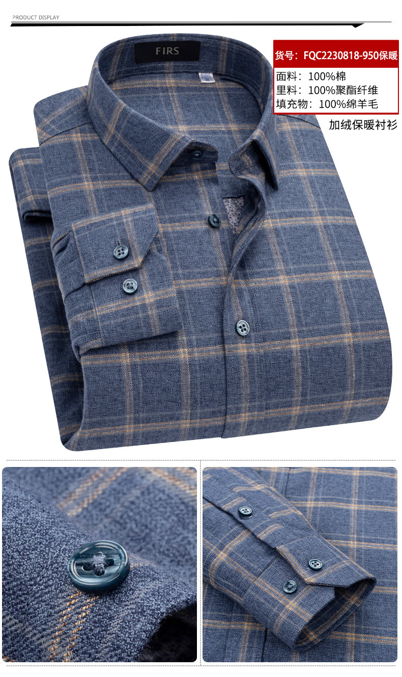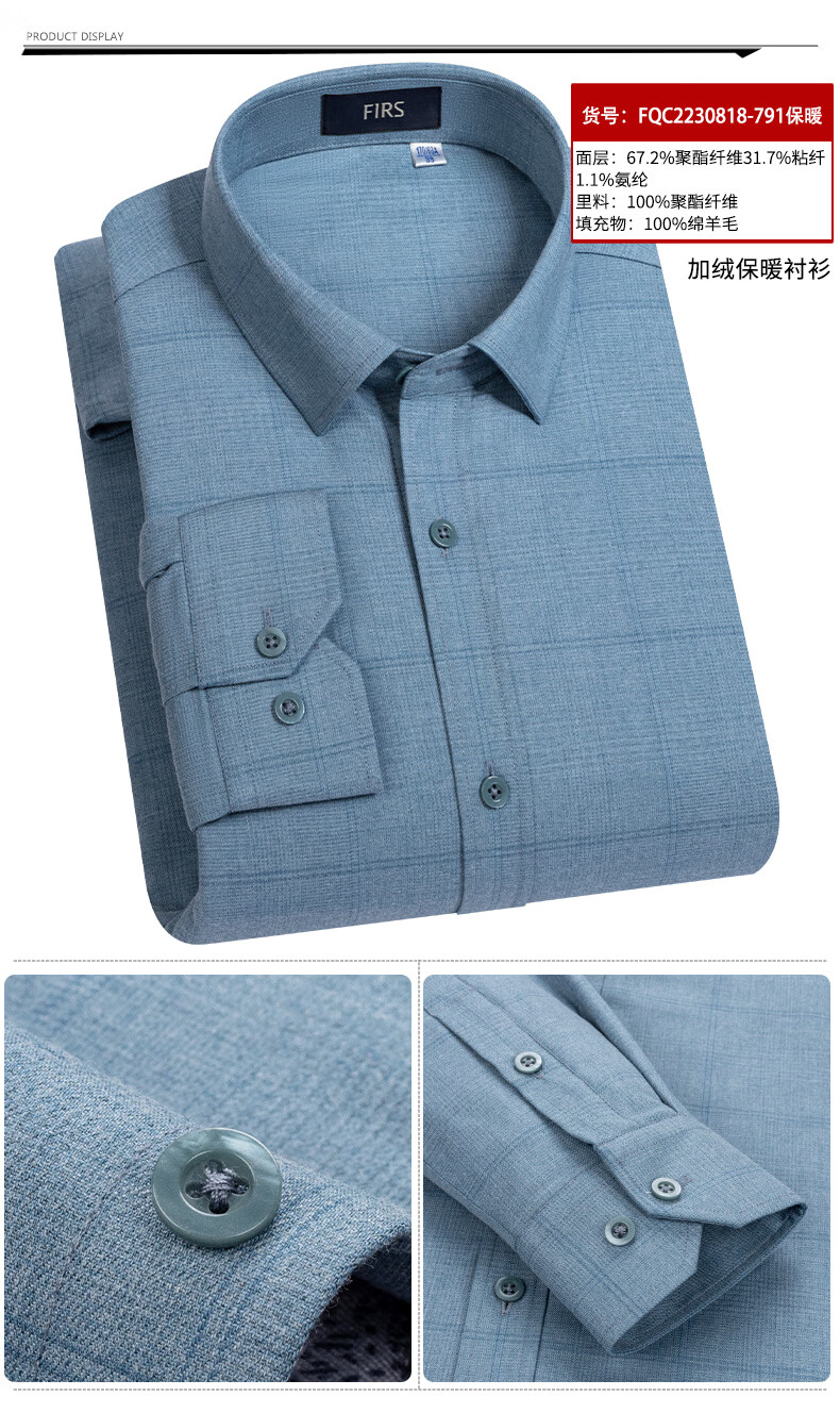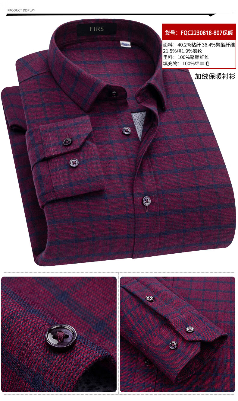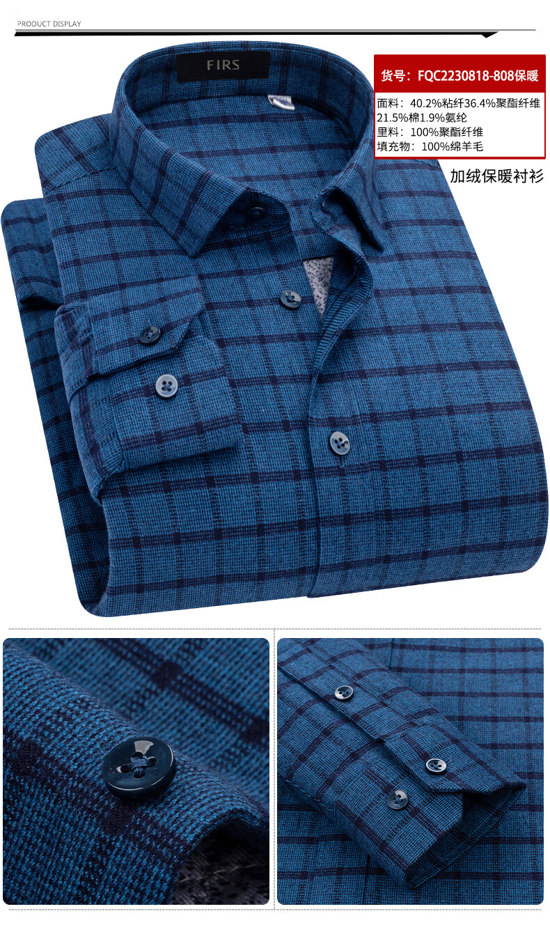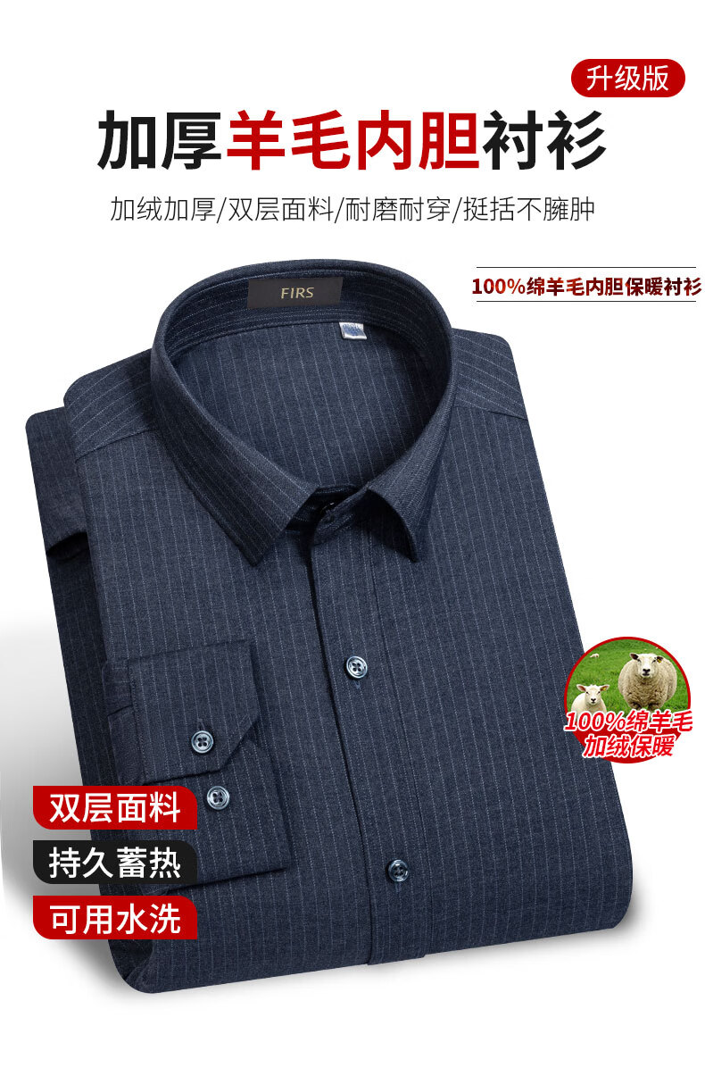 Shanshan (FIRS) 100% wool liner thickened warm shirt men's long-sleeved winter casual middle-aged dad fleece shirt FQC2230818-798 warm 41