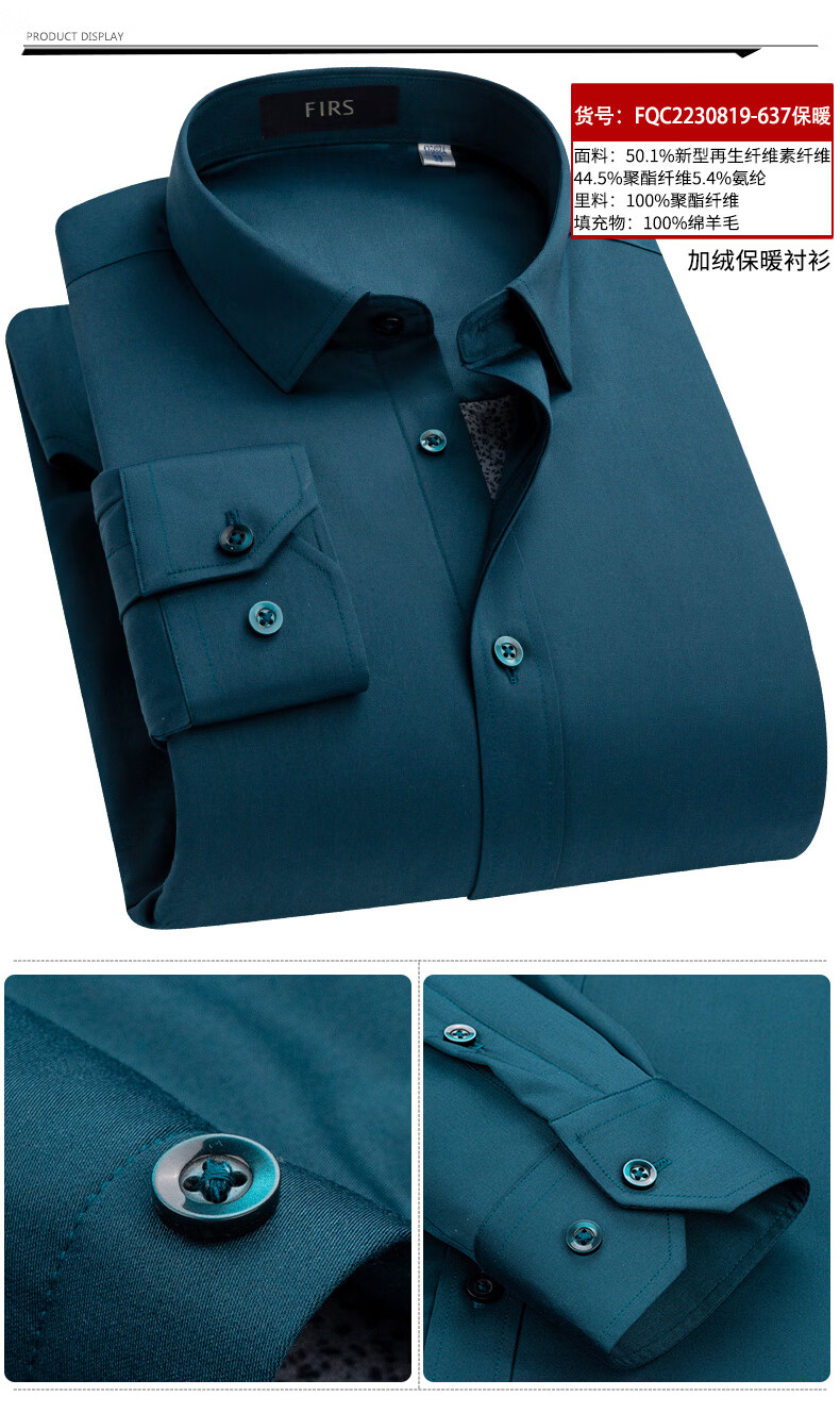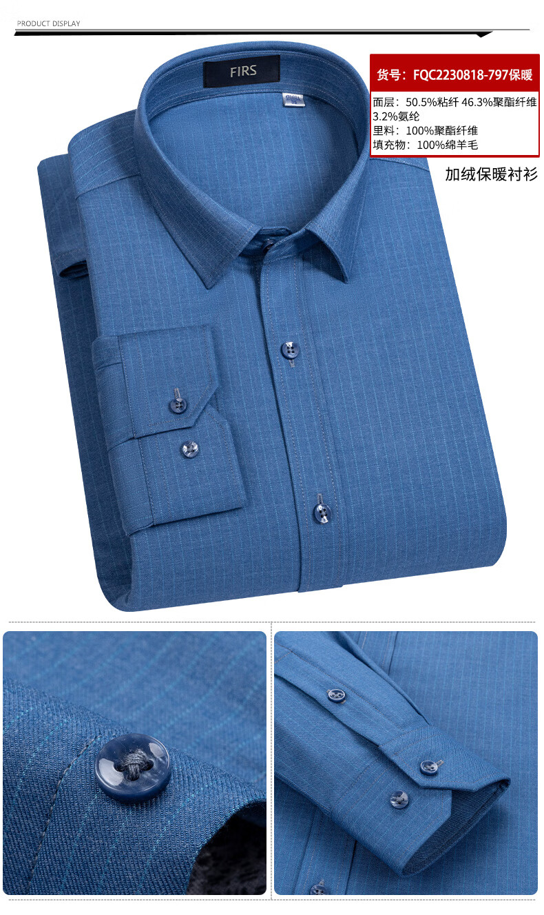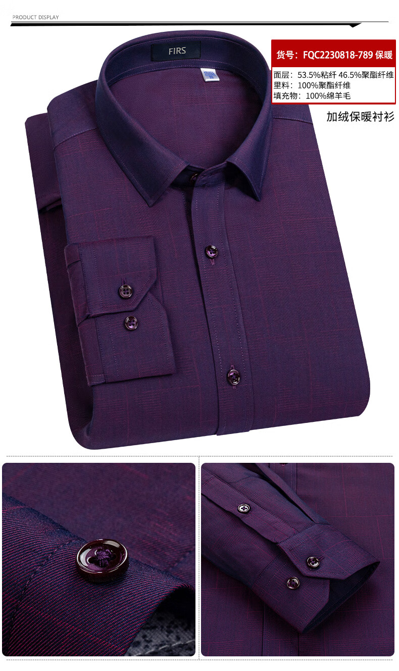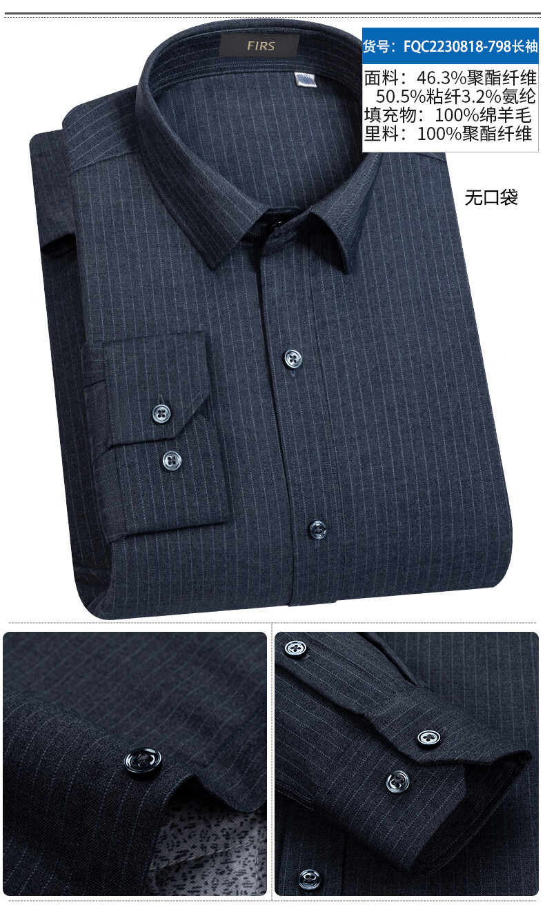 Shanshan (FIRS) 100% wool liner thickened warm shirt men's long-sleeved winter casual middle-aged dad fleece shirt FQC2230818-798 warm 41