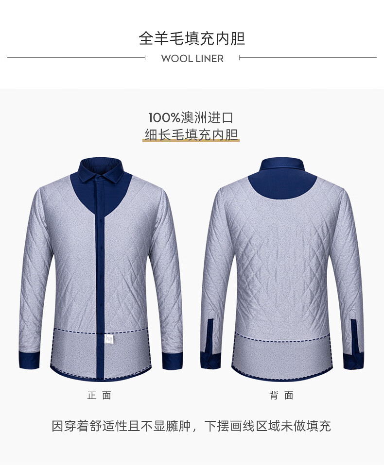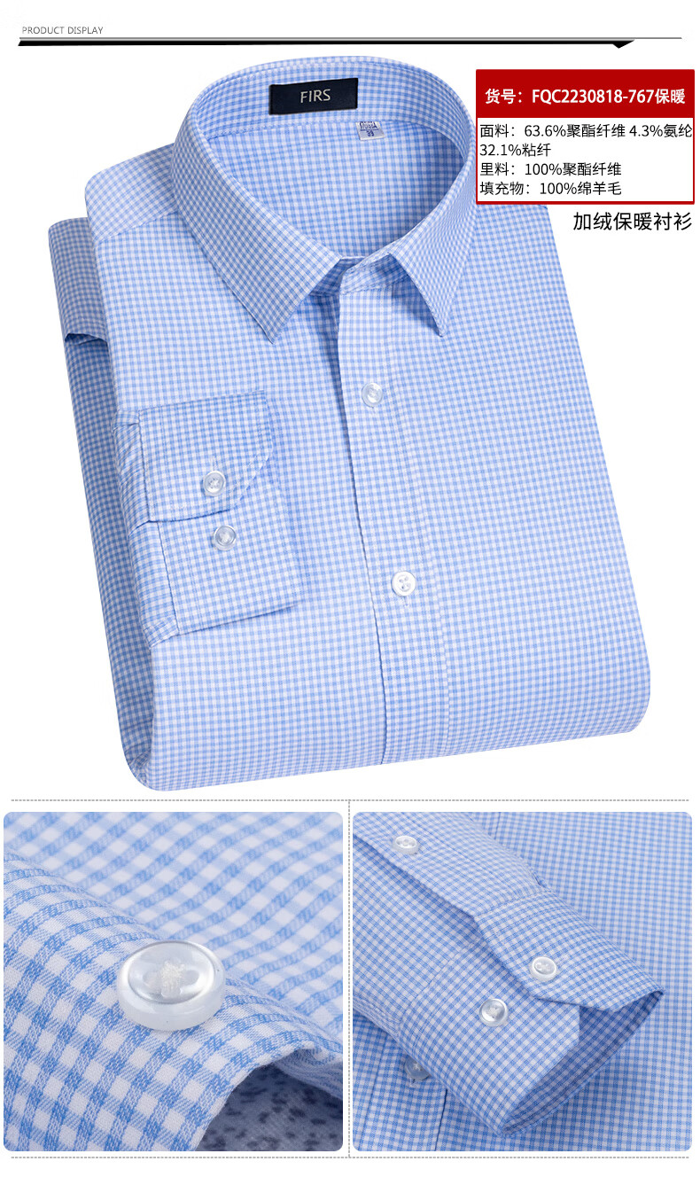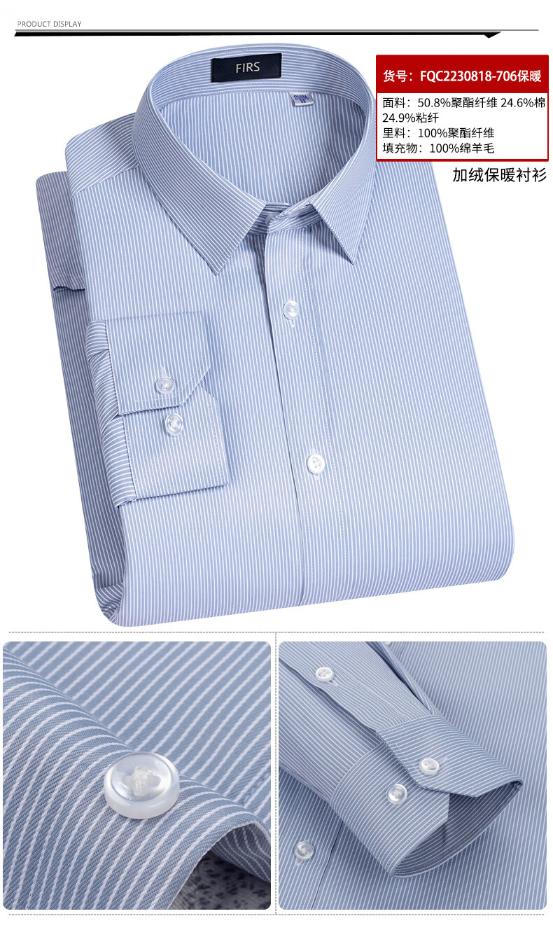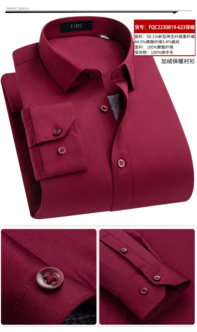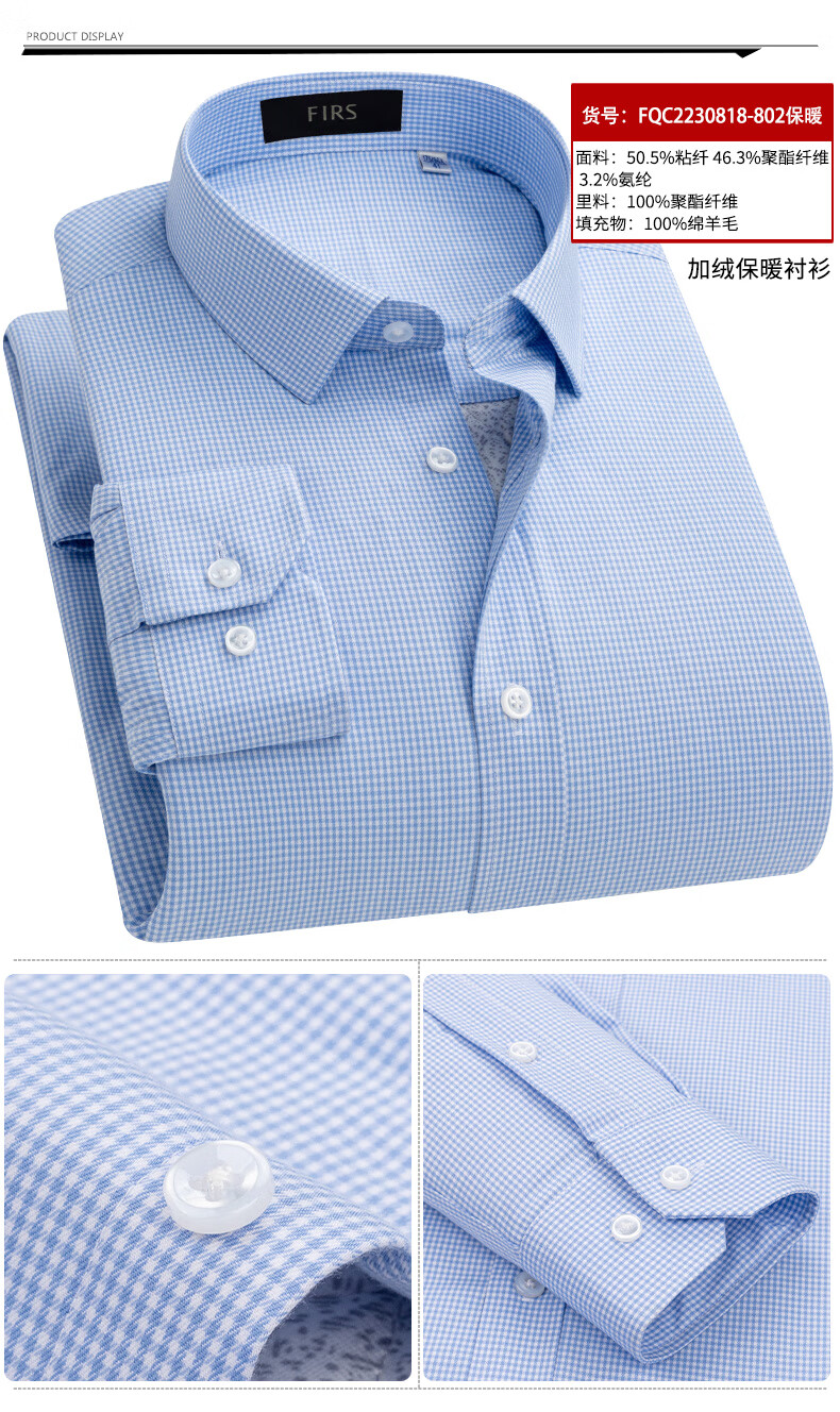 Shanshan (FIRS) 100% wool liner thickened warm shirt men's long-sleeved winter casual middle-aged dad fleece shirt FQC2230818-798 warm 41