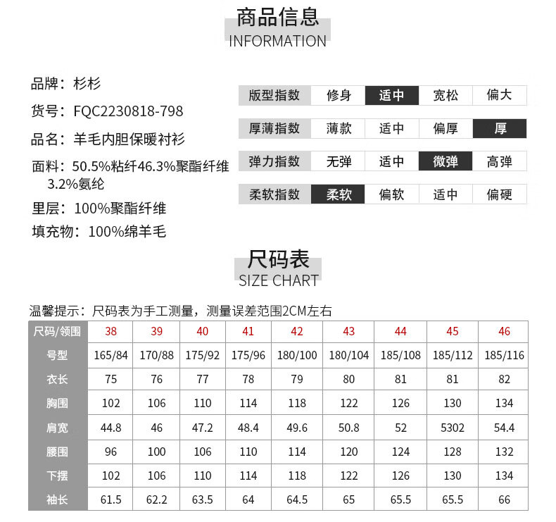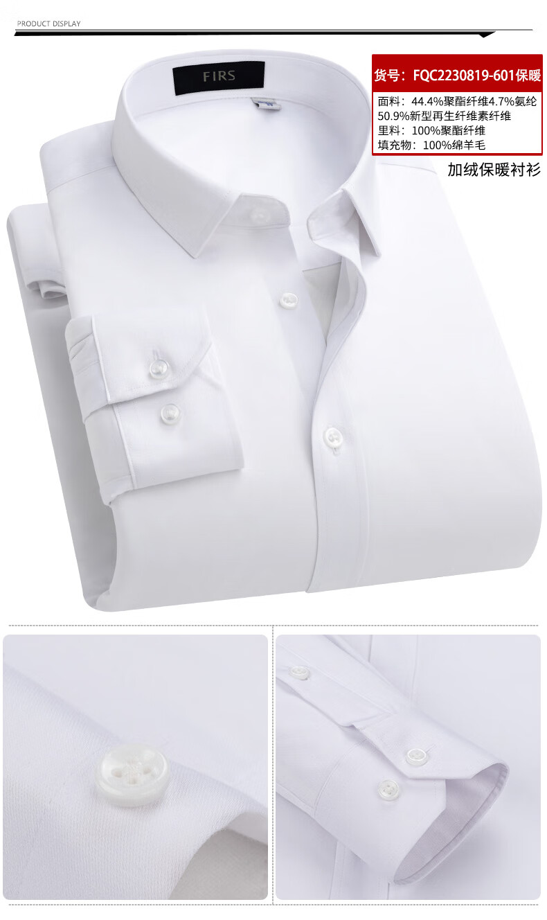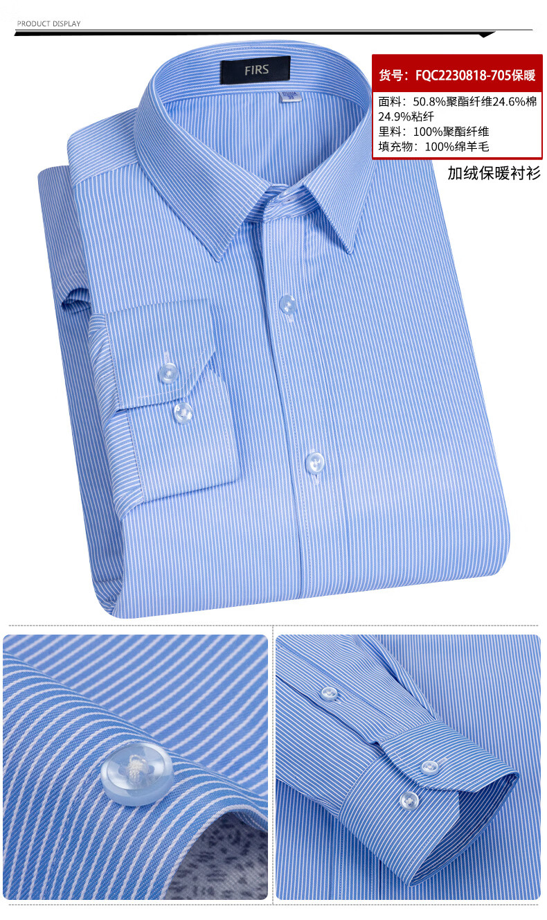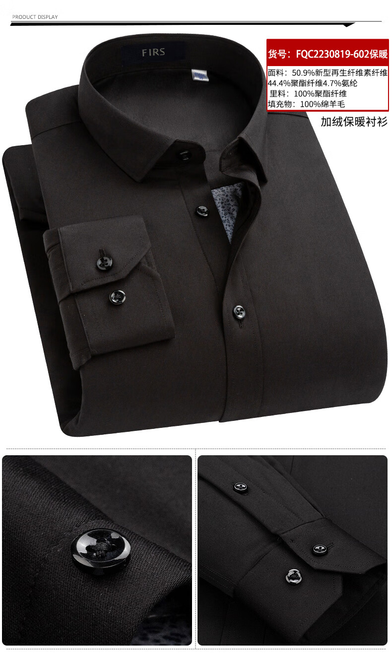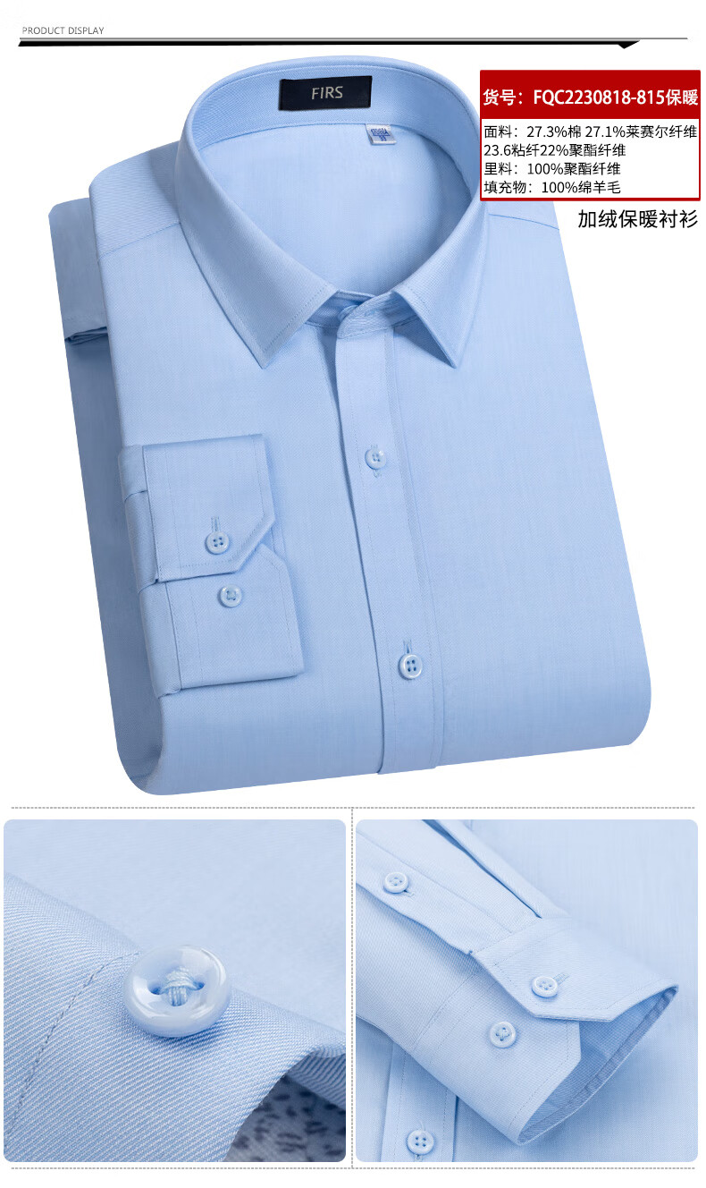 Shanshan (FIRS) 100% wool liner thickened warm shirt men's long-sleeved winter casual middle-aged dad fleece shirt FQC2230818-798 warm 41