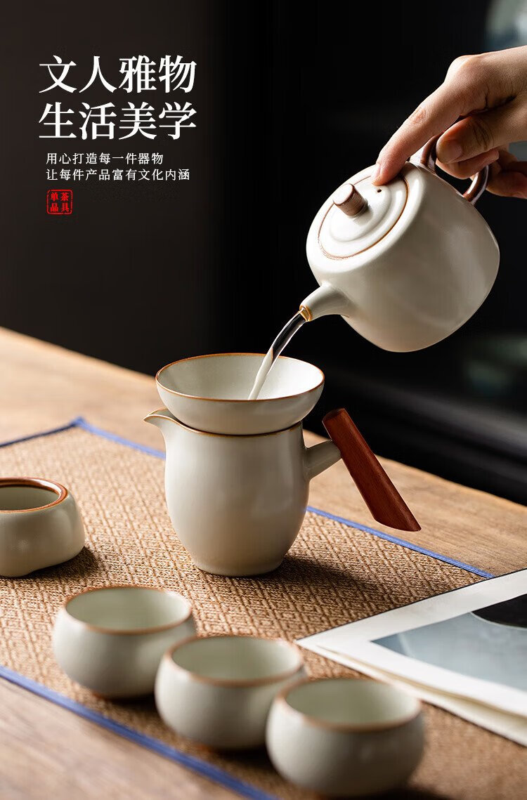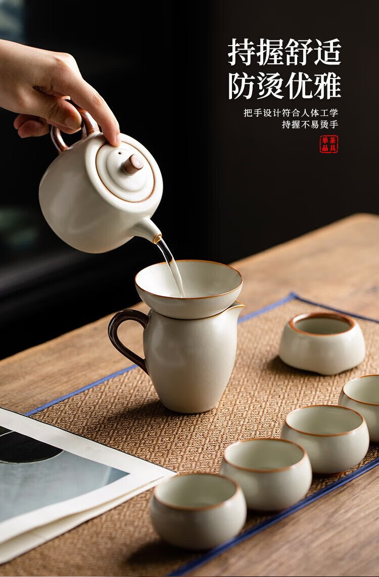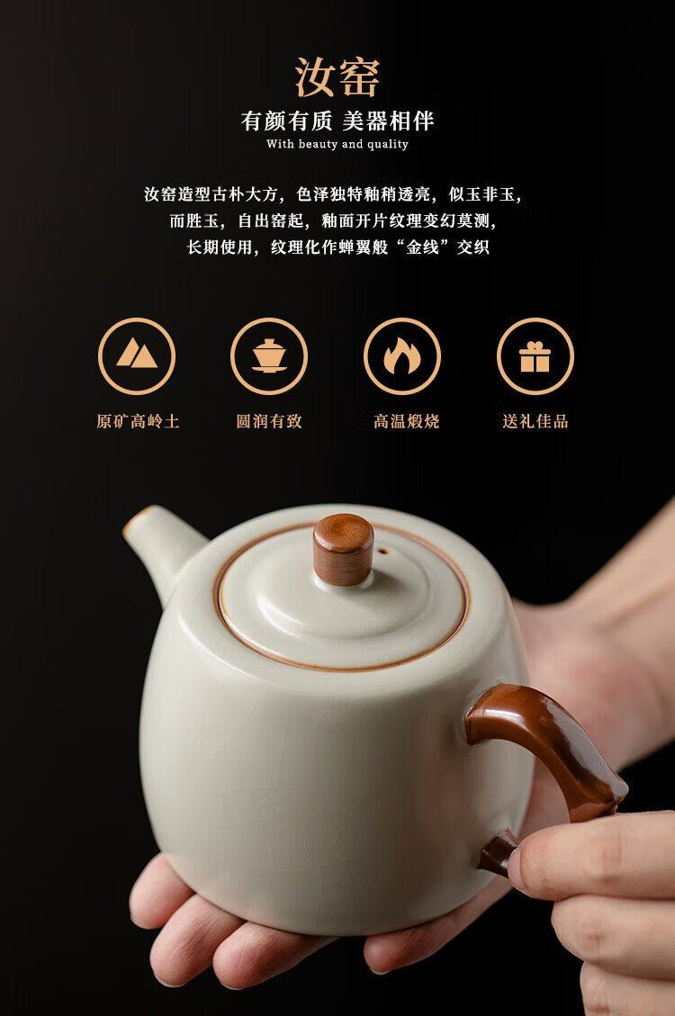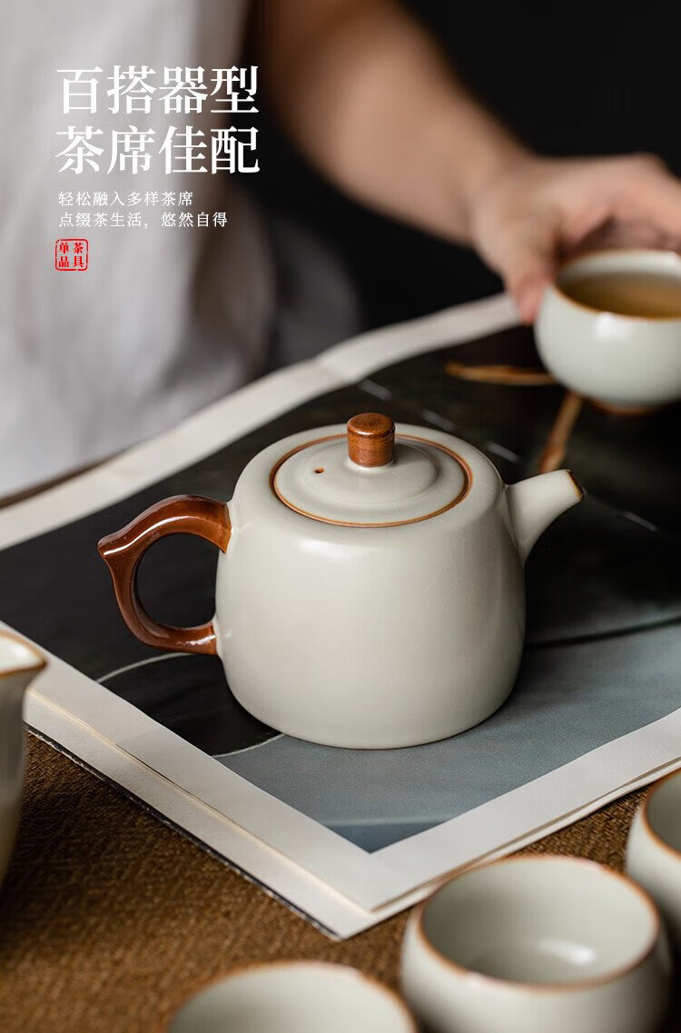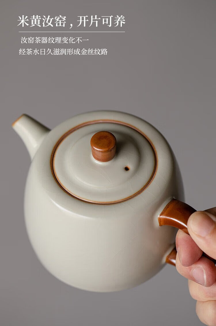 Xiyuanji Beige Ru Kiln Teapot Ceramic Large Teapot Jinglan Pot Kung Fu Tea Set Tea Kettle Beige Ru Kiln Jinglan Teapot Gift Box