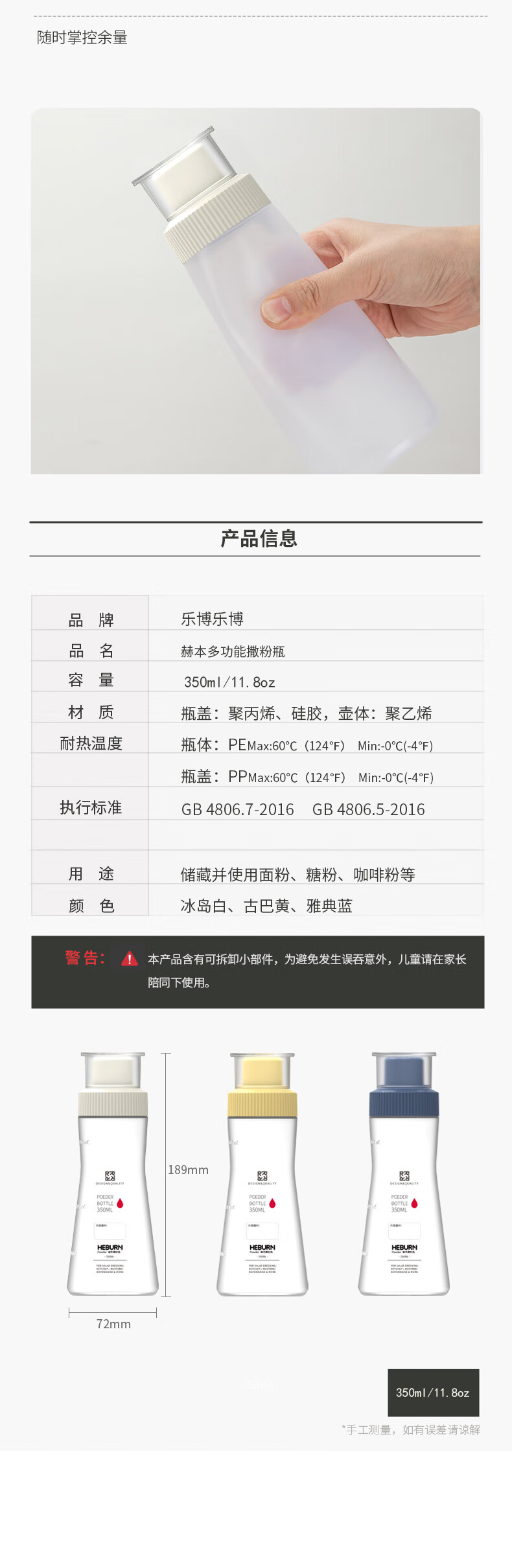 Tingyang Japanese-style dusting bottle with lid, moisture-proof and dust-proof flour sugar powder seasoning bottle, kitchen barbecue seasoning bottle, seasoning jar, white, one pack 350ml