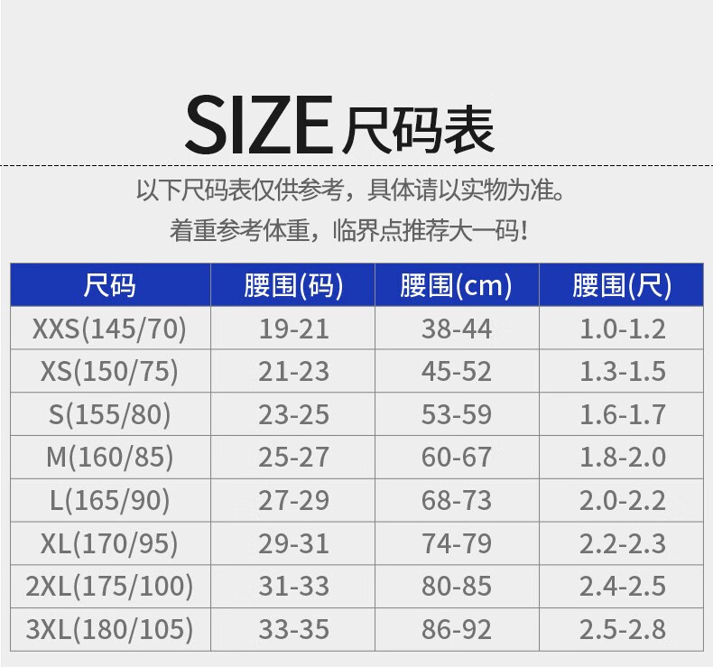 USA(inch) 28-30 30-32 32-34 34-38 38-42