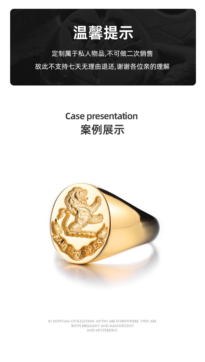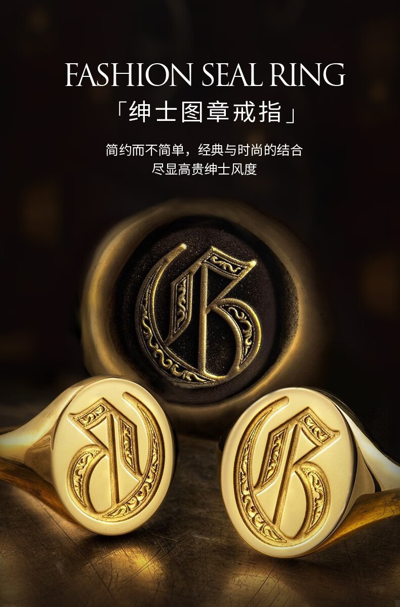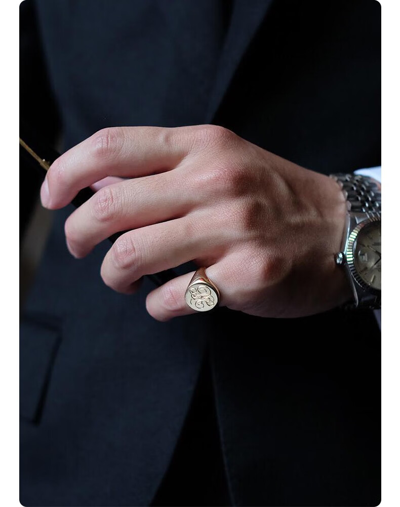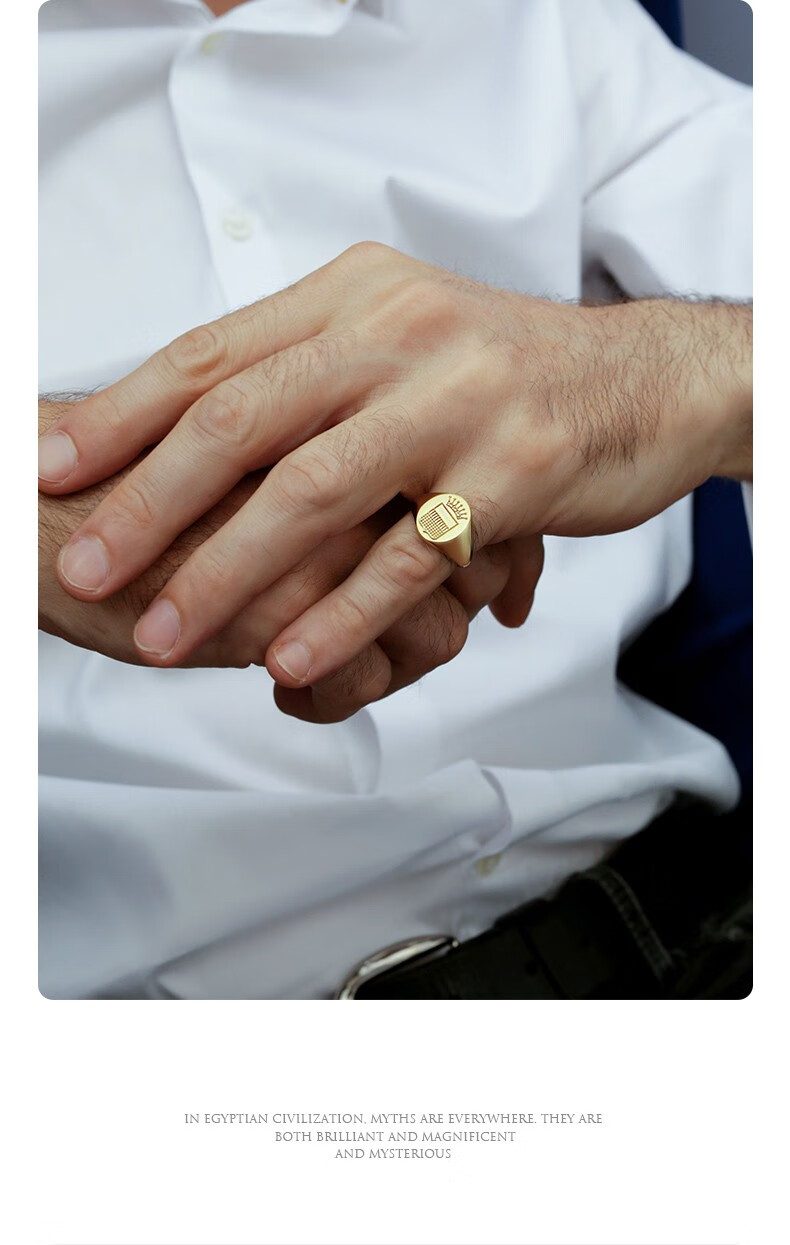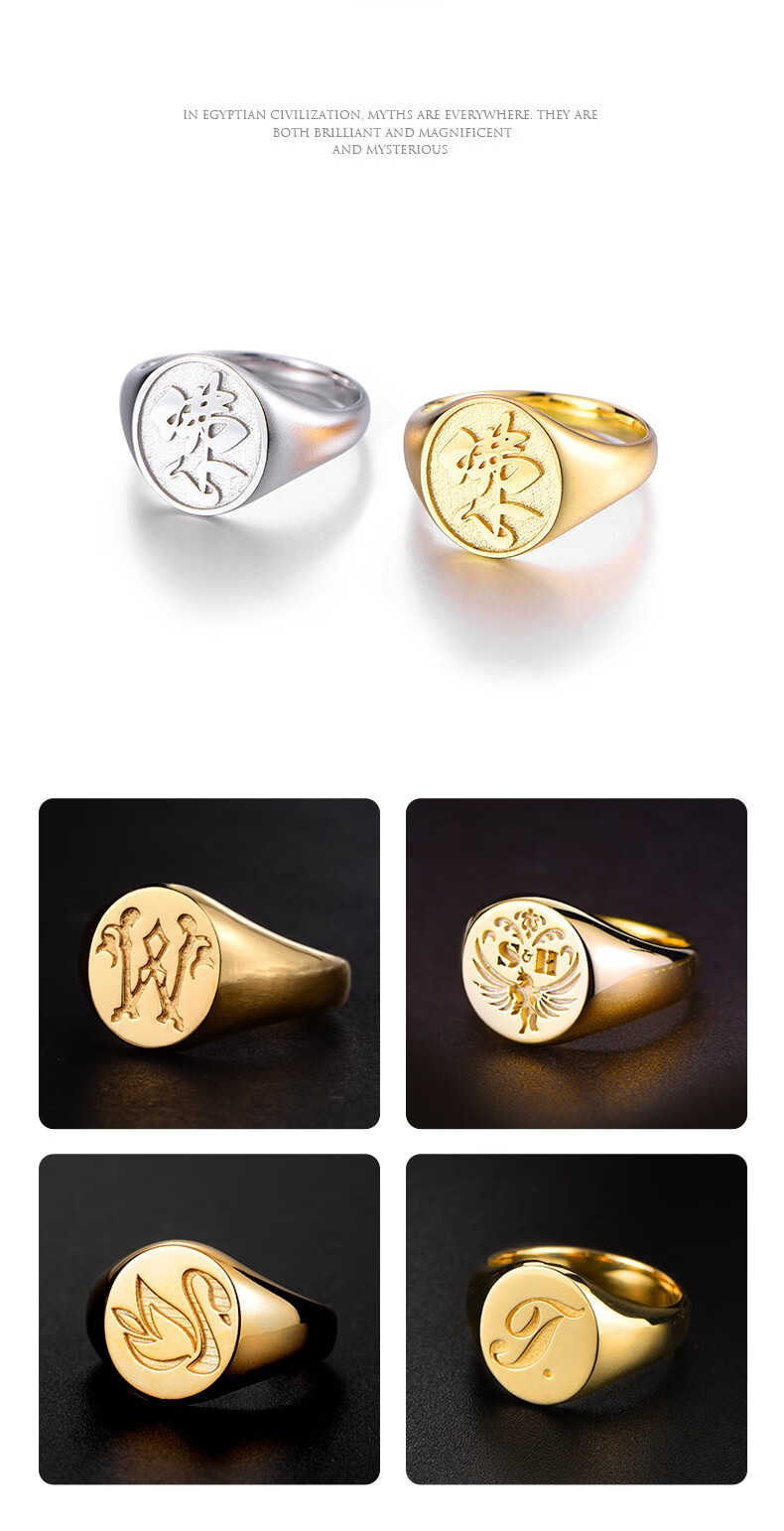 IDEAGEMER Gentleman's Signet Ring Customized Ring Men's Personalized Customized K Yellow Ring Jewelry Birthday Gift for Boyfriend Signet Ring Silver Gold-plated Style