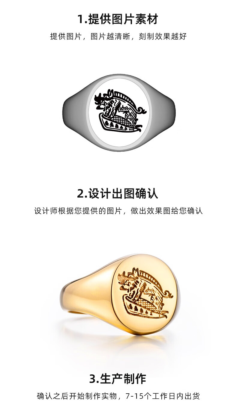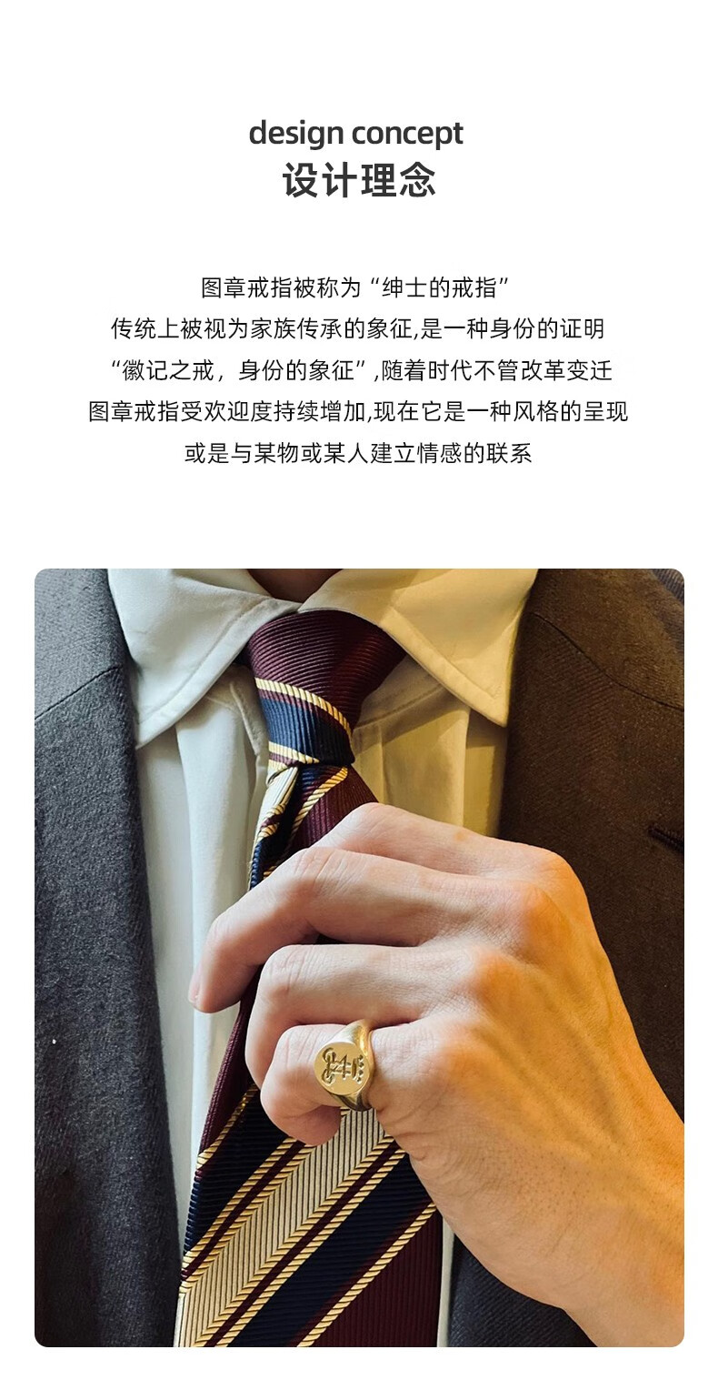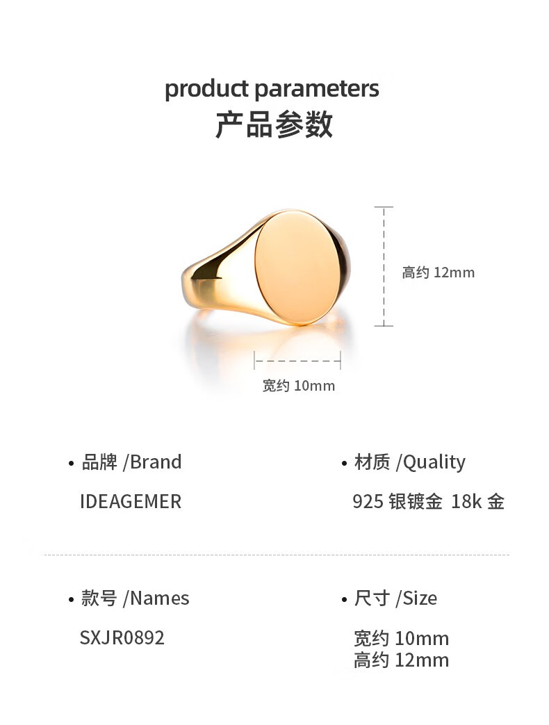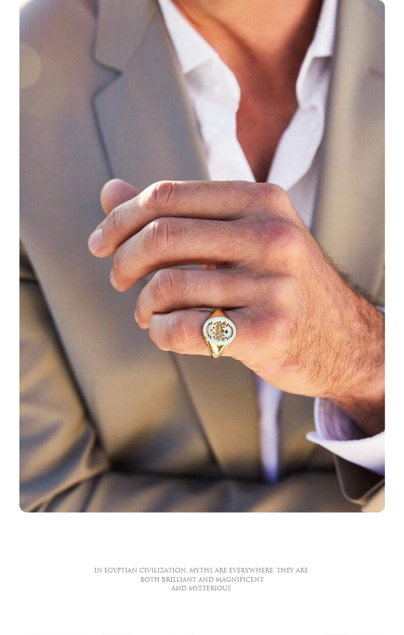 IDEAGEMER Gentleman's Signet Ring Customized Ring Men's Personalized Customized K Yellow Ring Jewelry Birthday Gift for Boyfriend Signet Ring Silver Gold-plated Style