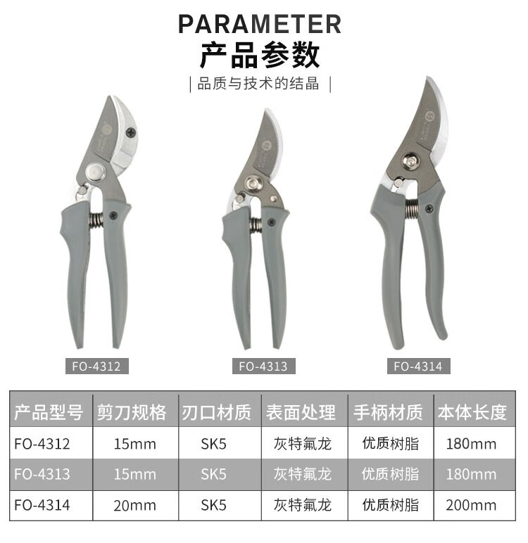 鰰 Fukuoka Tools Garden Shears Fruit Tree Pruning Shears Garden Shears Labor-Saving Scissors 200mm Garden Shears FO-4314