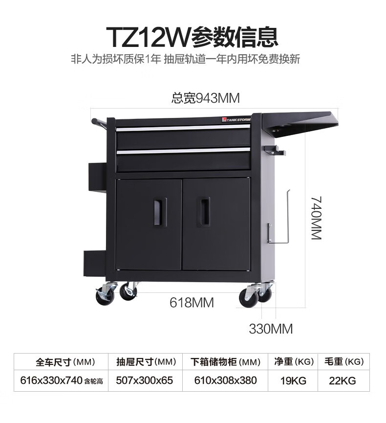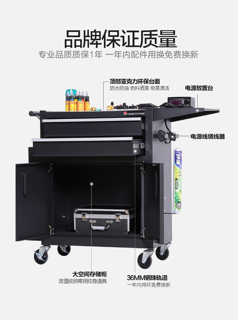 TANKSTORM Tank Storm Auto Repair Tool Cart Cart Tool Box Multifunctional Tattoo Workbench Workshop Tool Cabinet TZ12W Black Tattoo Customized Model