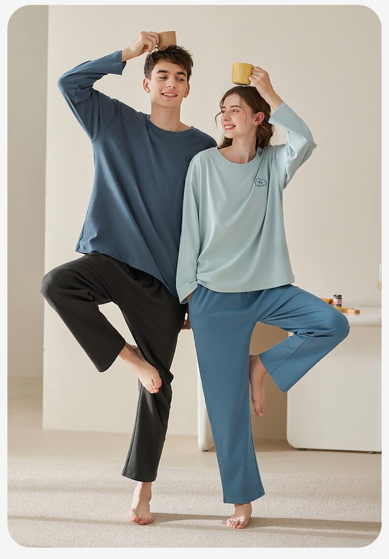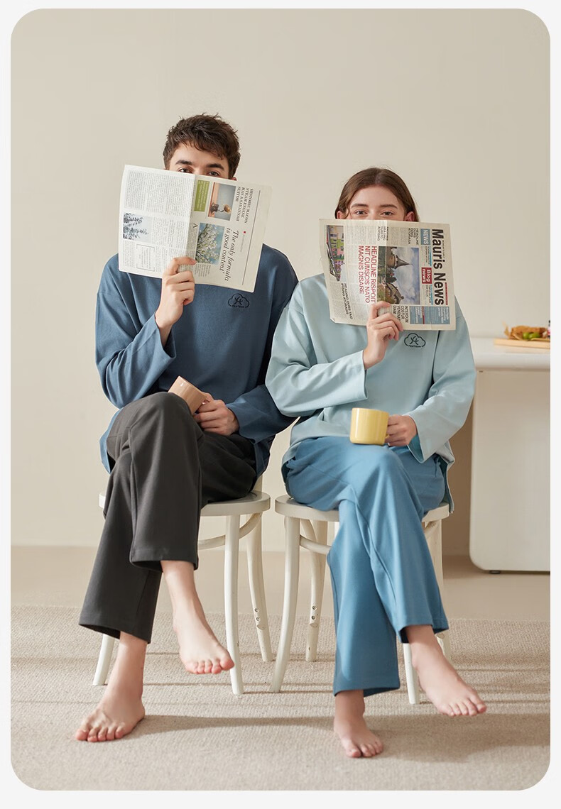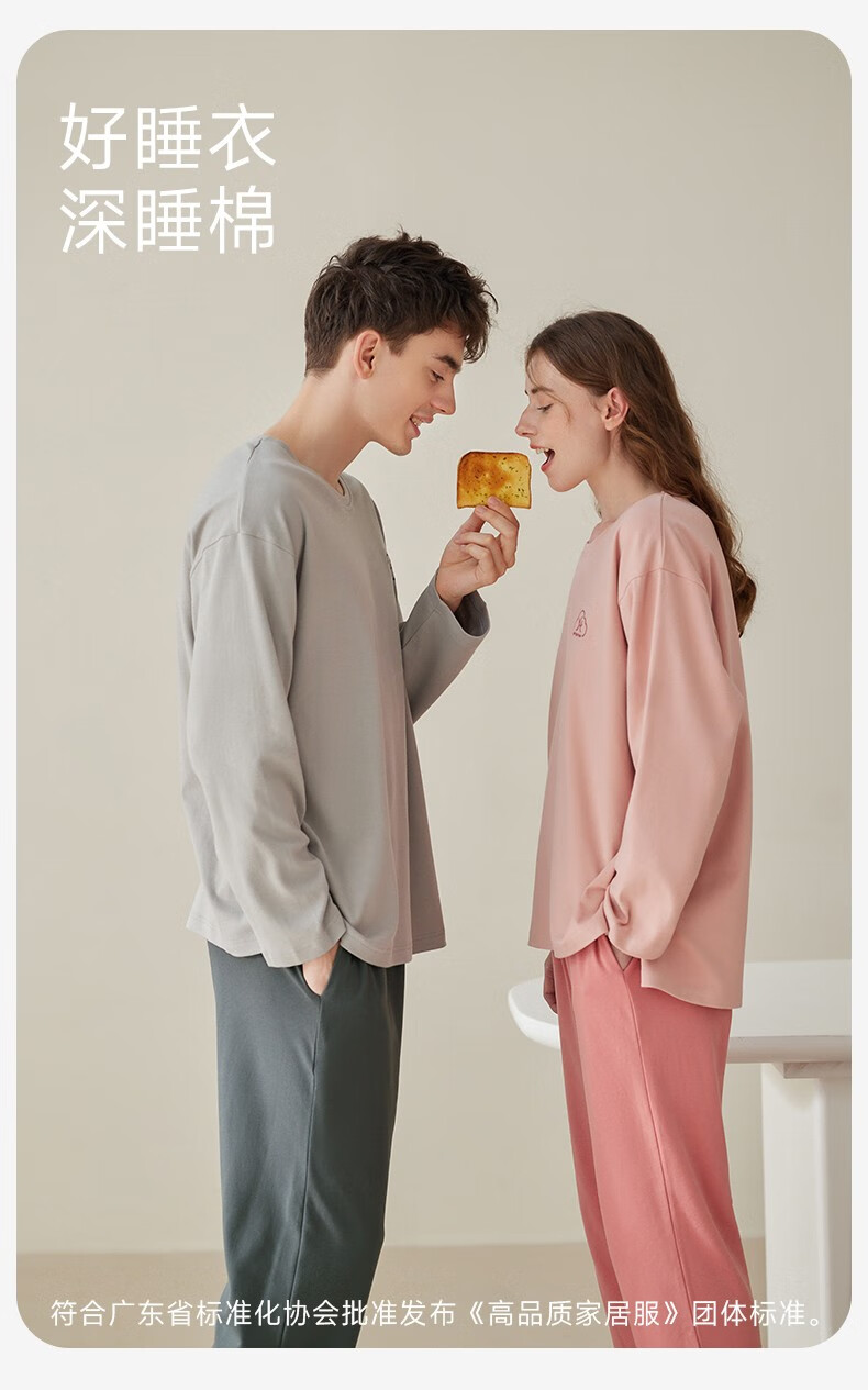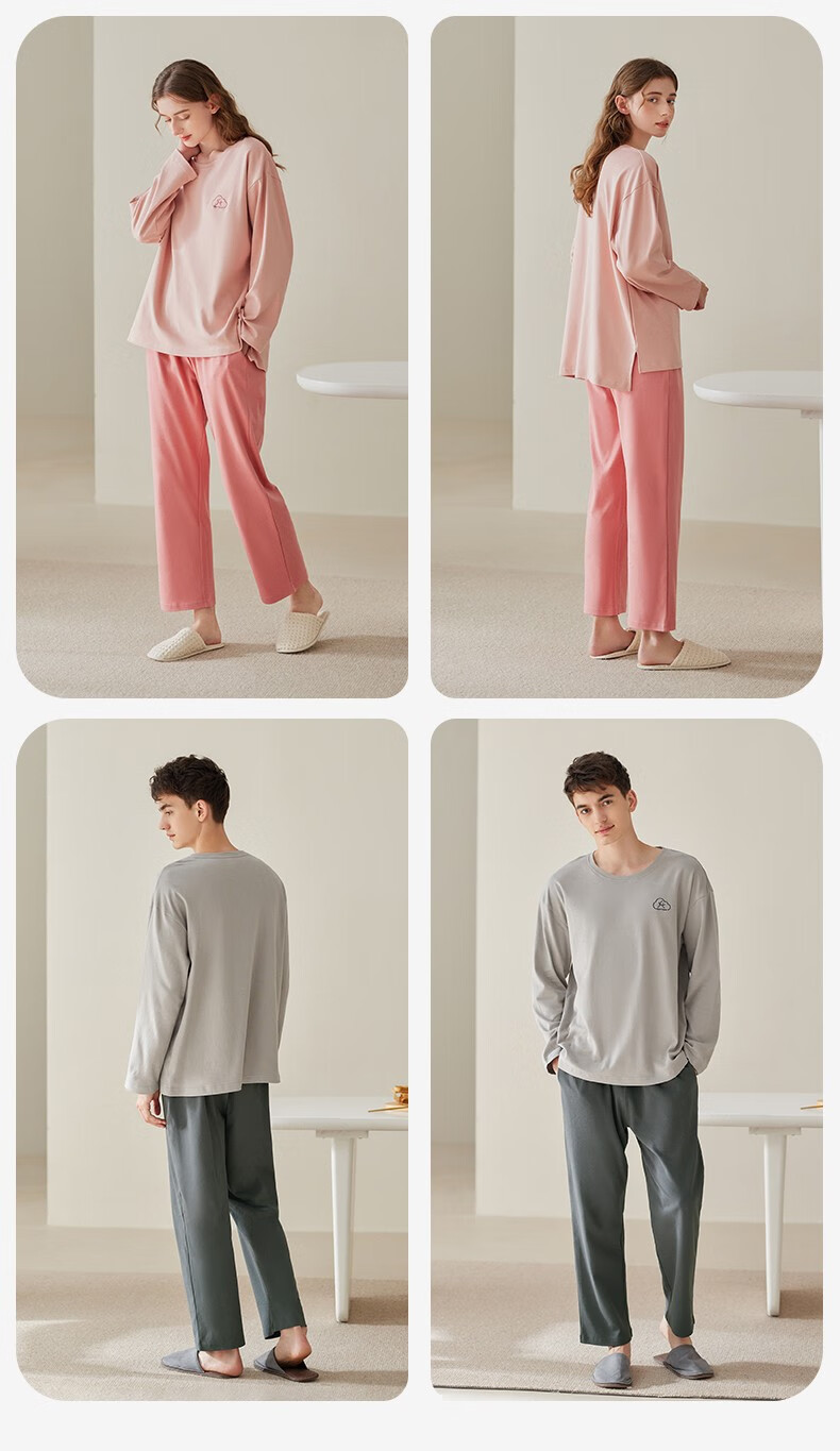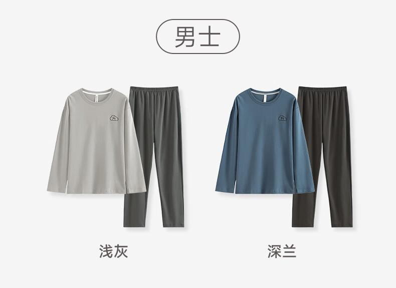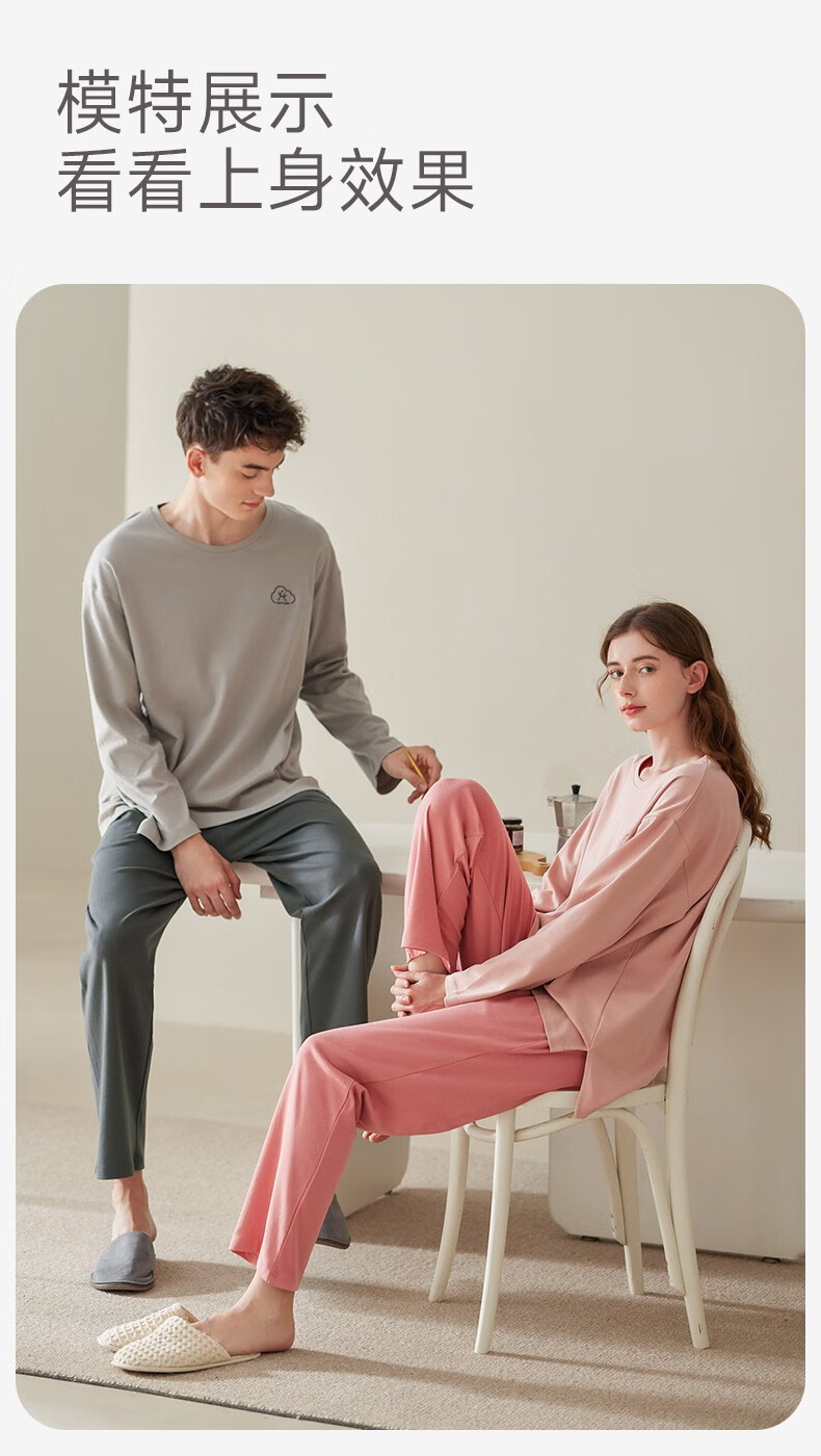 Fenton Couple Pajamas Women's Autumn Pure Cotton Spring and Autumn Men's Cotton Large Size Home Clothes Light Gray (Male) XL Recommendation Female 125-145, Male 140-165 Jin Jin equals 0.5 kg