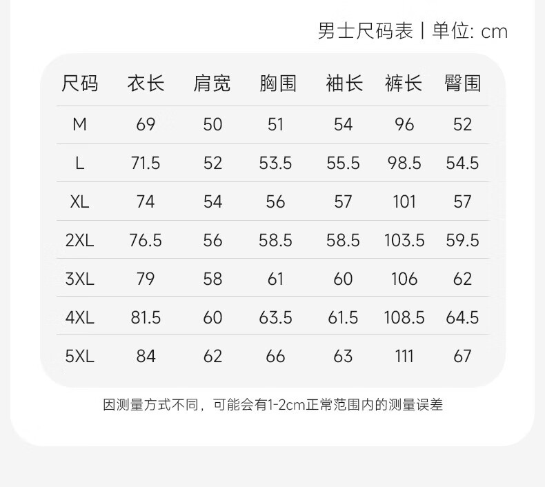 Outseam (cm) 99 cm 101.5 cm 104 cm 106.5 cm 109 cm