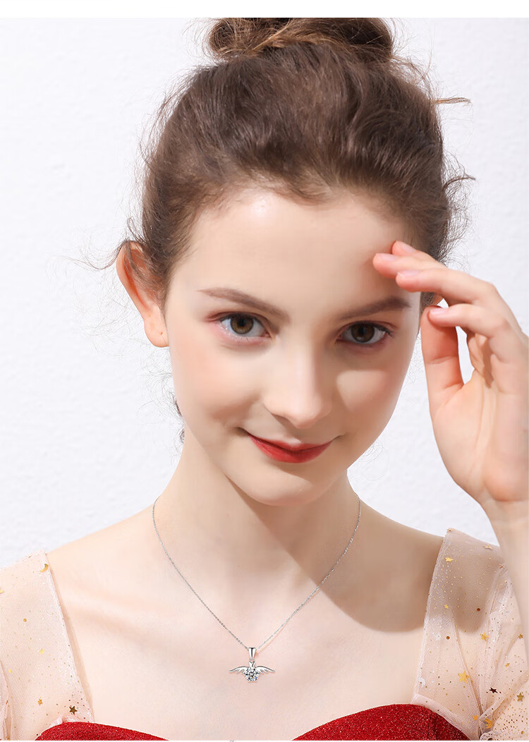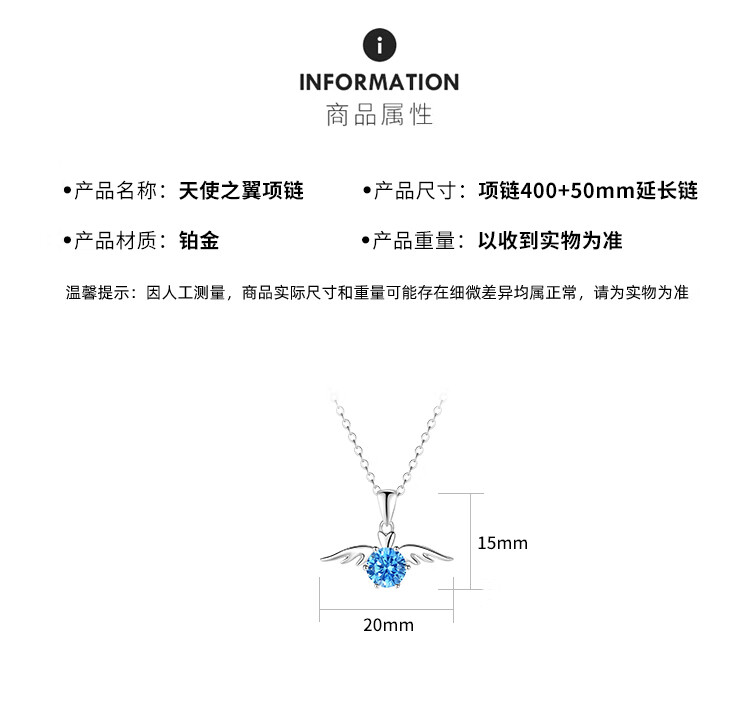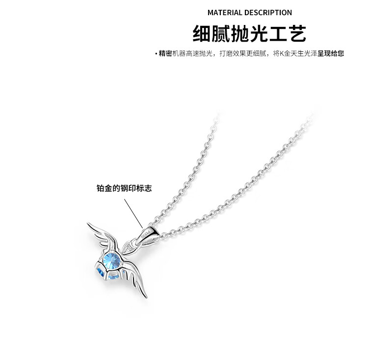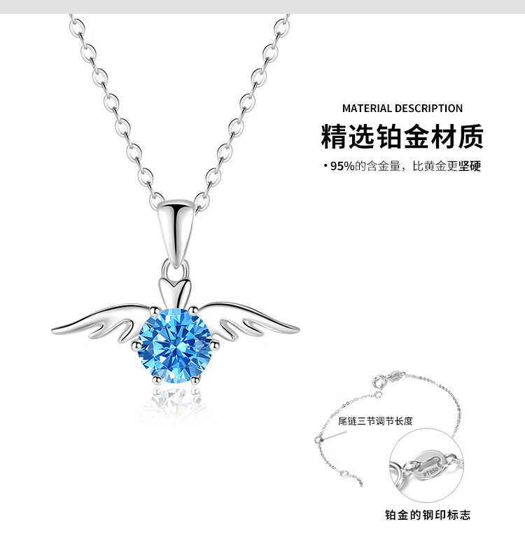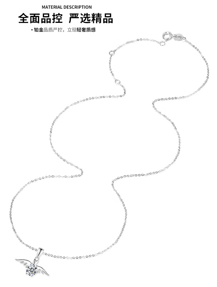 Jingzi Platinum Necklace Angel Wings Pendant Short Clavicle Chain PT950 Platinum Jewelry as a Birthday Gift for Girlfriend and Wife Temperament Accessory PT950 Platinum Necklace White Diamond