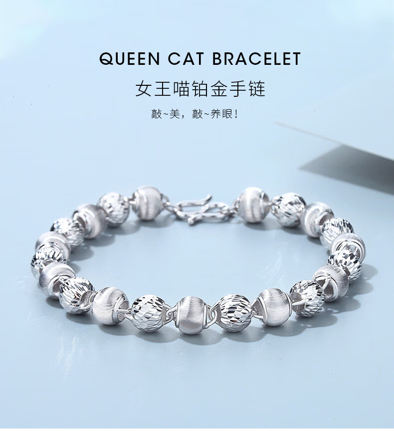 Aido diamond platinum shiny cat's eye bracelet for women pt950 platinum round beads hand jewelry gift for wife, weight 5.50g, length 16cm, thickness about 4mm