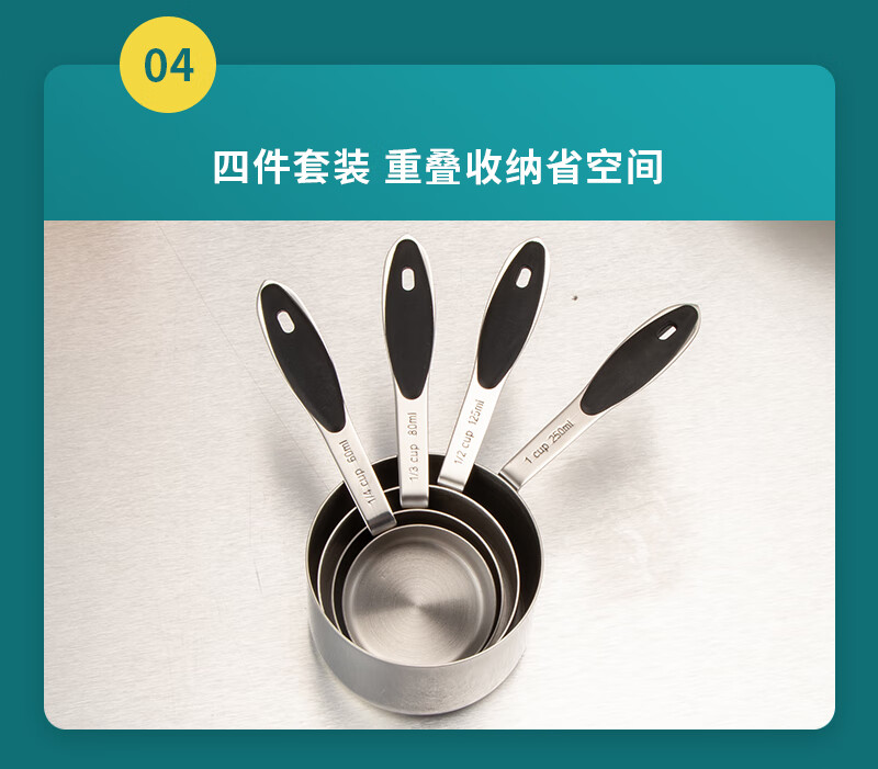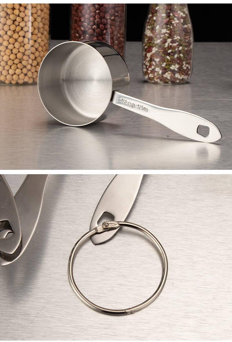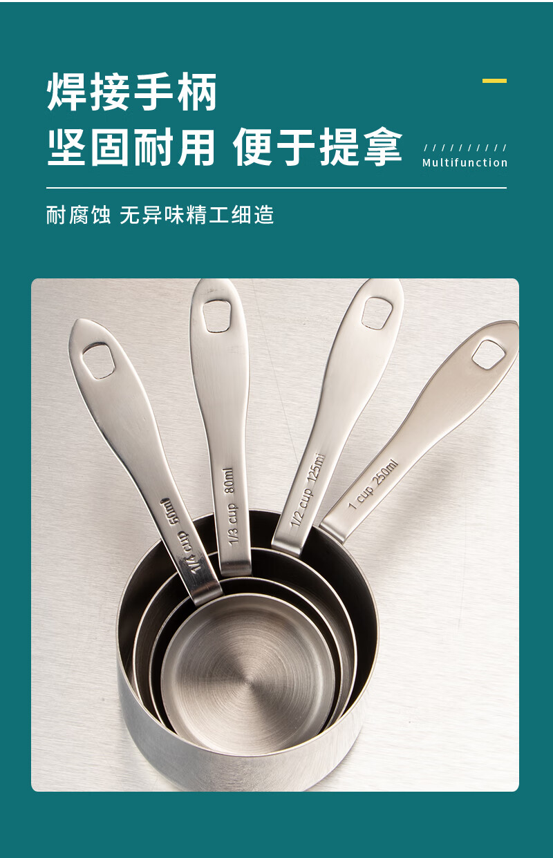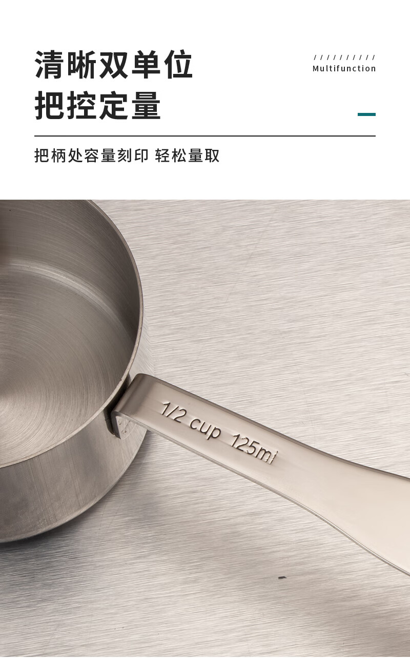 DELE stainless steel thickened measuring cup measuring spoon 4-piece set coffee dessert sugar water heating measuring cup can be directly heated baking quantitative tools all steel natural color 4-piece set