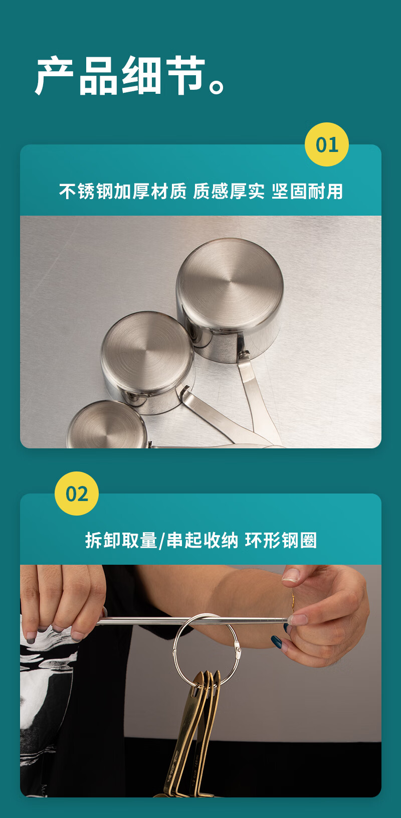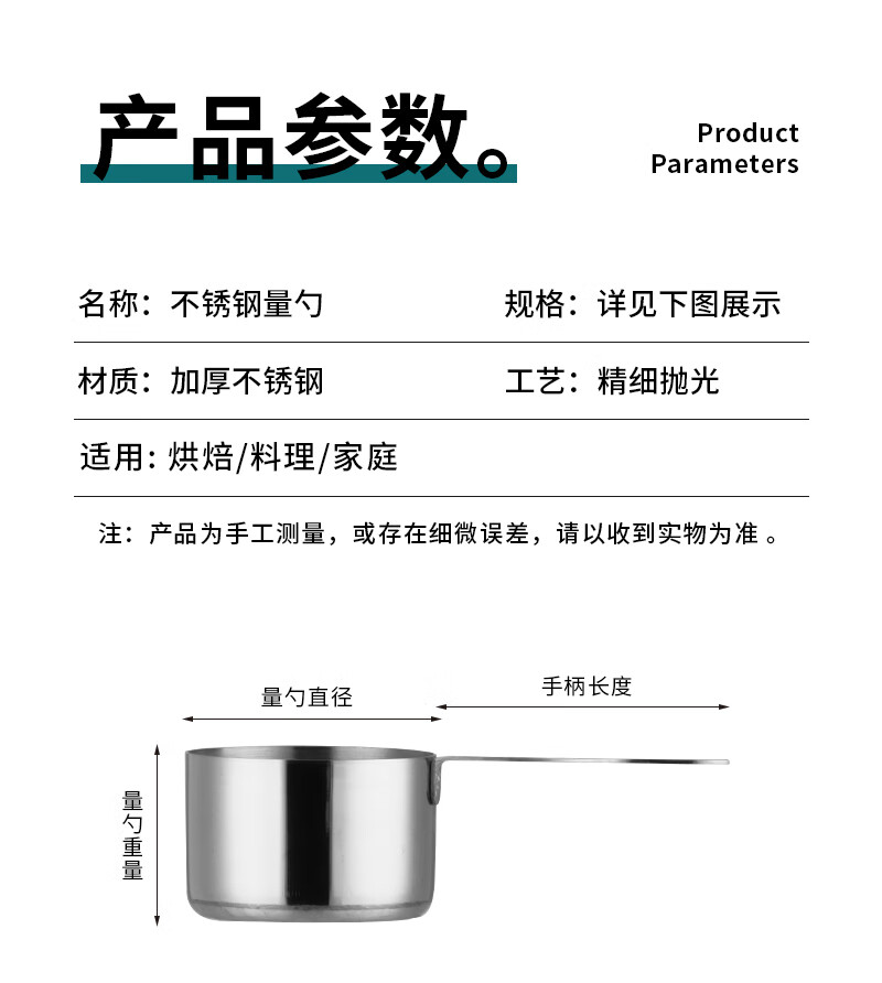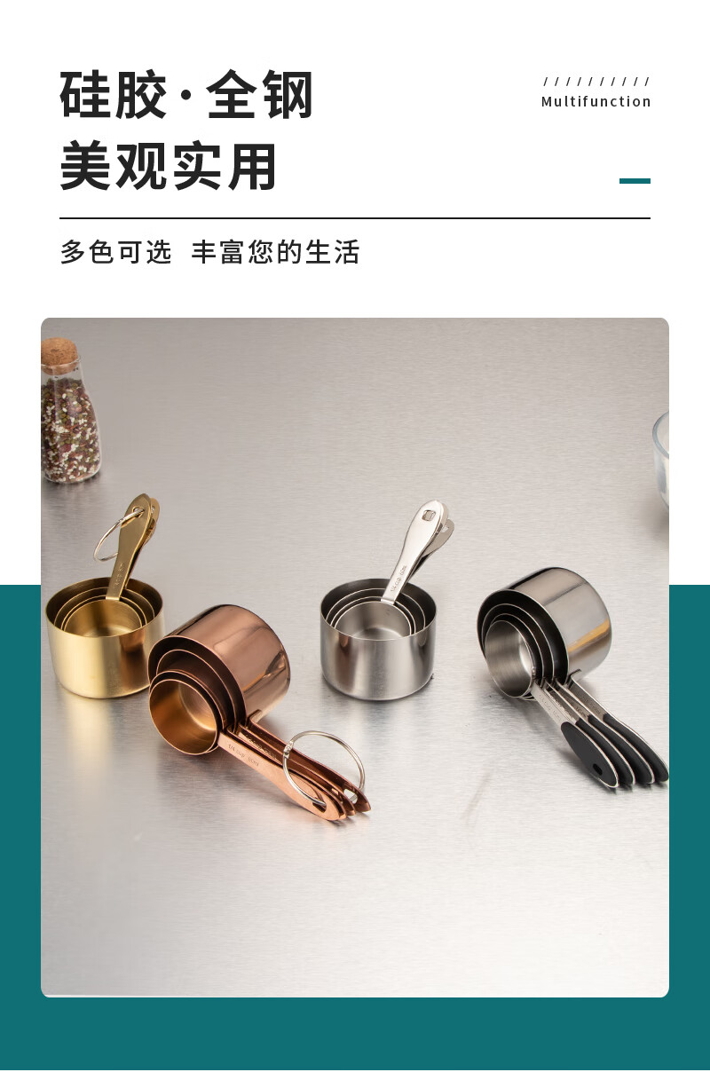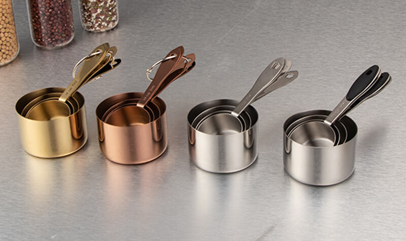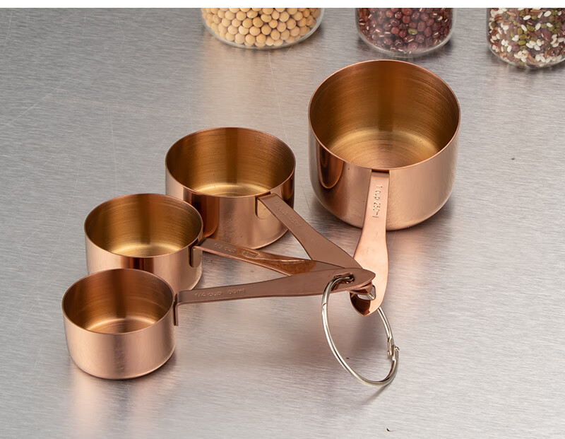 DELE stainless steel thickened measuring cup measuring spoon 4-piece set coffee dessert sugar water heating measuring cup can be directly heated baking quantitative tools all steel natural color 4-piece set