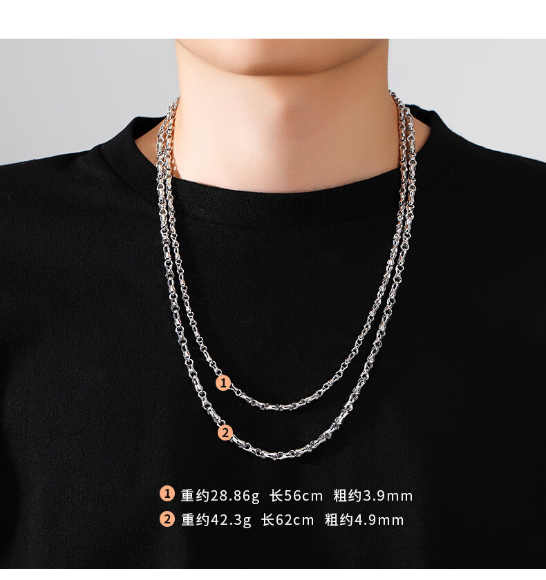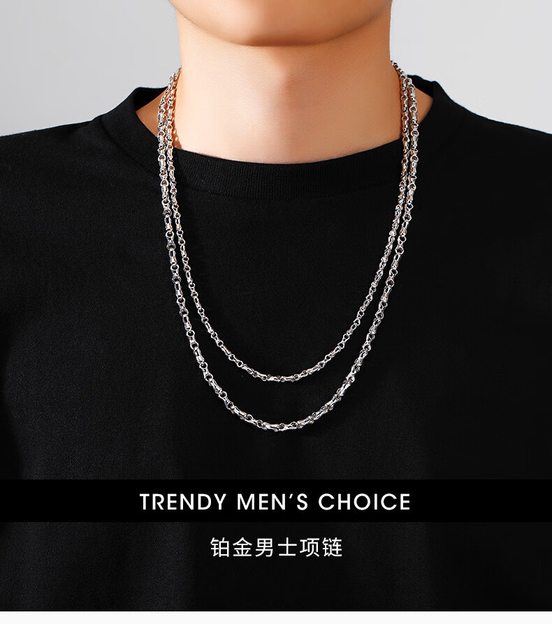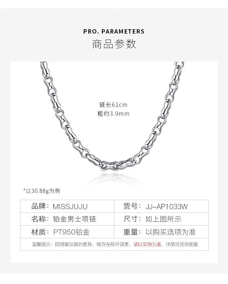 Miss JuJu platinum necklace men's pt950 platinum 8-character chain is atmospheric and strong boss chain, weight 31-33g, about 60cm, 4mm thick (customized)