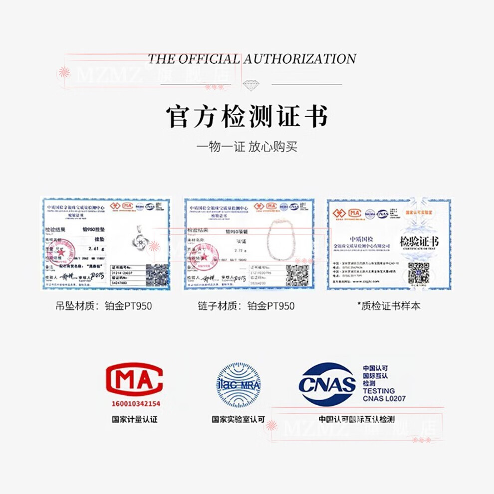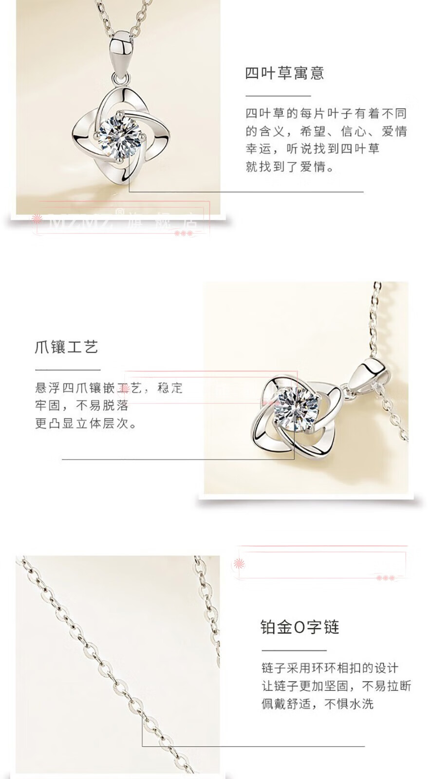 MZMZ four-leaf clover platinum necklace for women PT950 platinum moissanite pendant fashion clavicle chain birthday gift for girlfriend platinum flash O chain + D color flawless moissanite