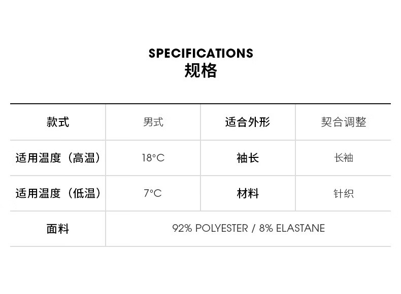 China (cm) 165 / 88-90 170 / 96-98 175 / 108-110 180 / 118-122 185 / 126-130