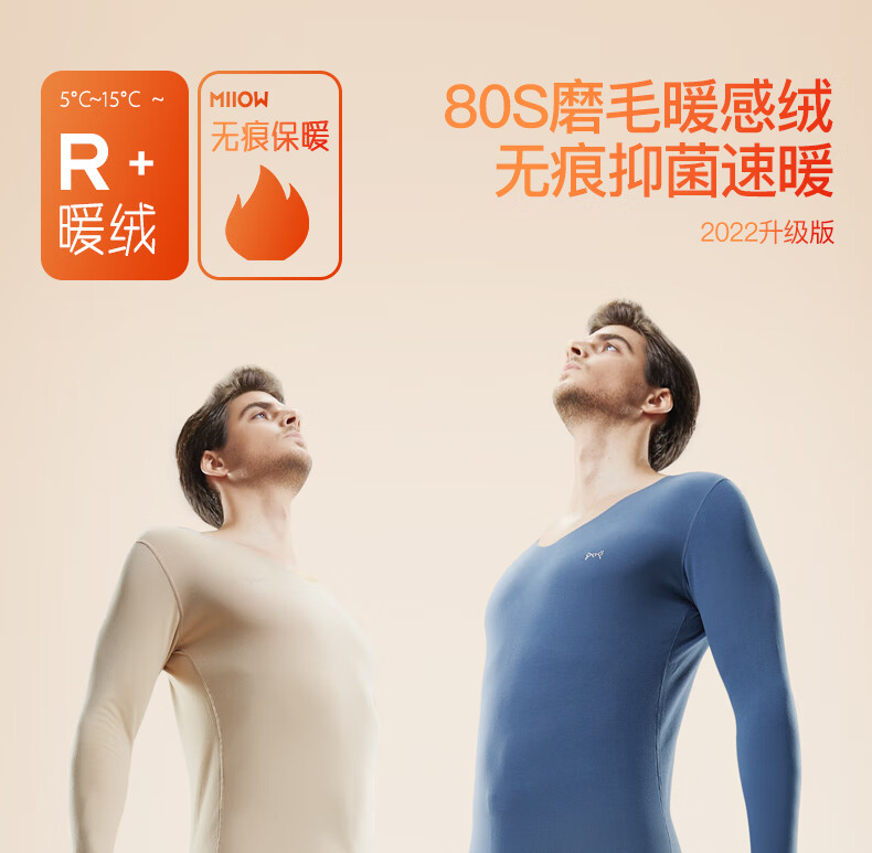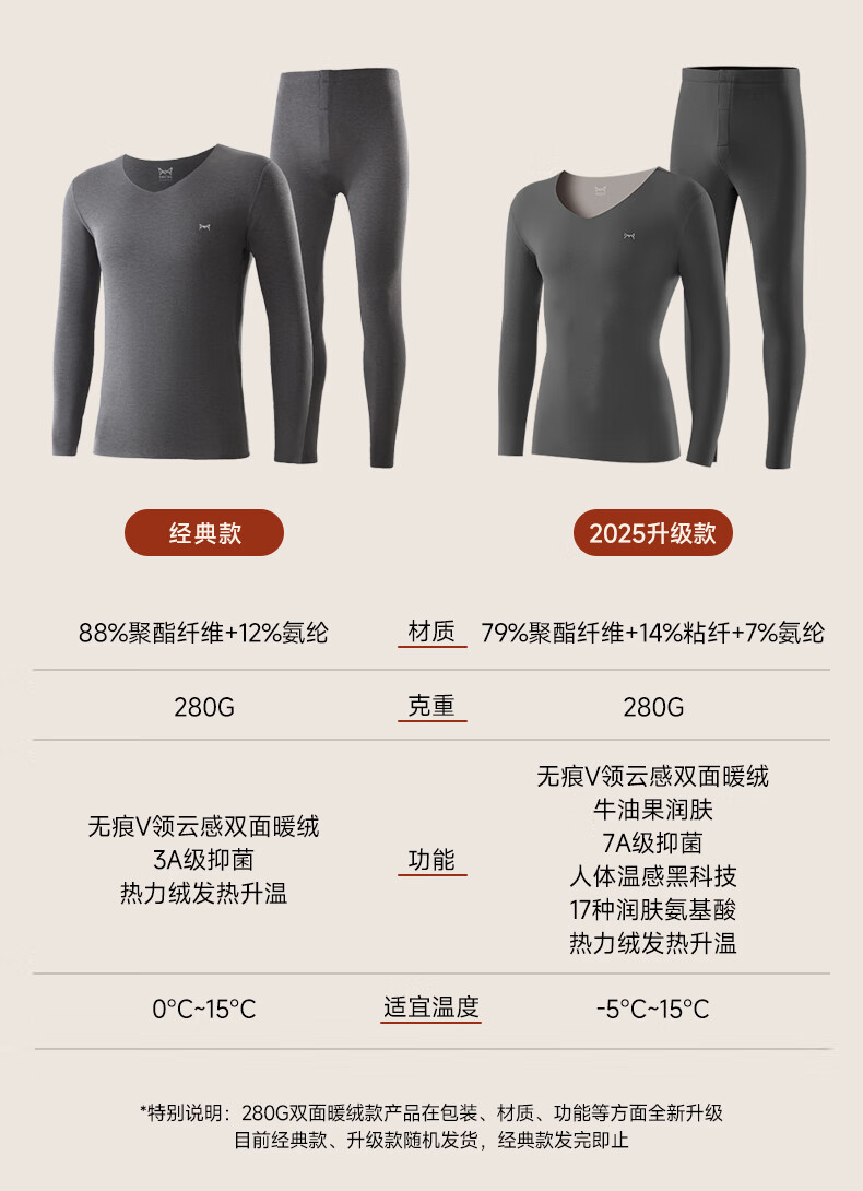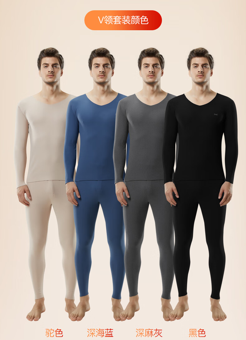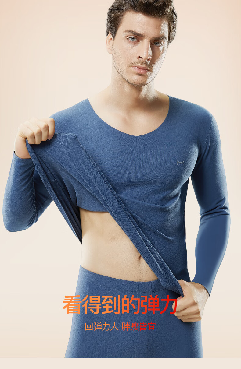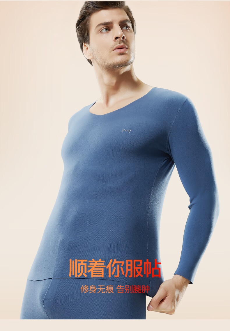 猫人保暖内衣男士无痕抑菌薄款德绒发热秋衣秋裤套装男冬季 【280g无痕热暖绒】深麻灰 2XL 【建议重140-160斤】