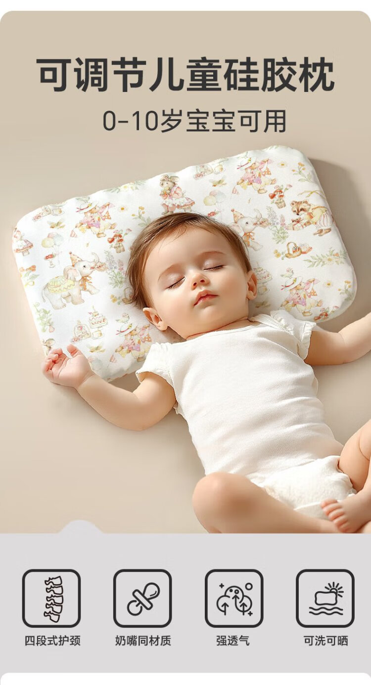 Shell Diary Children's Pillow 0-6 Months and Over 1-3-6 Years Old Baby Pillow Pure Cotton Four Seasons Silicone Pillow 6 Months-3 Years Old Happy Party