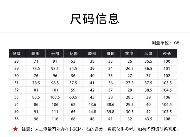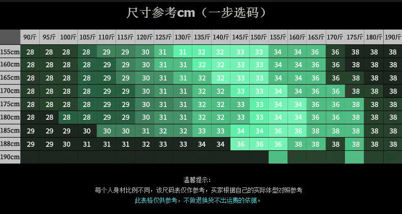 USA(inch) 28-30 30-32 32-34 34-38 38-42