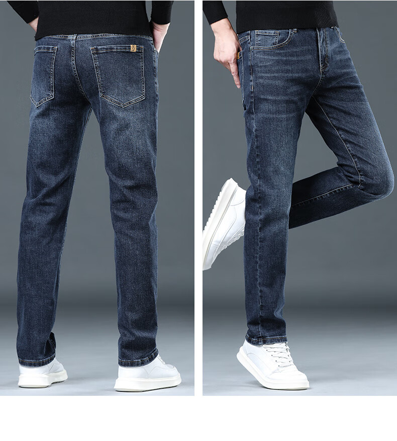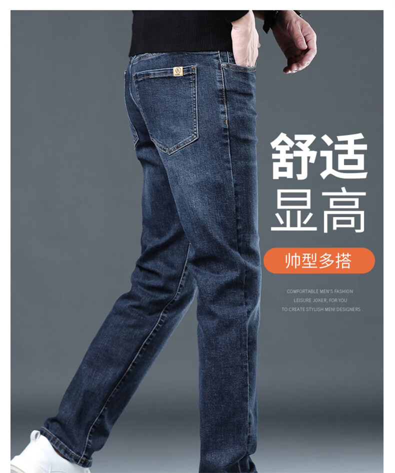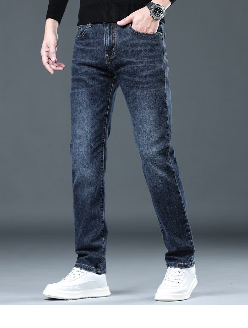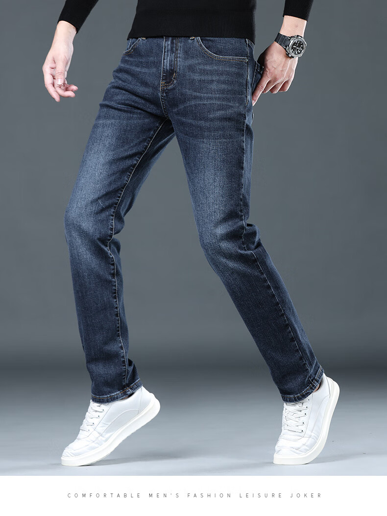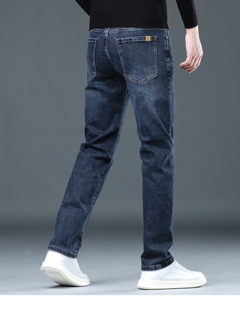 CANELIN KISKHA high-quality jeans for men in spring and autumn slim straight black men's pants stretch plus velvet men's casual long pants men 2049 blue regular size 36