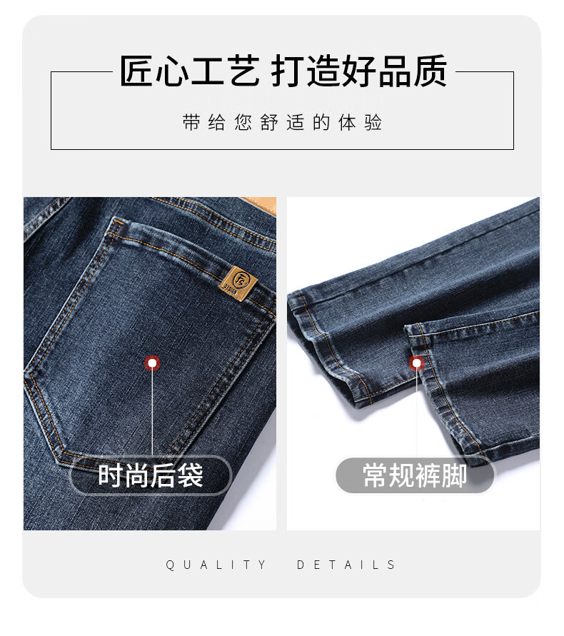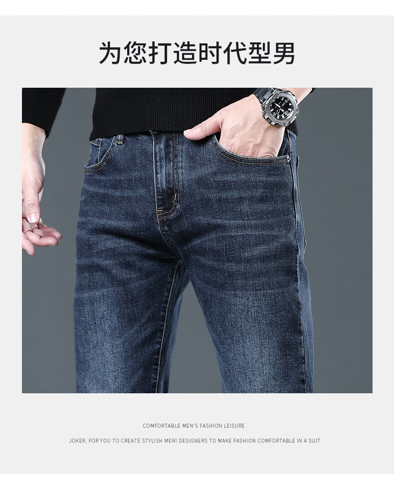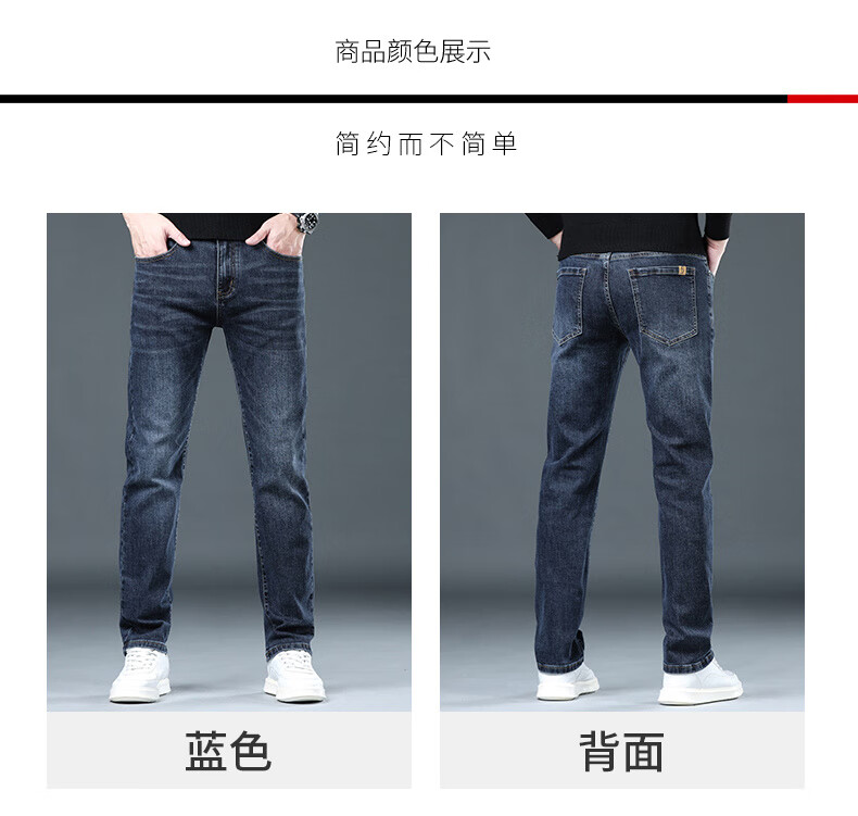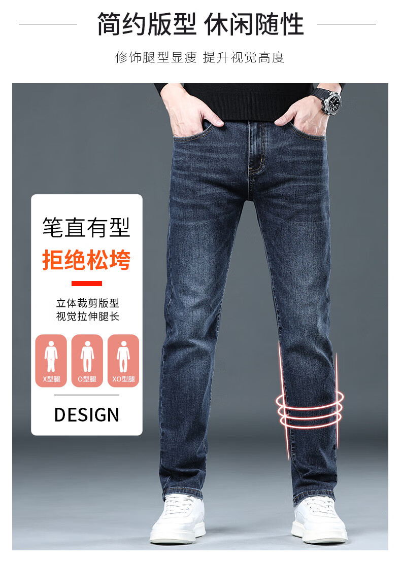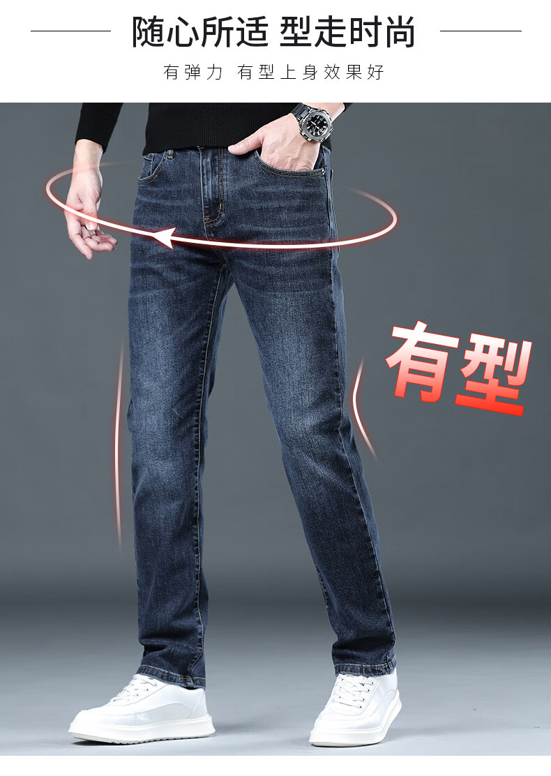 CANELIN KISKHA high-quality jeans for men in spring and autumn slim straight black men's pants stretch plus velvet men's casual long pants men 2049 blue regular size 36