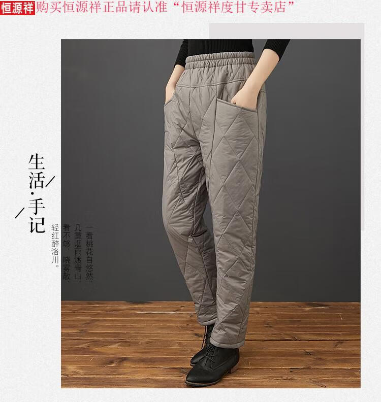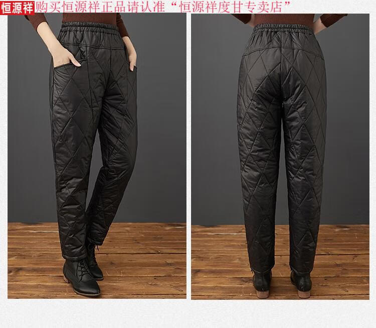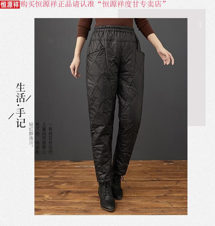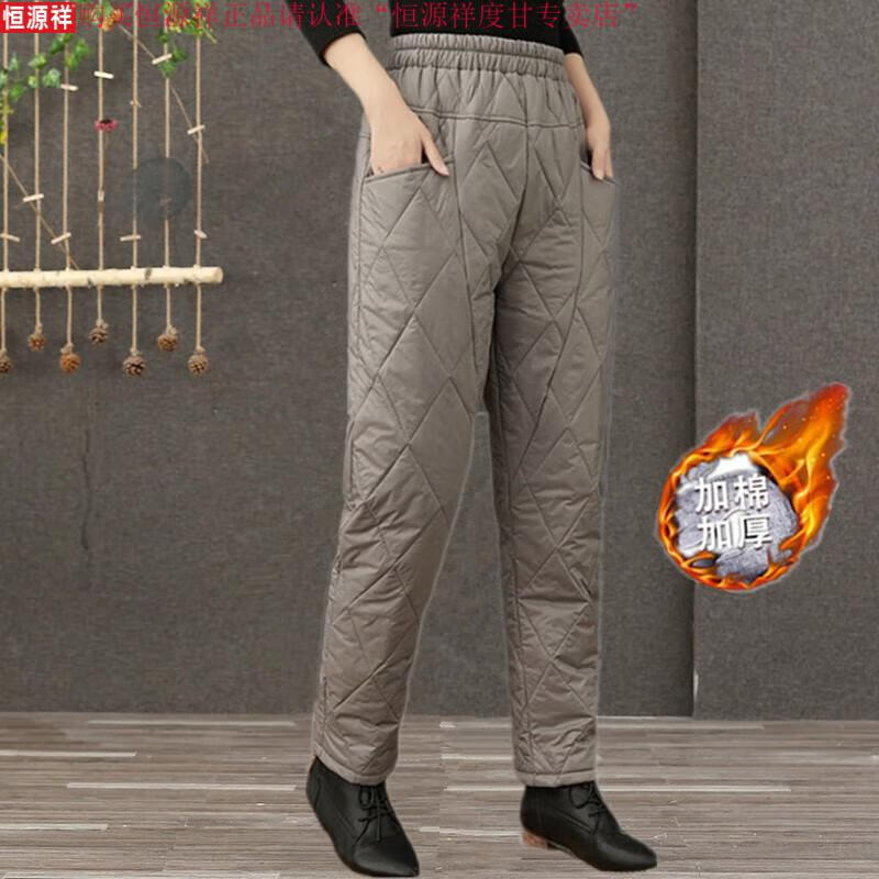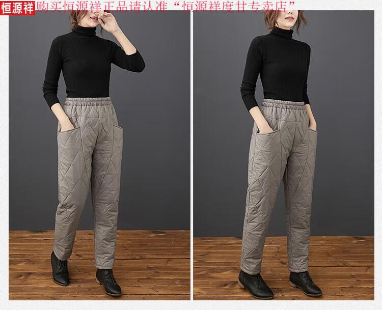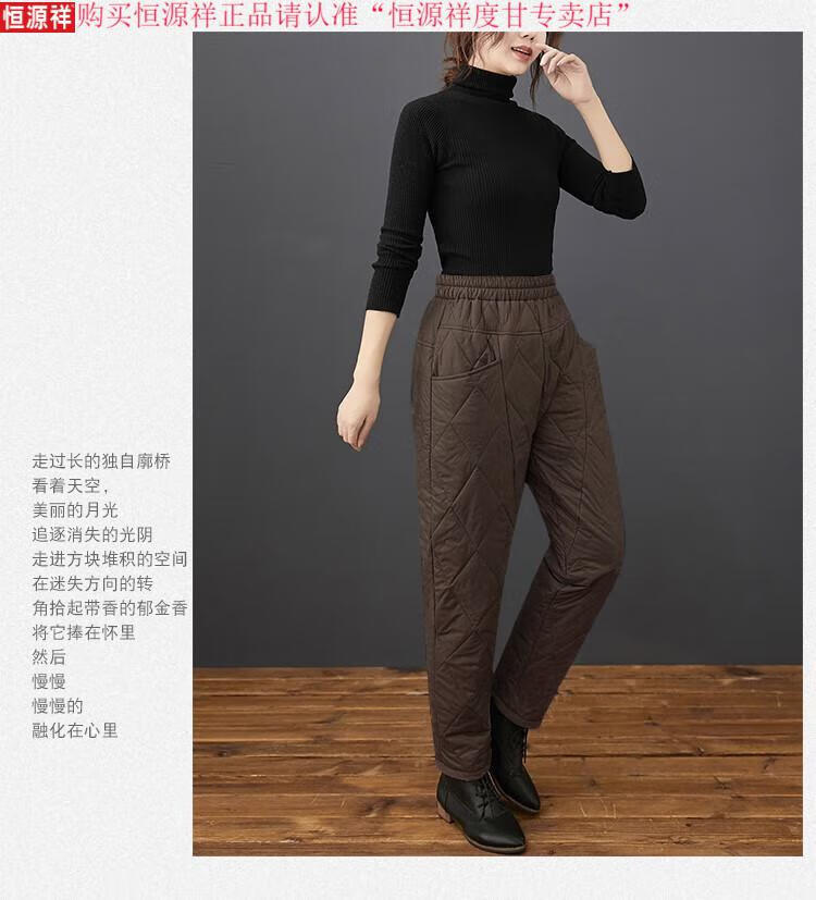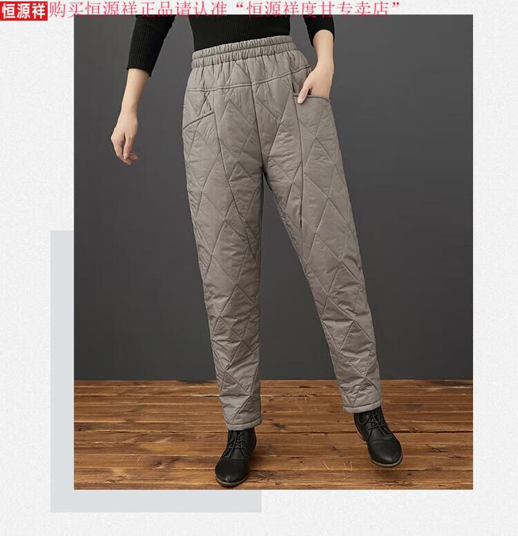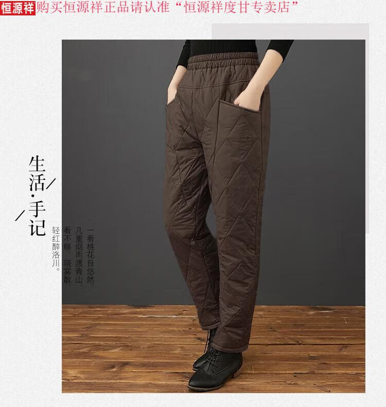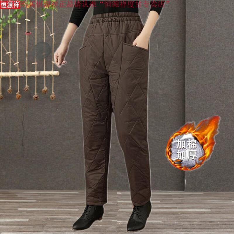 Hengyuanxiang's new winter new lightweight quilted down cotton pants for women to wear high-waisted slim warm pants rhombus pattern small leg trousers brown XL recommended 130-150Jin Jin equals 0.5 kg