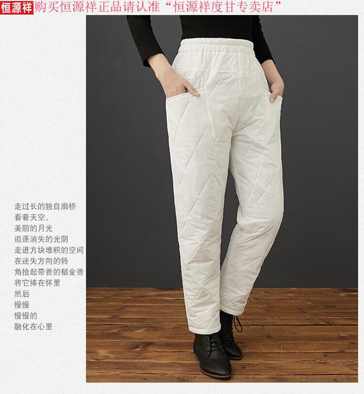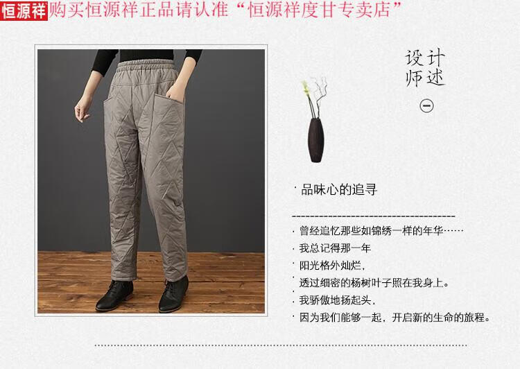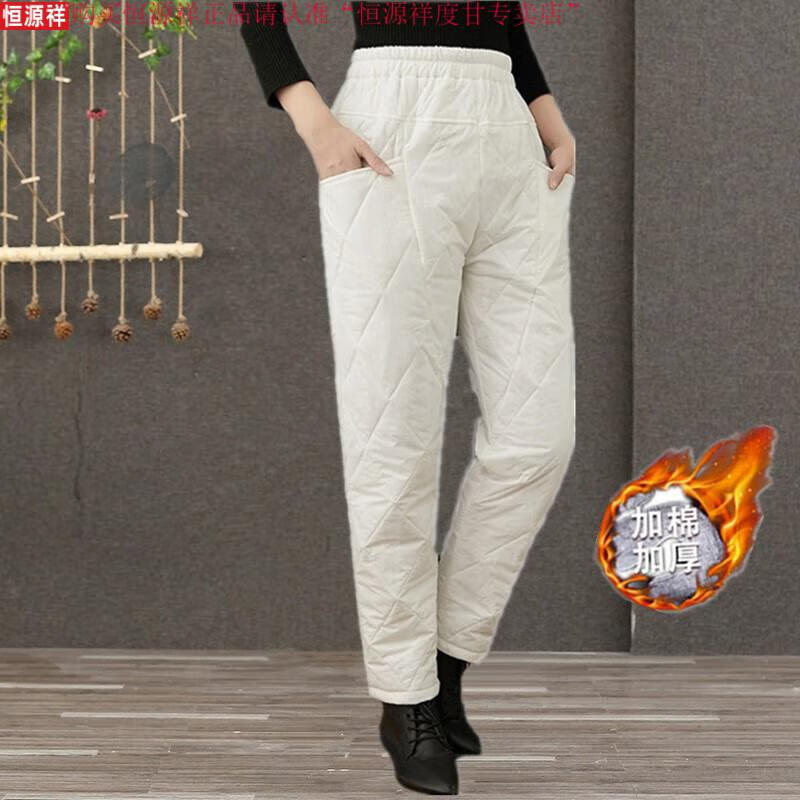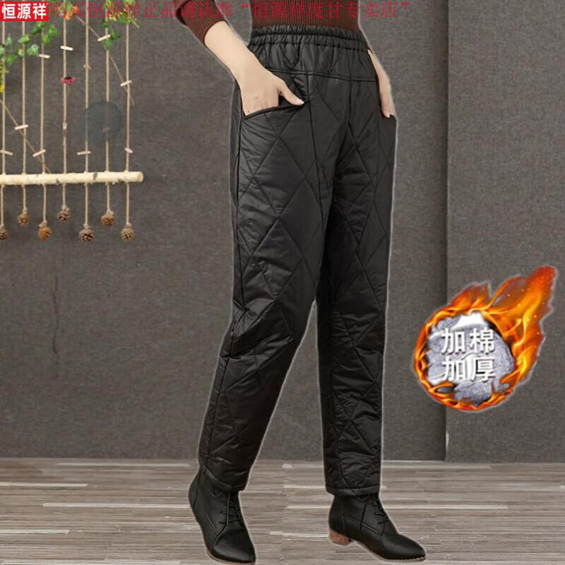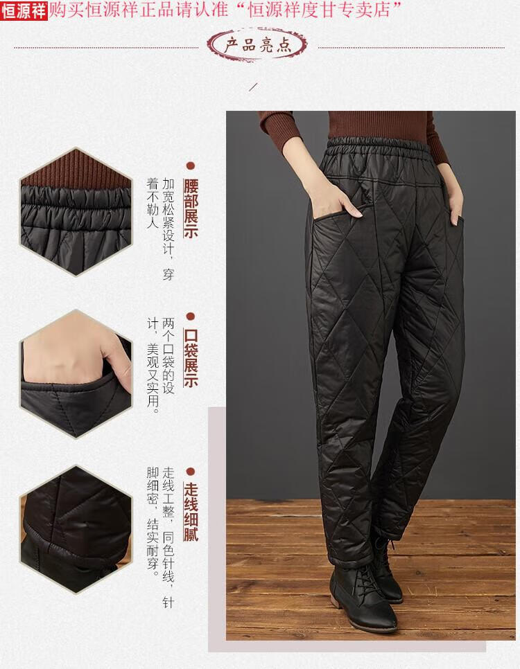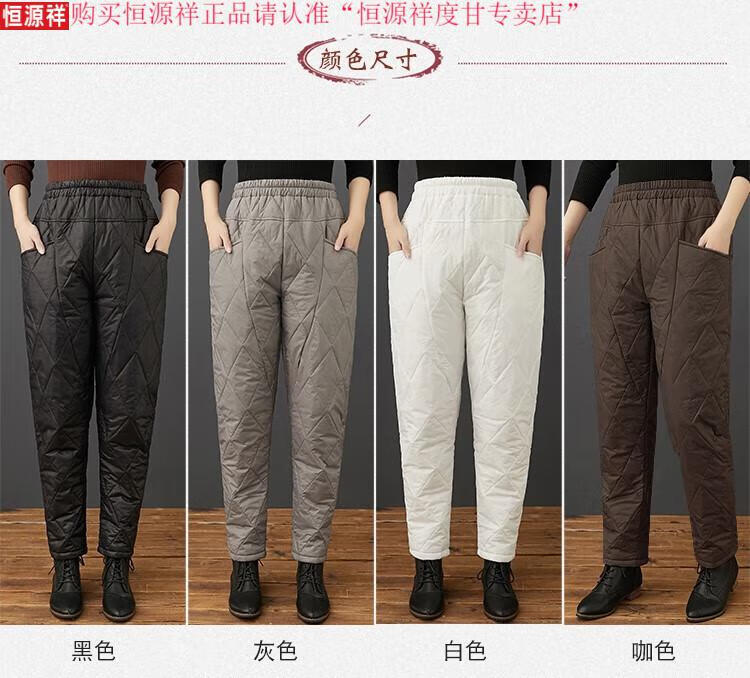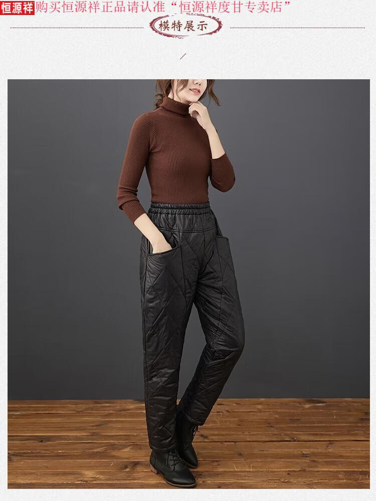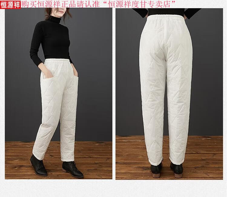 Hengyuanxiang's new winter new lightweight quilted down cotton pants for women to wear high-waisted slim warm pants rhombus pattern small leg trousers brown XL recommended 130-150Jin Jin equals 0.5 kg