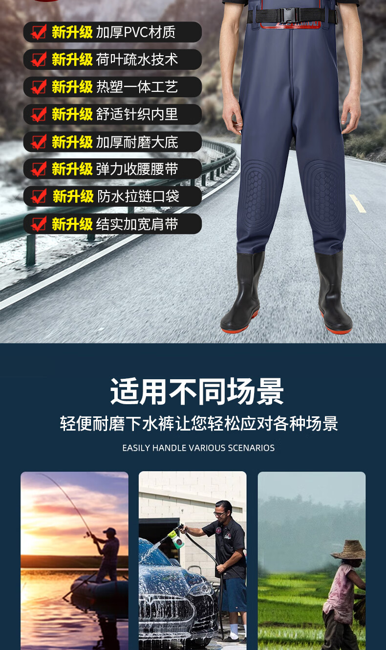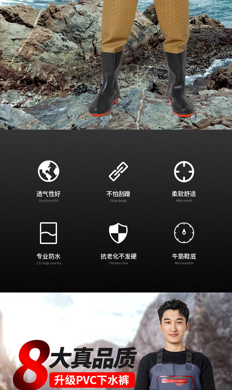 Qizhonglang fishing suit waterproof pants waders rain pants with water shoes one-piece men's water jacket wear-resistant leather fork wading pants thickened suspender half pants green 100 silk 42