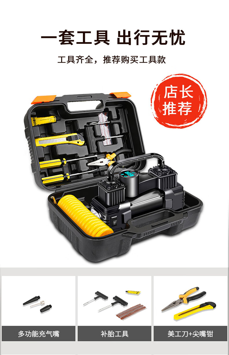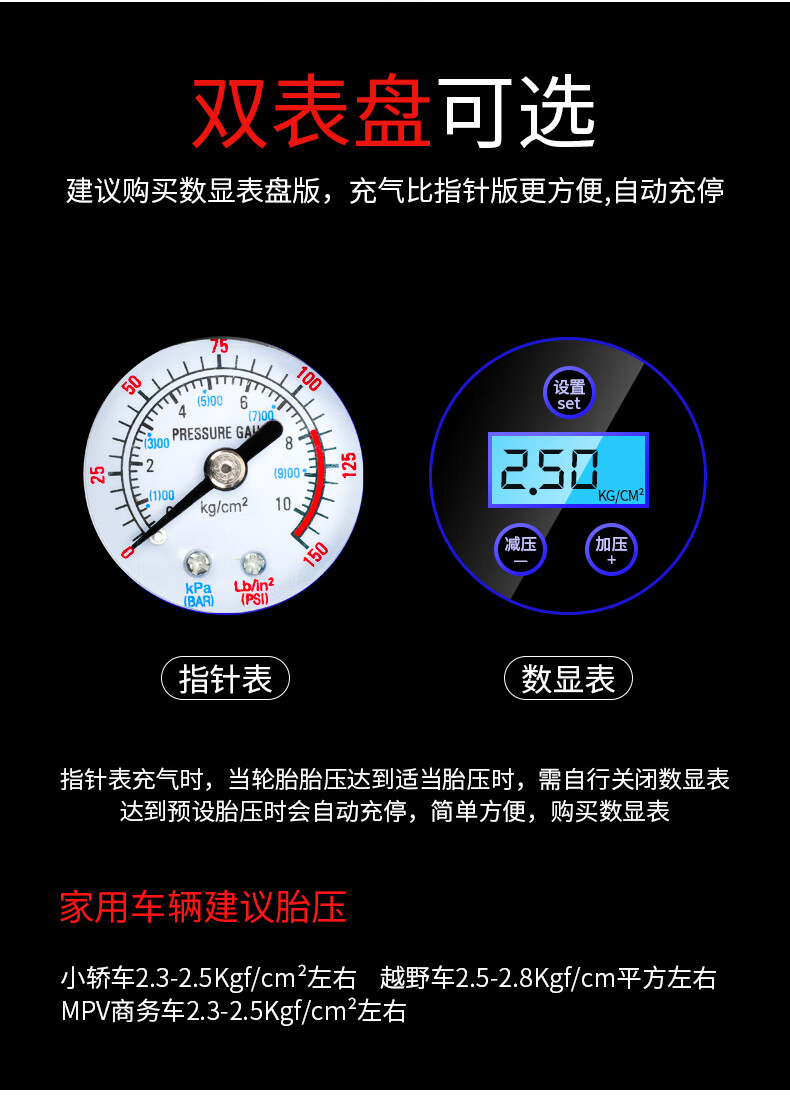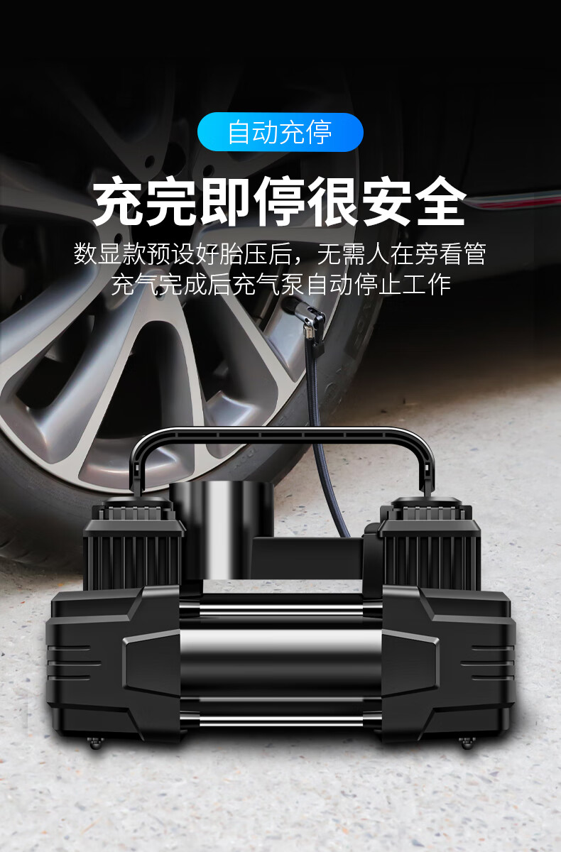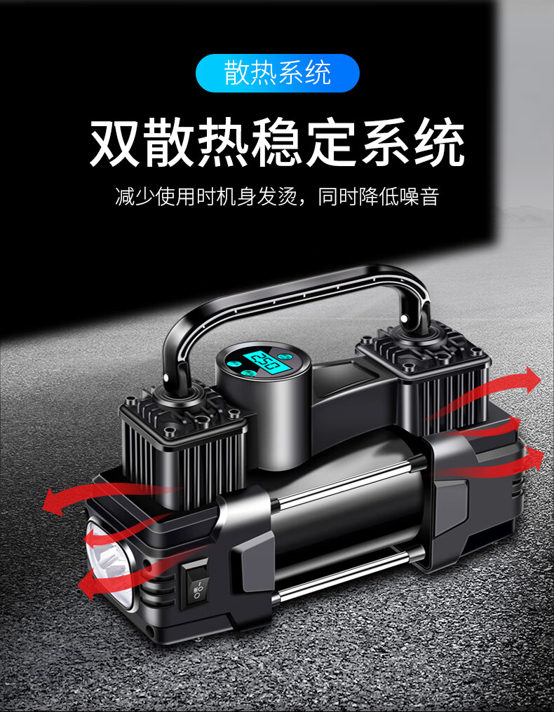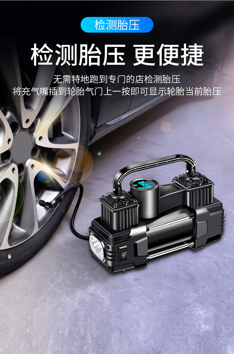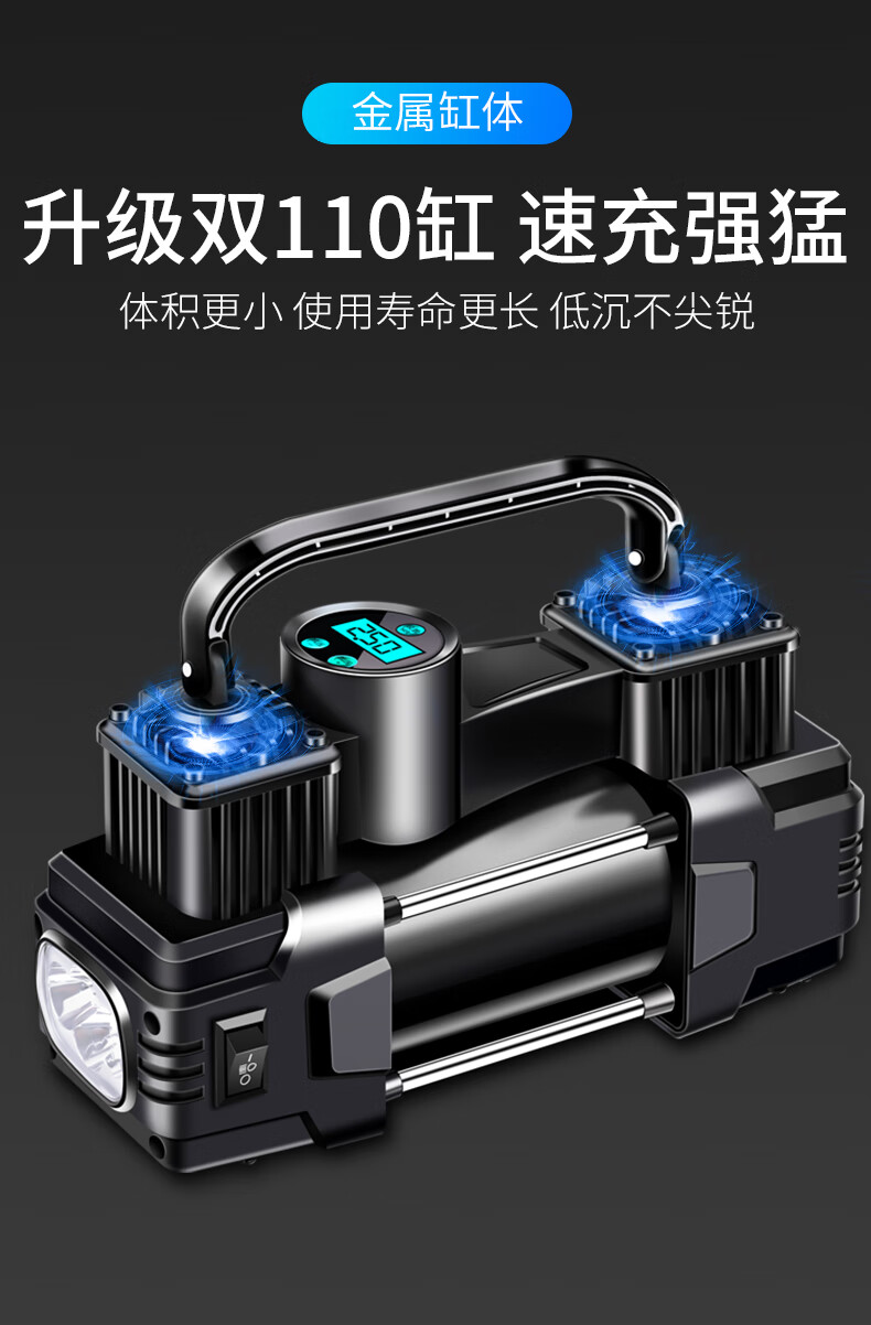 Single-cylinder car air pump, double-cylinder high-pressure portable car air pump, tire high-power 12V car air pump, true double-cylinder mechanical light-free fast inflation pointer table