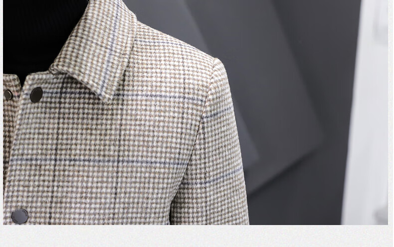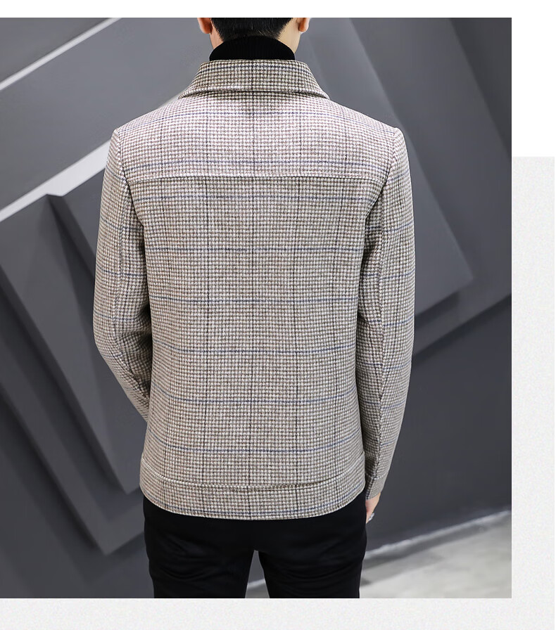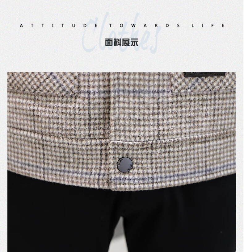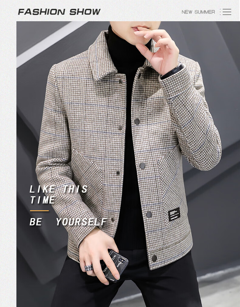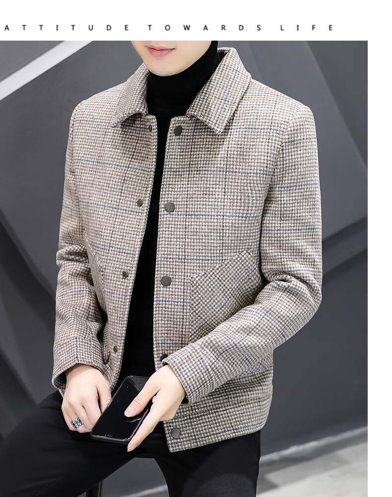 Lomon Plaid Lapel Jacket Men's Short Wool Woolen Jacket Plaid Autumn and Winter Thickened Youth New Jacket Men's 2903 Khaki XL 180 140160Jin Jin equals 0.5 kg