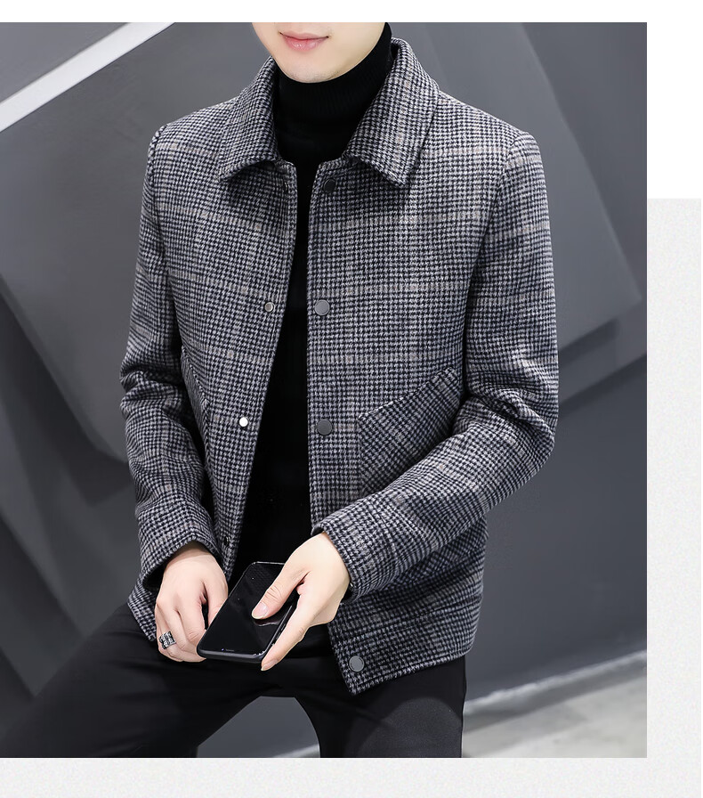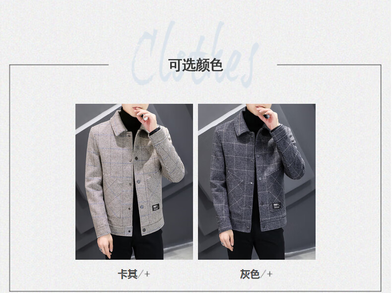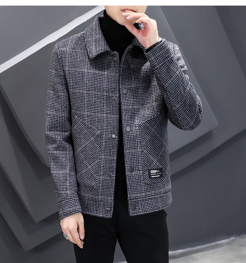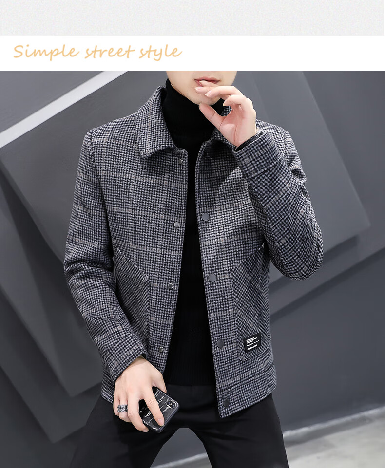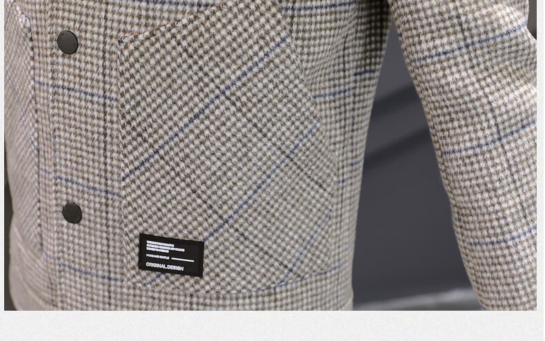 Lomon Plaid Lapel Jacket Men's Short Wool Woolen Jacket Plaid Autumn and Winter Thickened Youth New Jacket Men's 2903 Khaki XL 180 140160Jin Jin equals 0.5 kg