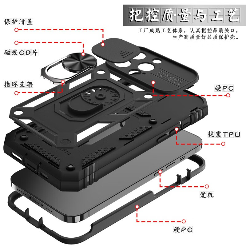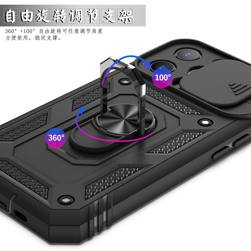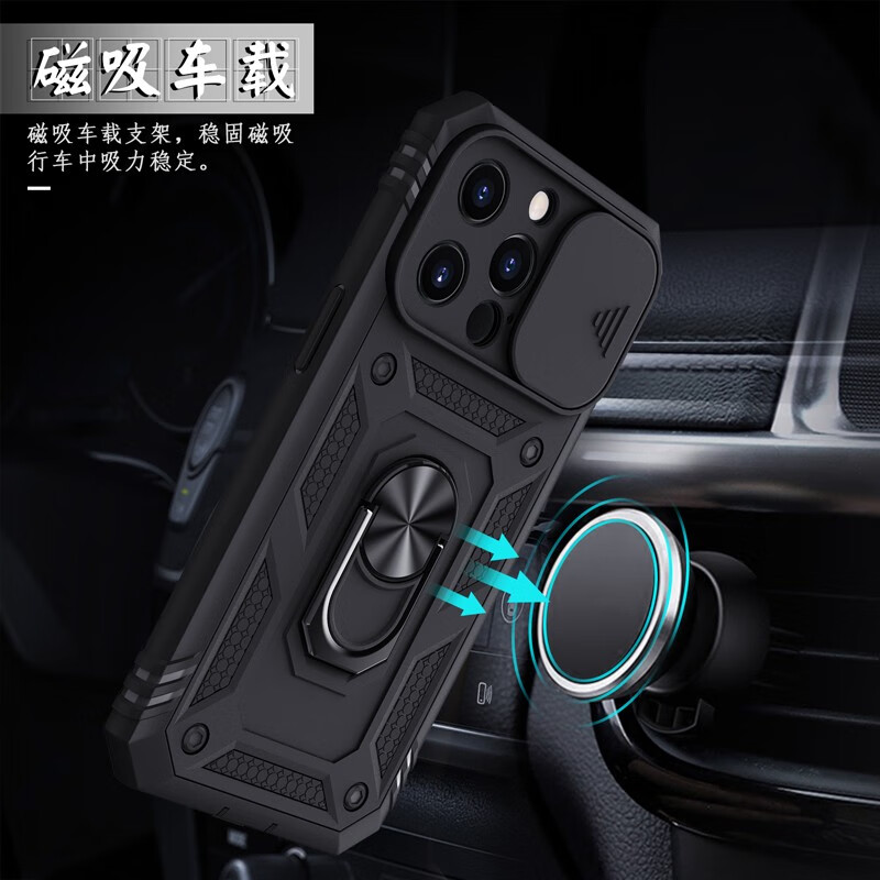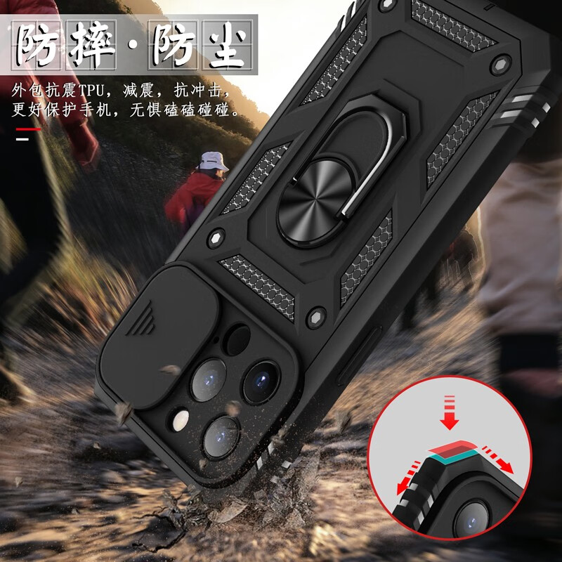 Rigorous, suitable for Apple 14Pro thickened high screen anti-fall mobile phone case iphone14promax comes with anti-dust plug and three-proof lens all-inclusive pure black 2-in-1 screen heighten anti-fall iPhone14 Pro Max