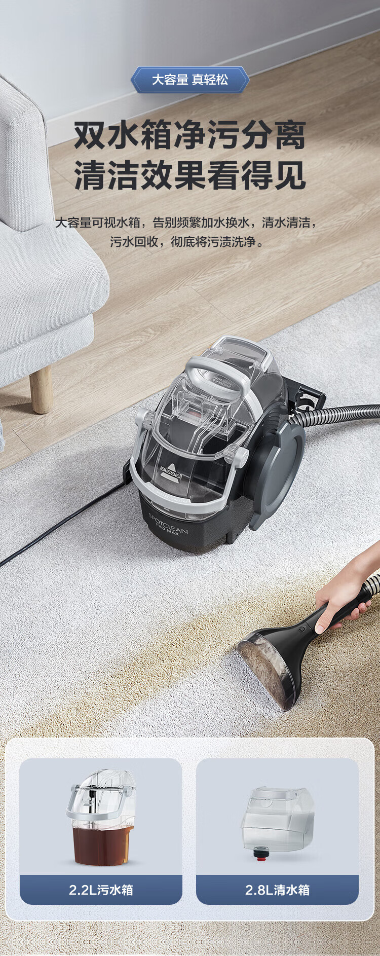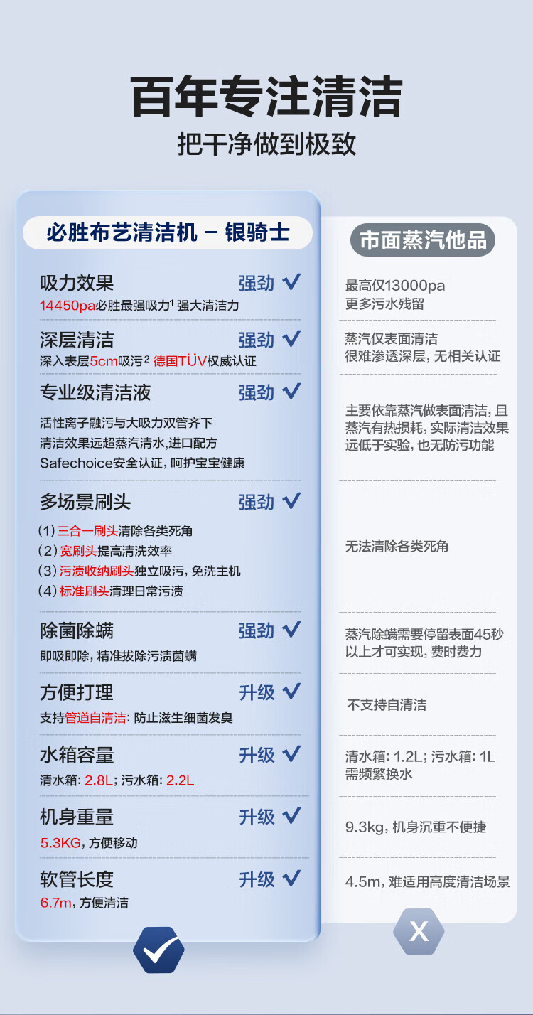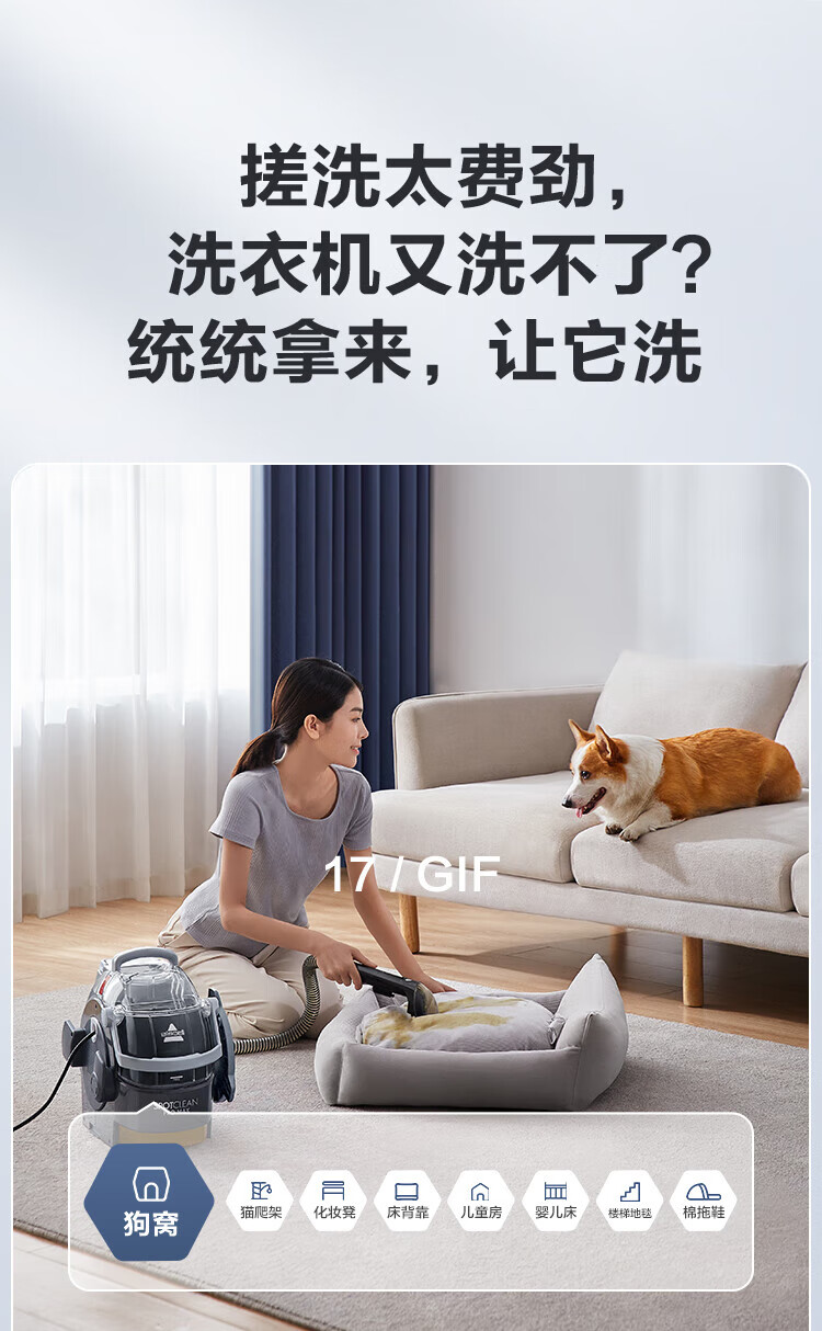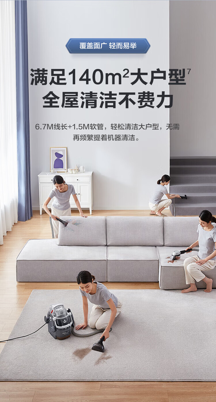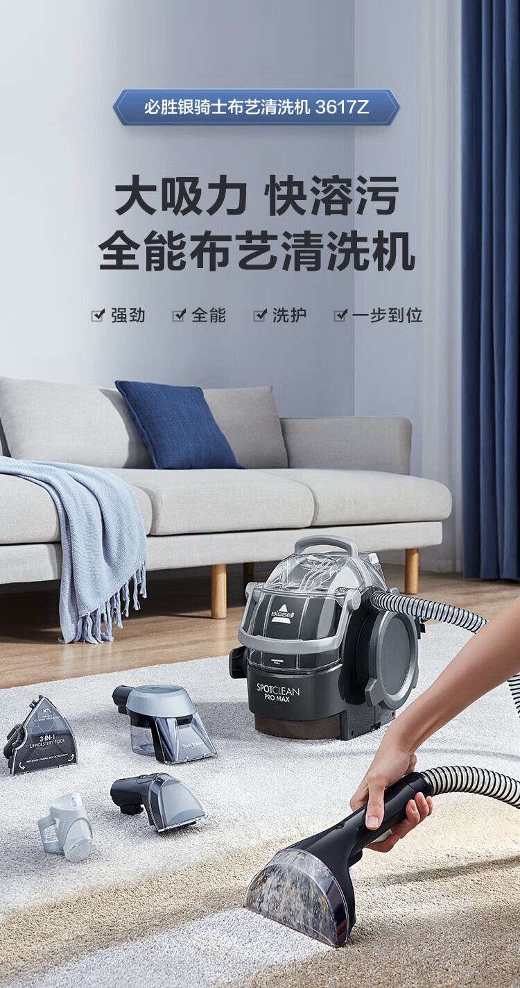 BISSELL fabric sofa cleaning machine Silver Knight household spray and suction integrated sterilization and mite removal carpet cleaning machine mattress curtain car cleaning artifact 3617Z Silver Knight-3617Z 4 types of brush heads + self-cleaning accessories