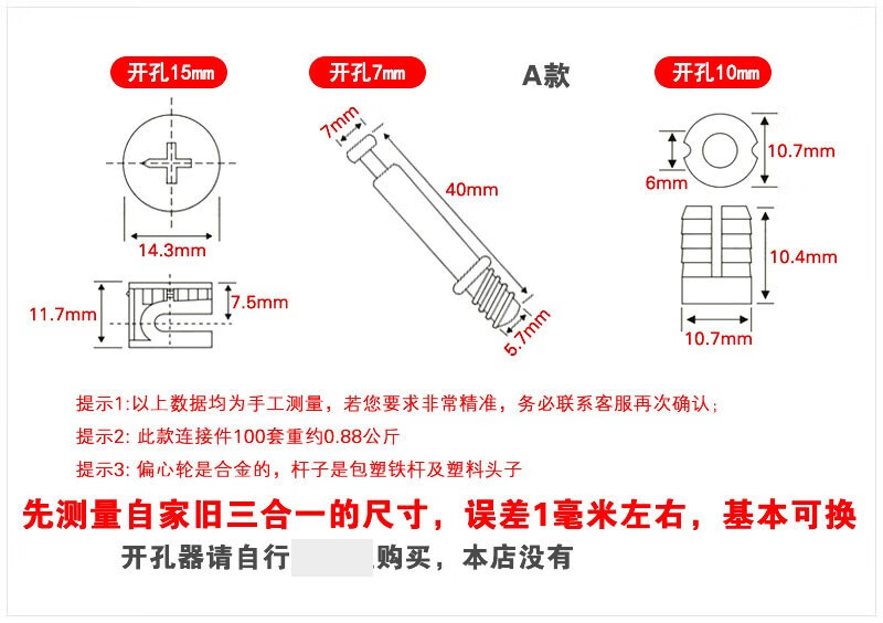 Weiwang eccentric wheel panel furniture assembly three-in-one eccentric wheel + plastic rod + rubber granule connection cabinet bed fastener screws (10 sets) three-in-one connector