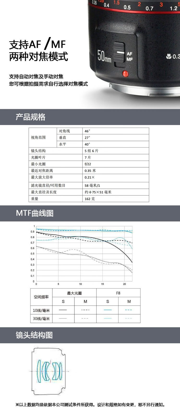 Yongnuo (YONGNUO) YN50mm F1.8 large aperture autofocus lens SLR lens 50 F1.8 Canon EF mount second generation black standard