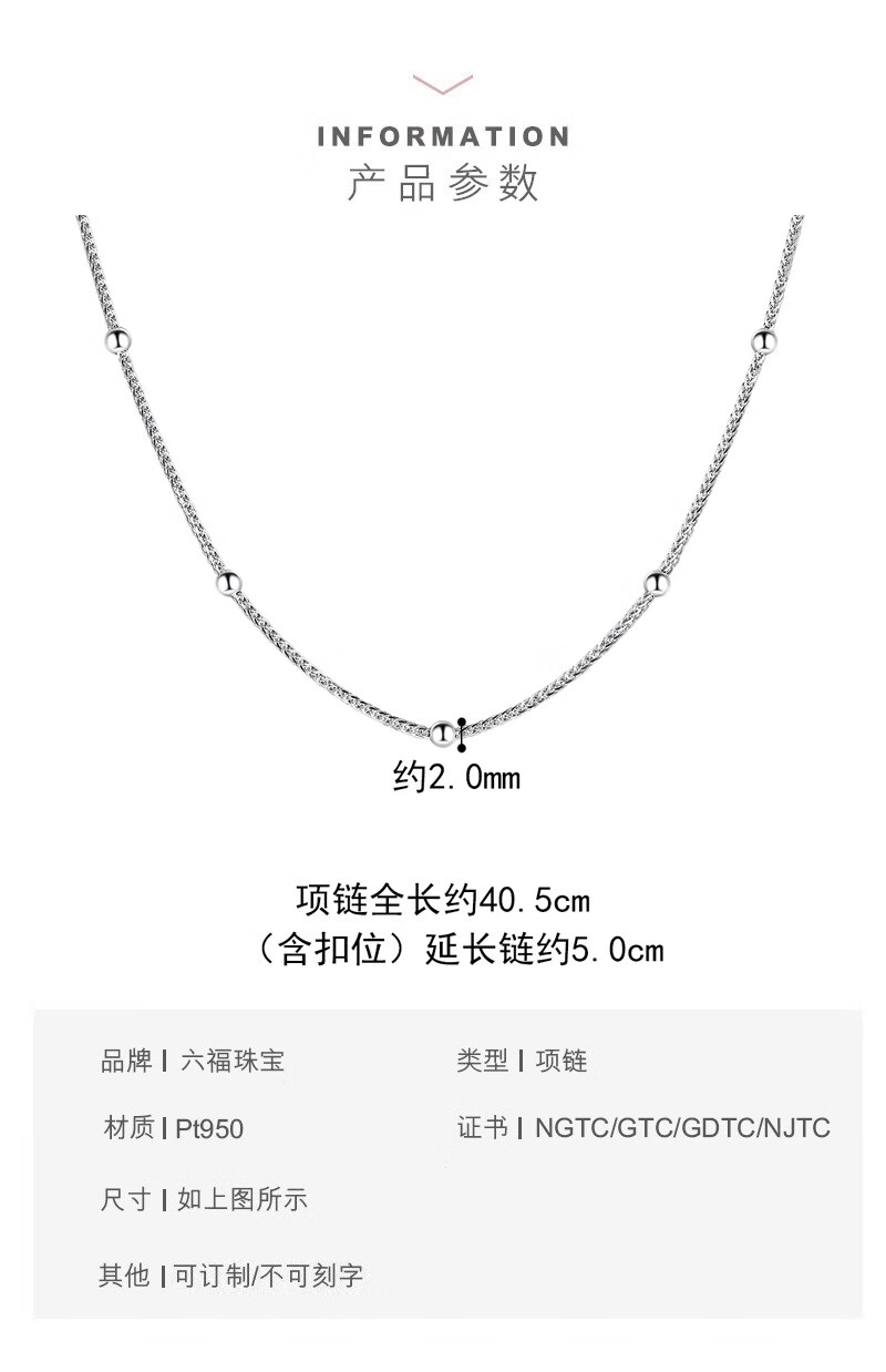 Lukfook Jewelry Platinum 950 Ball Chopard Chain Platinum Necklace Plain Chain Gift Price F63TBPN0010 2.90g (including labor cost 310 yuan)