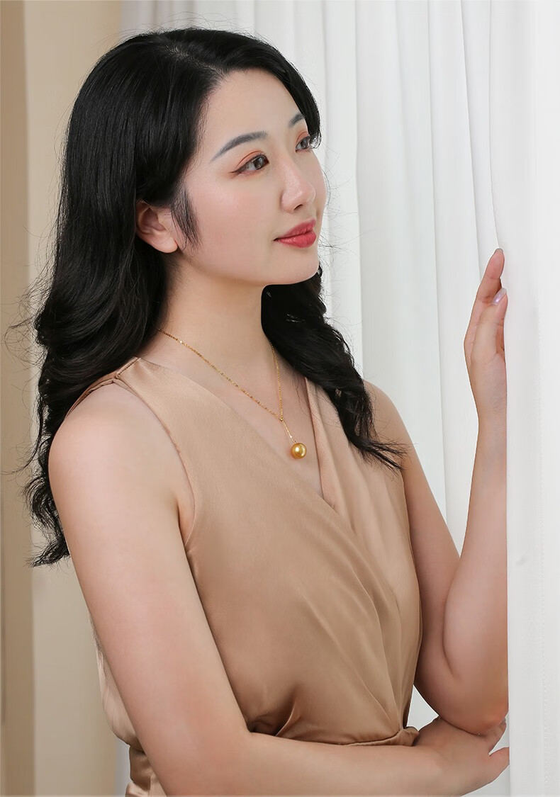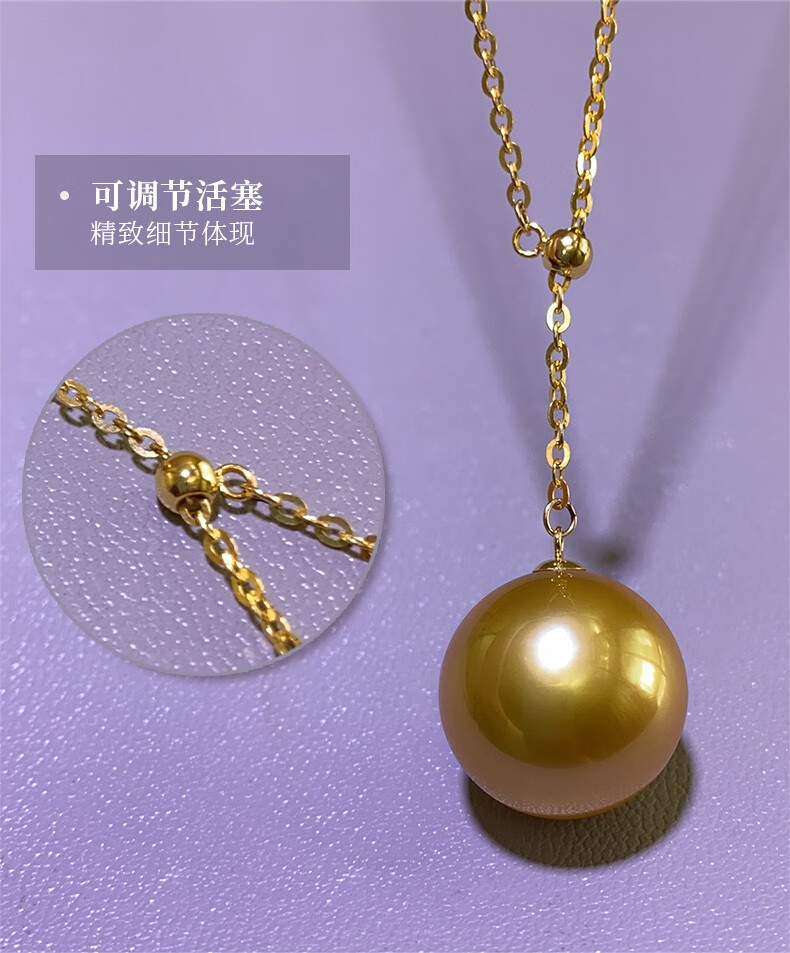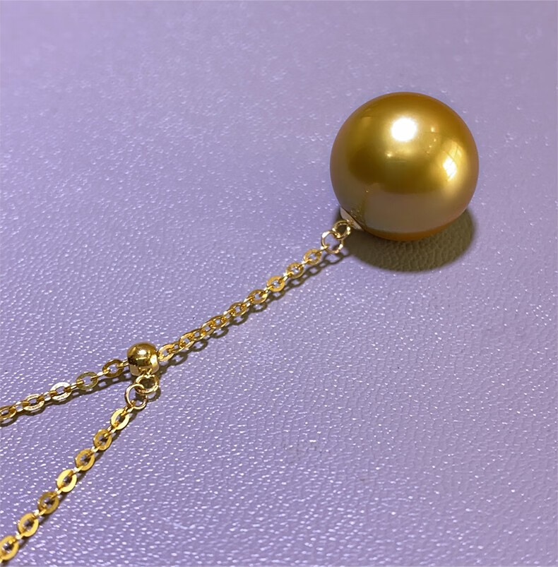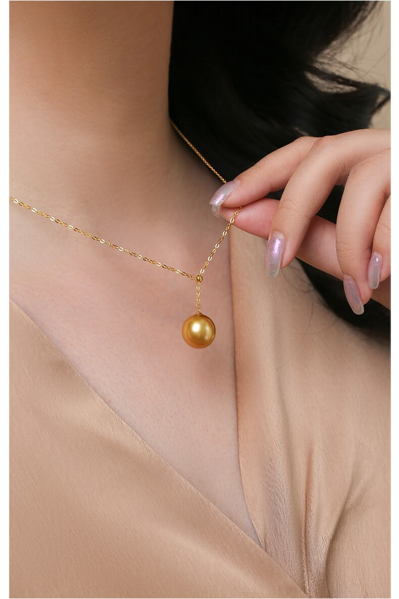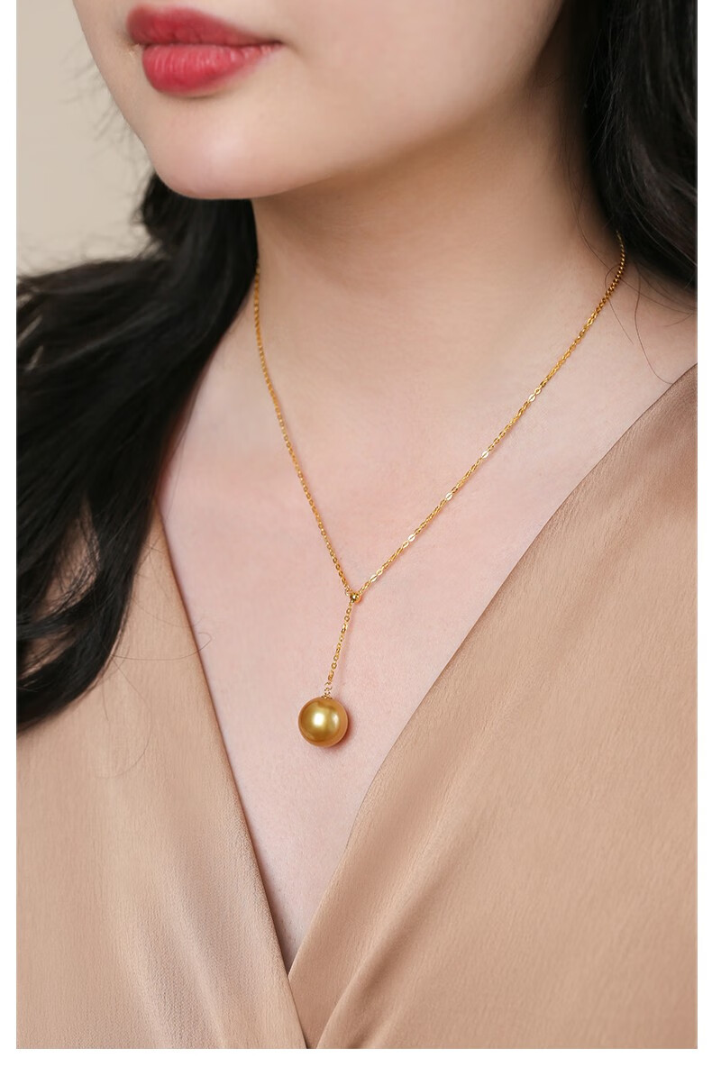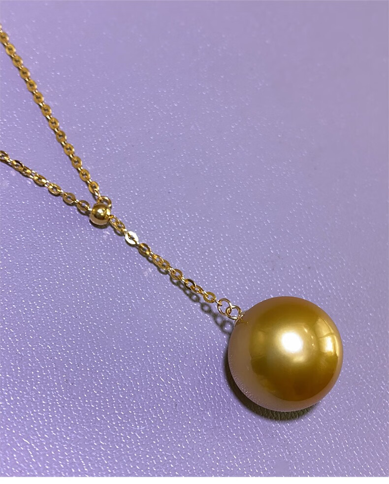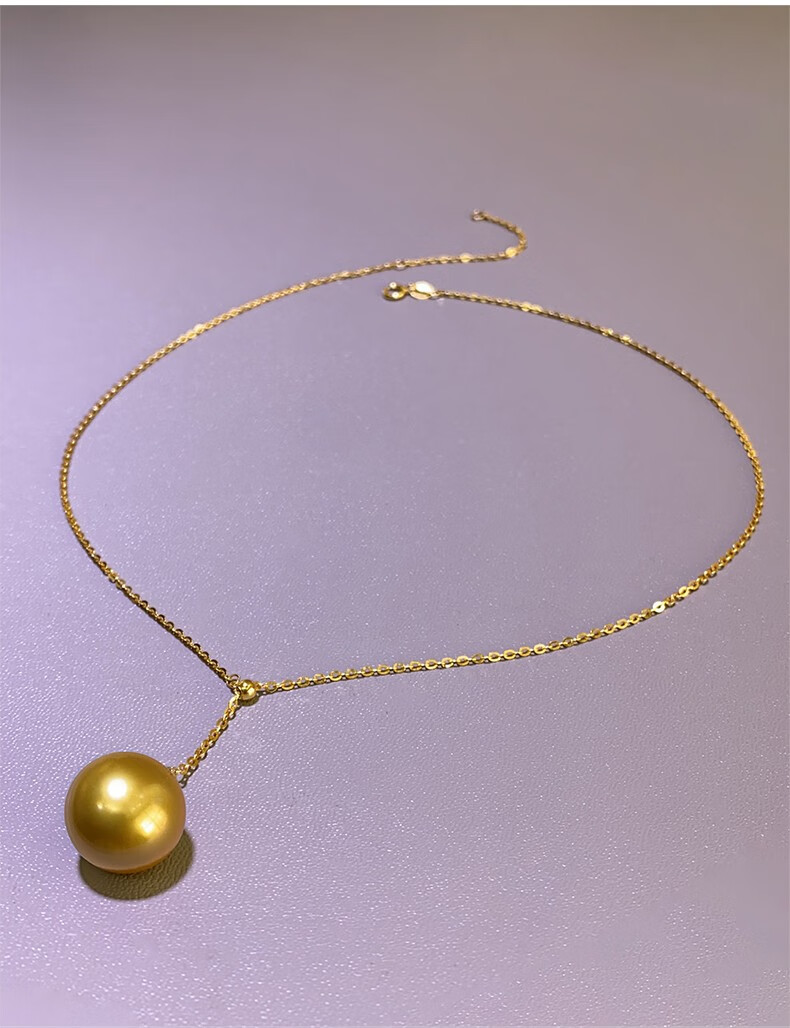 Moh's Australian South Sea Saltwater Pearl Y-Chain Pearl Necklace Perfect Round Cold White Light Rich Gold Gold Bead Pendant Australian White Gold Bead Pendant 14-15mm