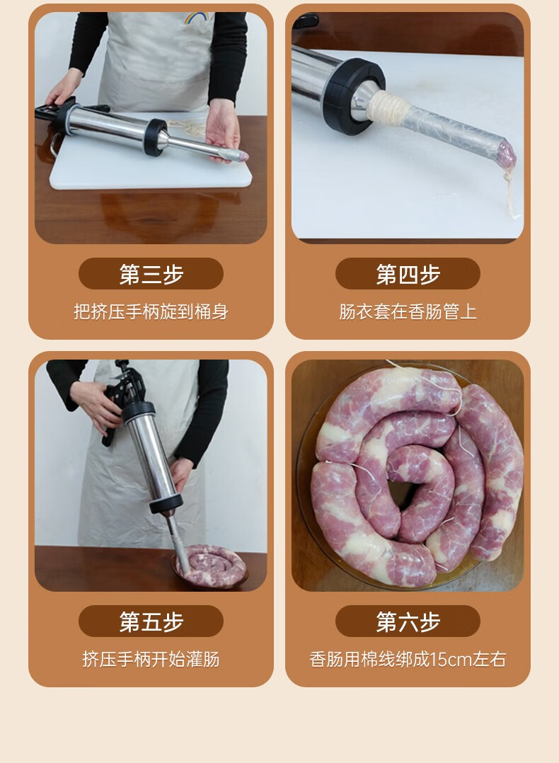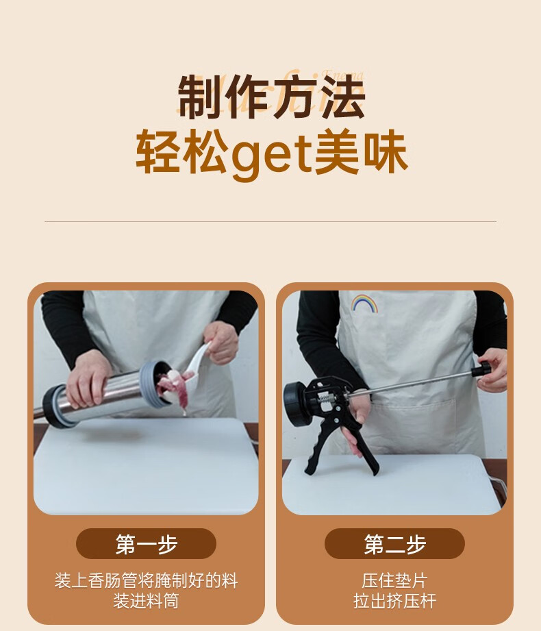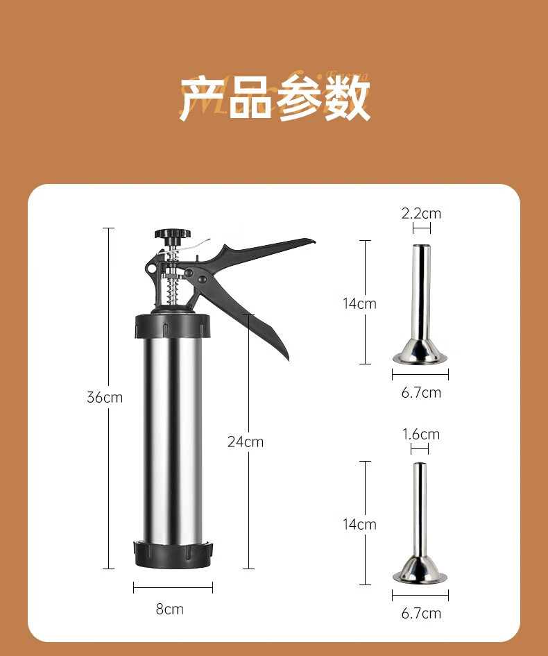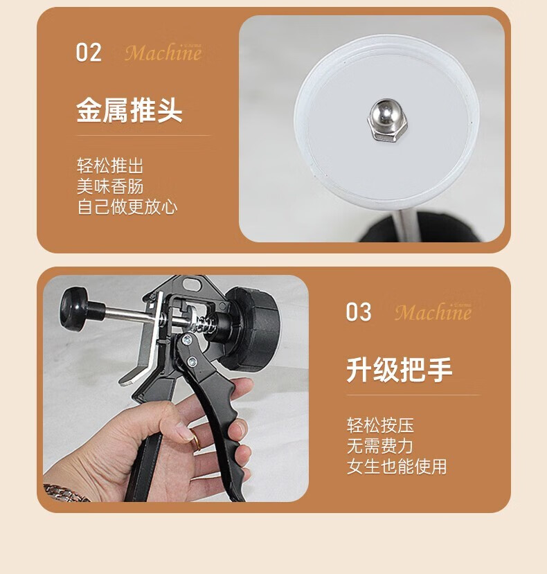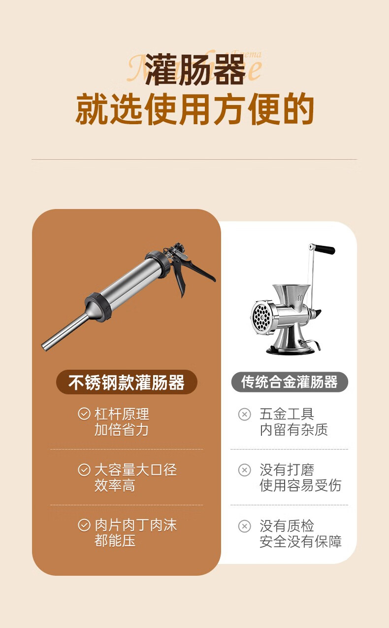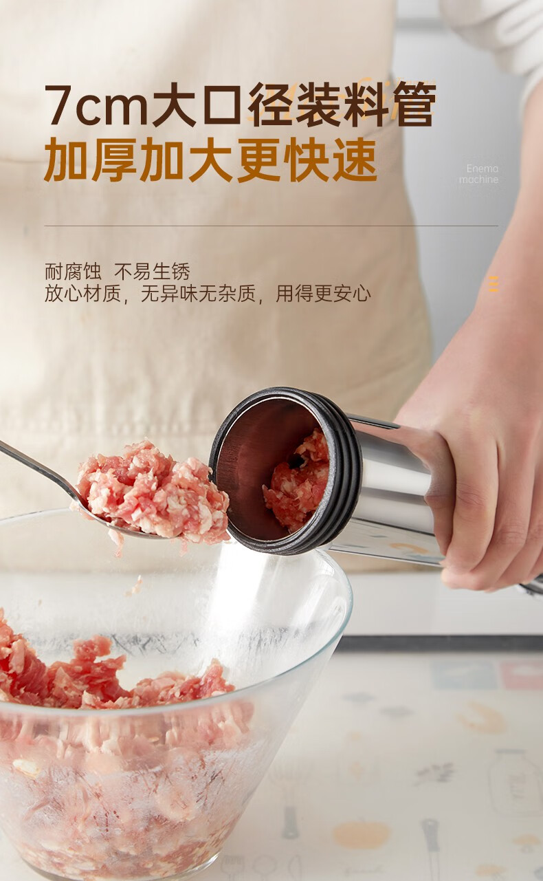 Zhihui Sausage Stuffing Machine Home Artifact Sausage Stuffing Machine Sausage Squeezing Meat Gun Manual Sausage Stuffing 304 Stainless Steel Sausage Stuffing Machine Equipped with 2 stainless steel mouths