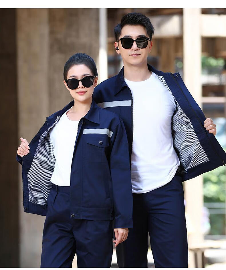 Haoying autumn and winter double-layer work clothes suit men's wear-resistant coat thickened belt lining labor insurance top work clothes factory uniform customization double-layer wide reverse navy blue top 175/XL