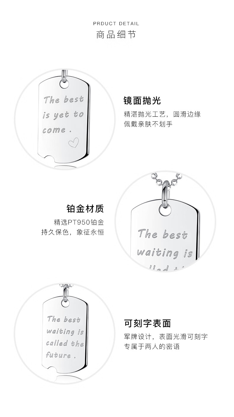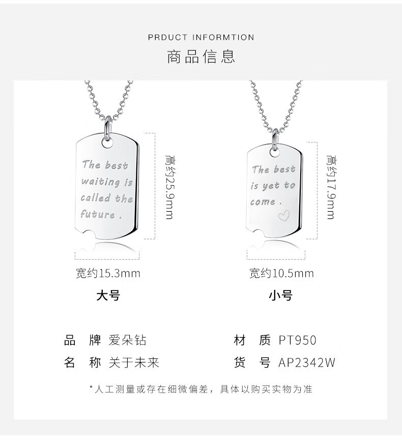 Aido Diamond pt950 Couple Platinum Pendant Platinum Tag Men's and Women's Future Personalized Pendant Single Pendant Small Size 3.4-3.6g + Delivery Leather Cord