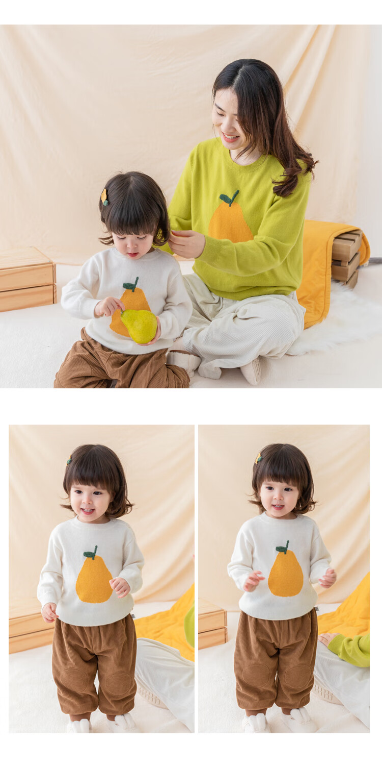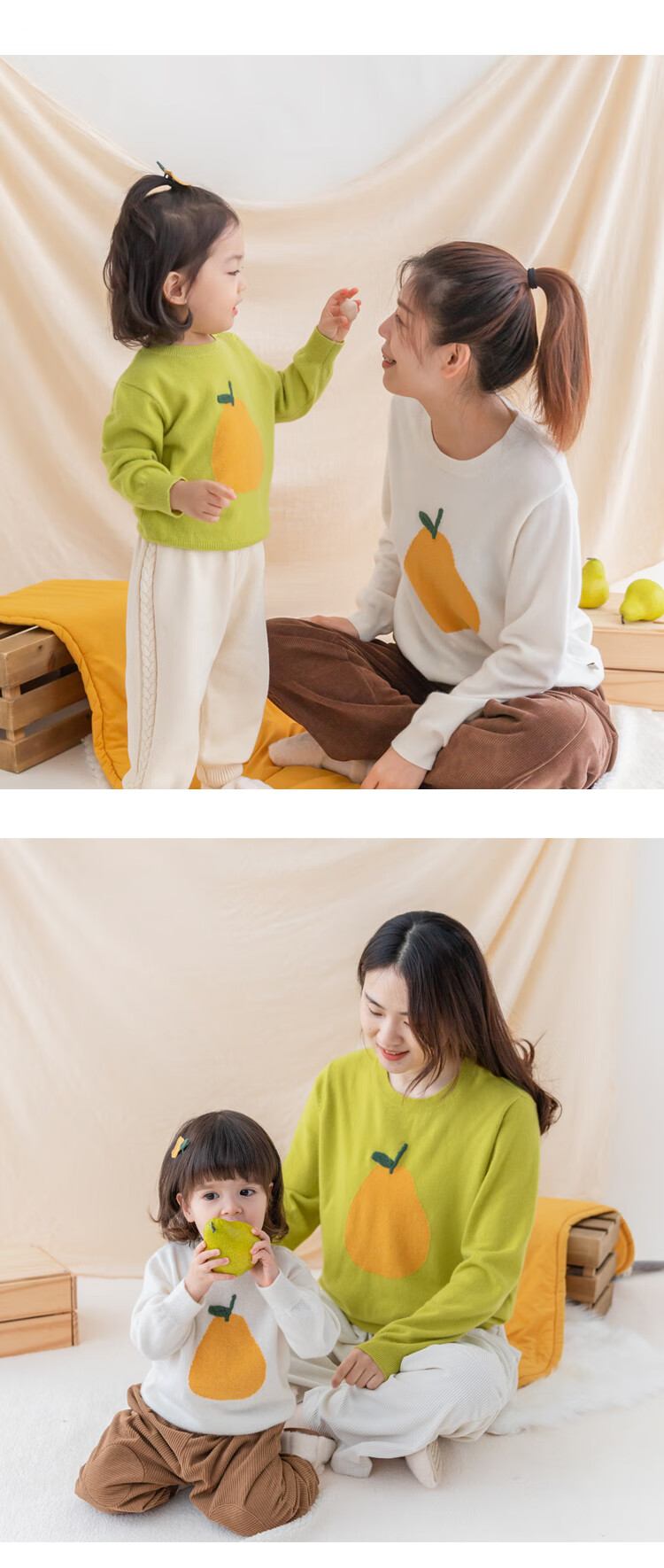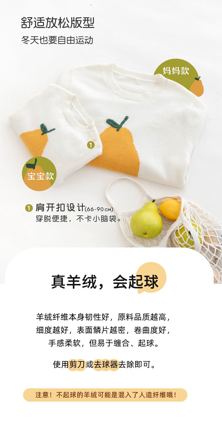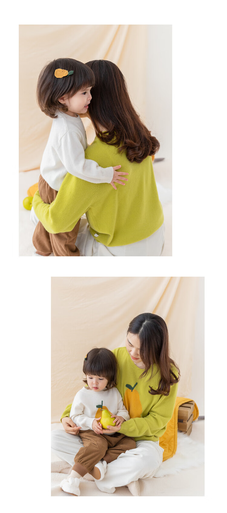 YOUGE Autumn and Winter Parent-child Vitality Fruit Cashmere Sweater Infant and Toddler Warm Contrast Color Three-dimensional Jacquard Top Off-White Adult Style 160 cm
