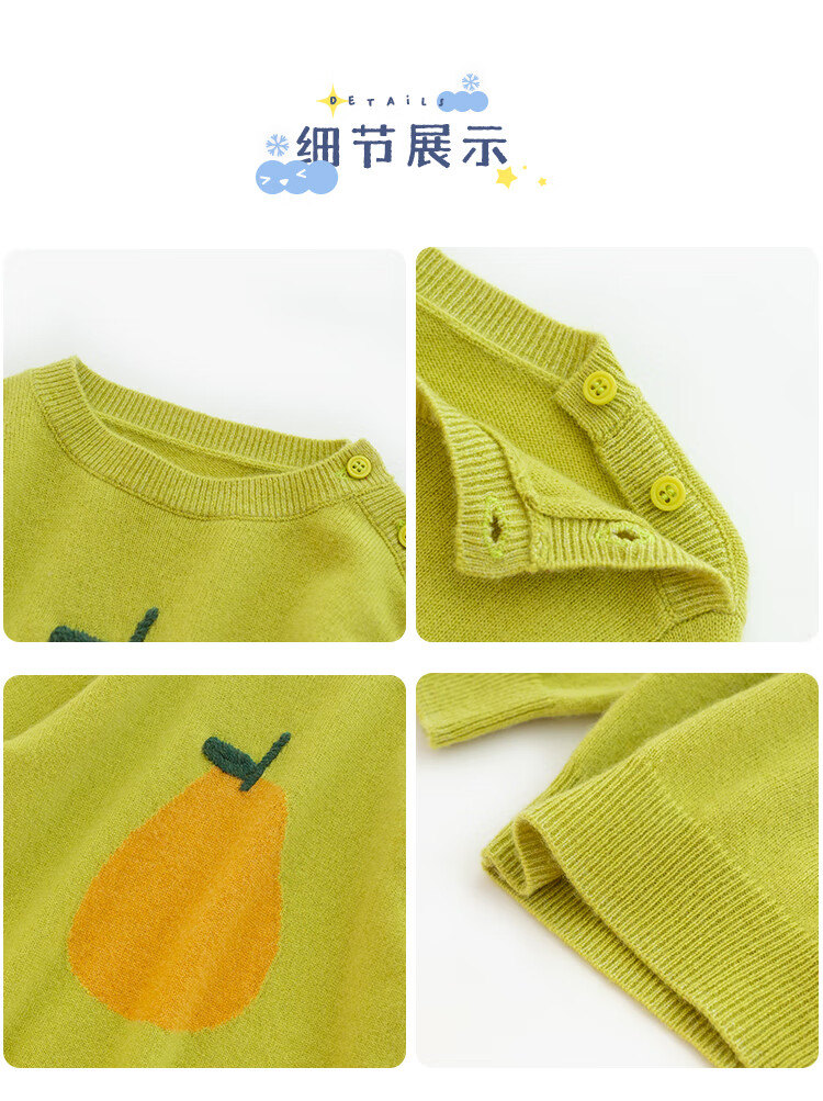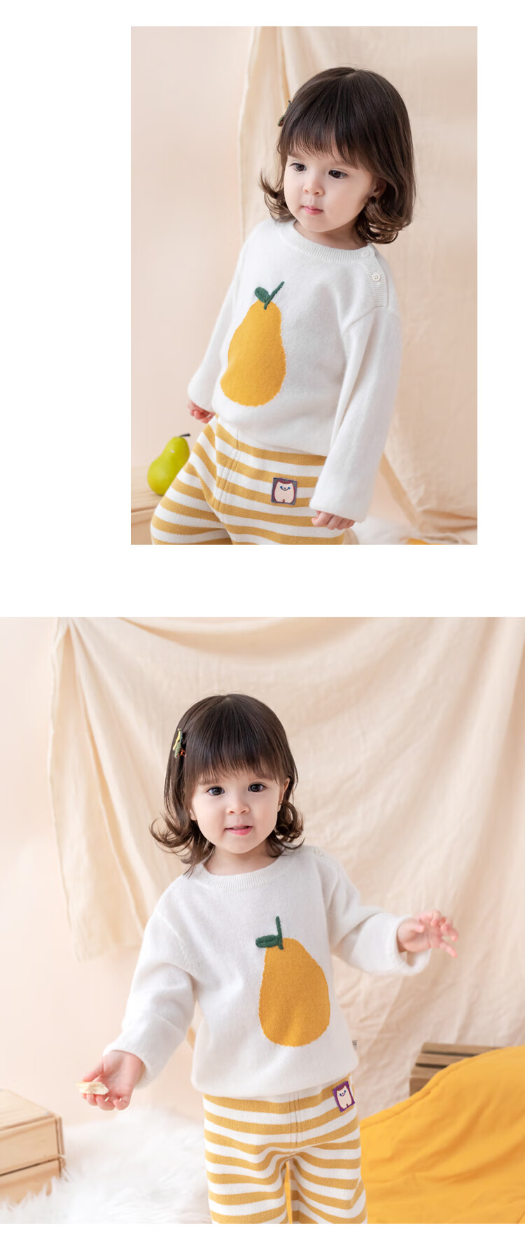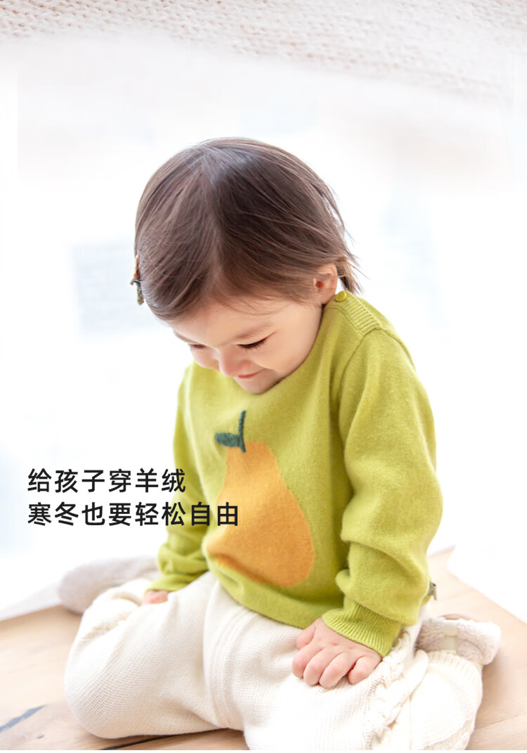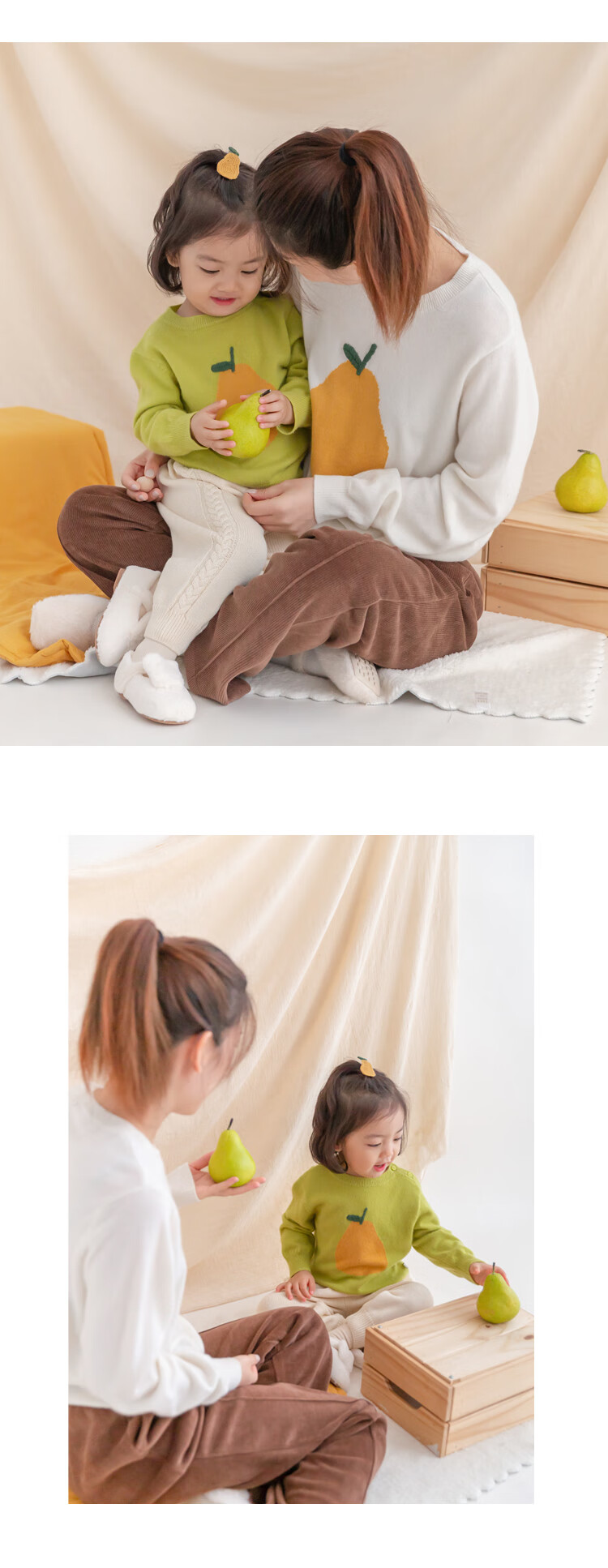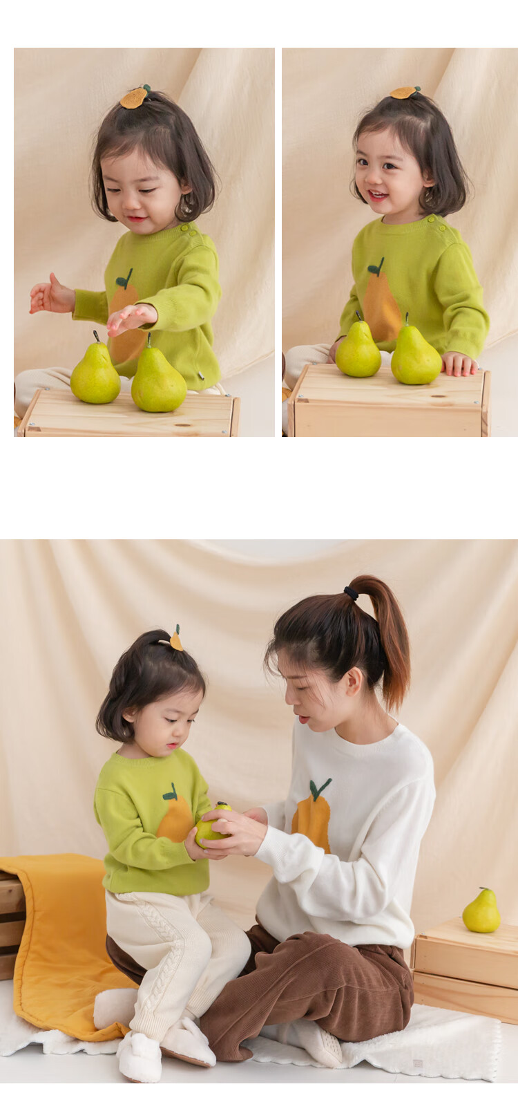 YOUGE Autumn and Winter Parent-child Vitality Fruit Cashmere Sweater Infant and Toddler Warm Contrast Color Three-dimensional Jacquard Top Off-White Adult Style 160 cm