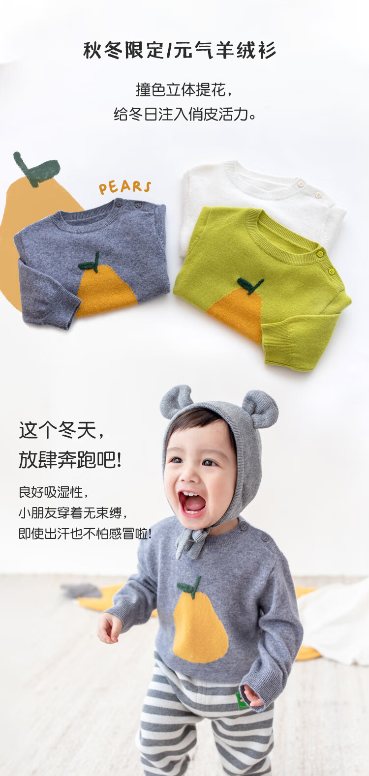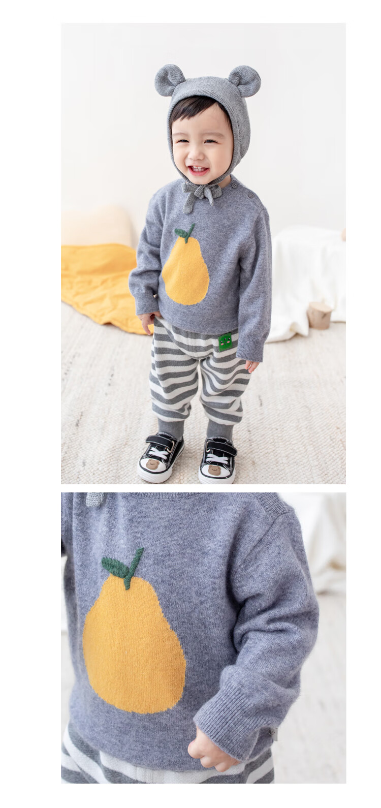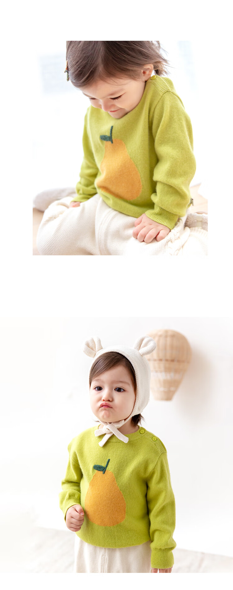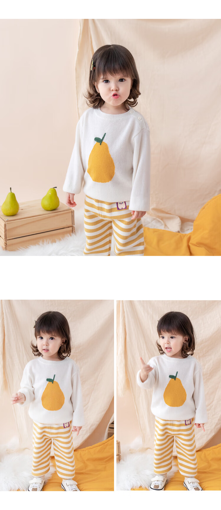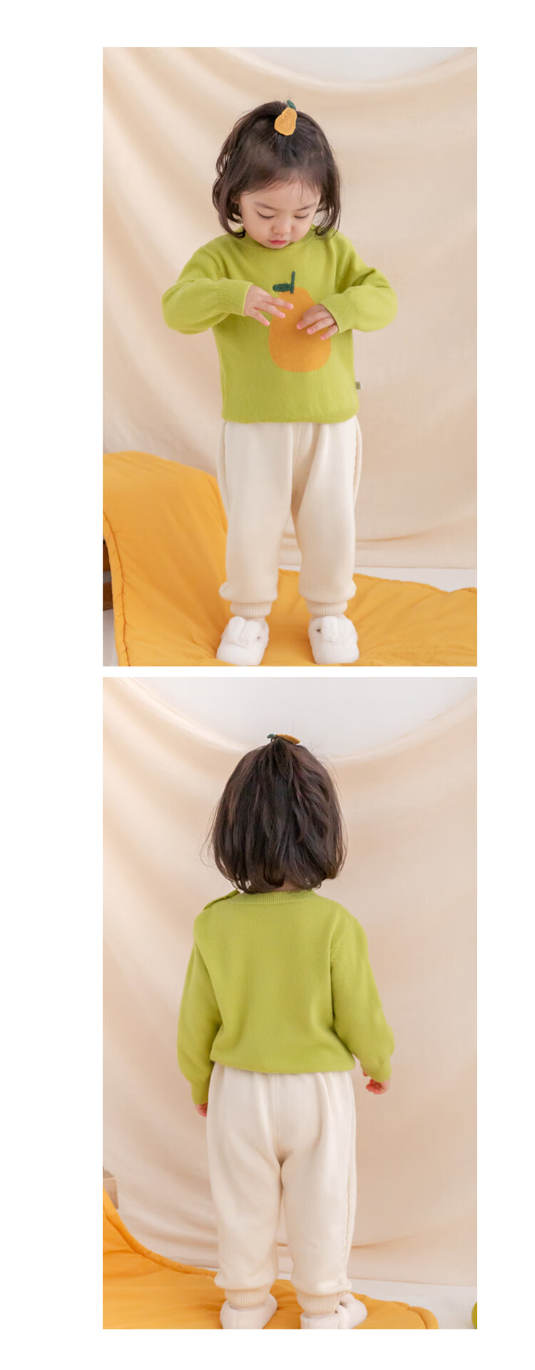 YOUGE Autumn and Winter Parent-child Vitality Fruit Cashmere Sweater Infant and Toddler Warm Contrast Color Three-dimensional Jacquard Top Off-White Adult Style 160 cm