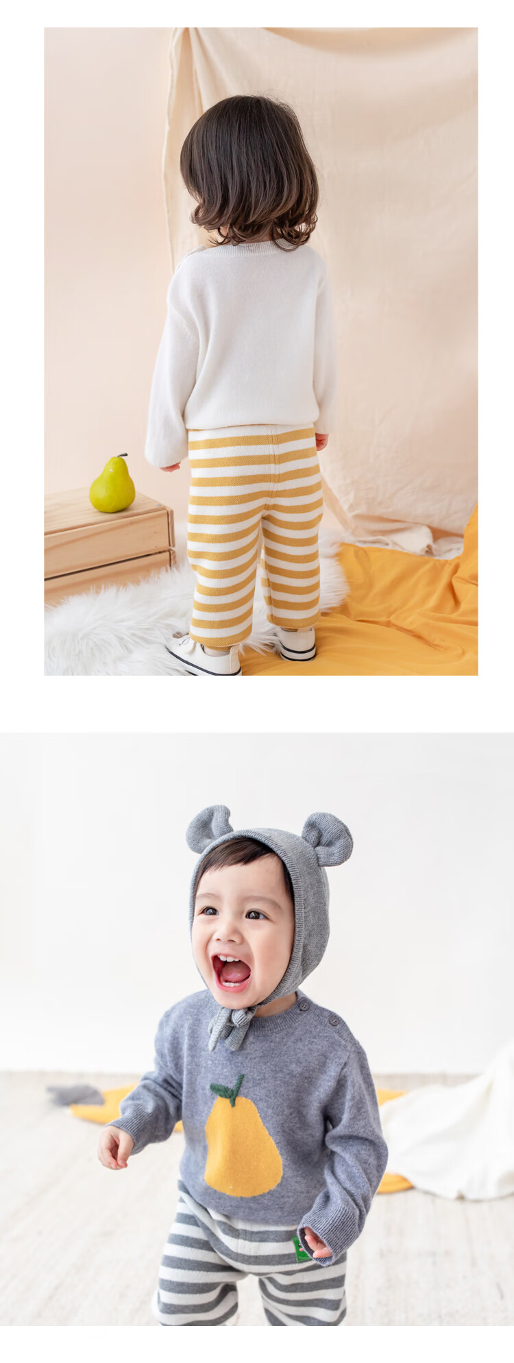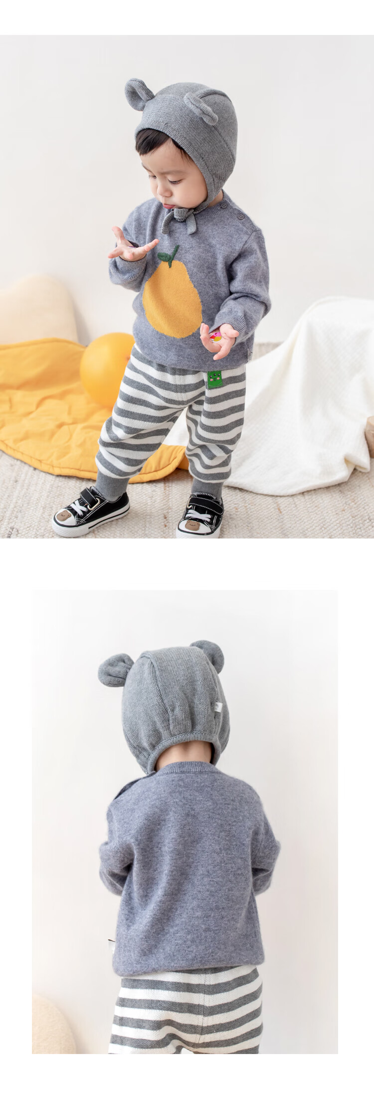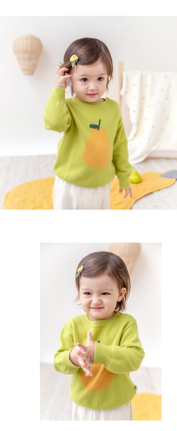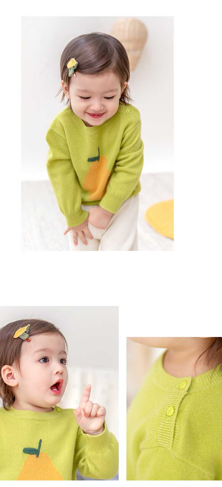 YOUGE Autumn and Winter Parent-child Vitality Fruit Cashmere Sweater Infant and Toddler Warm Contrast Color Three-dimensional Jacquard Top Off-White Adult Style 160 cm