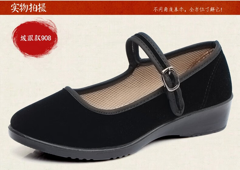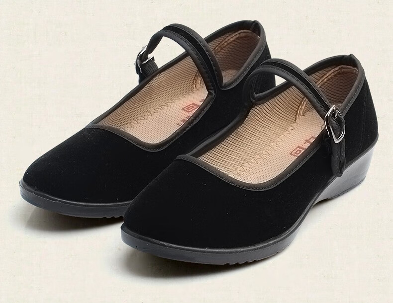Huili old Beijing cloth shoes for women, summer soft-soled mother's shoes, dancing shoes, black work shoes, women's casual shoes (black-wedge) 908 36